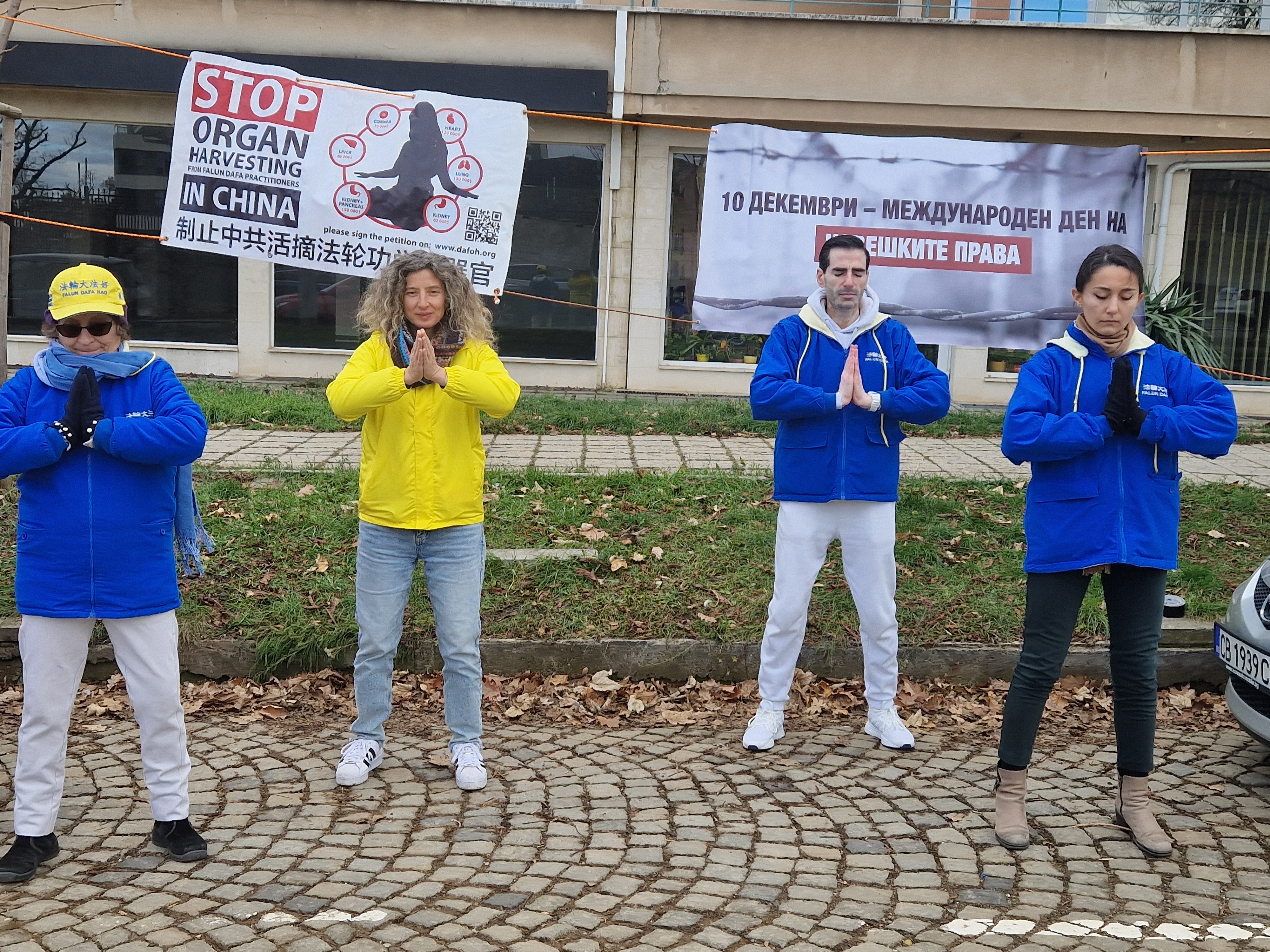 国际人权日 保加利亚学员中领馆前揭露迫害