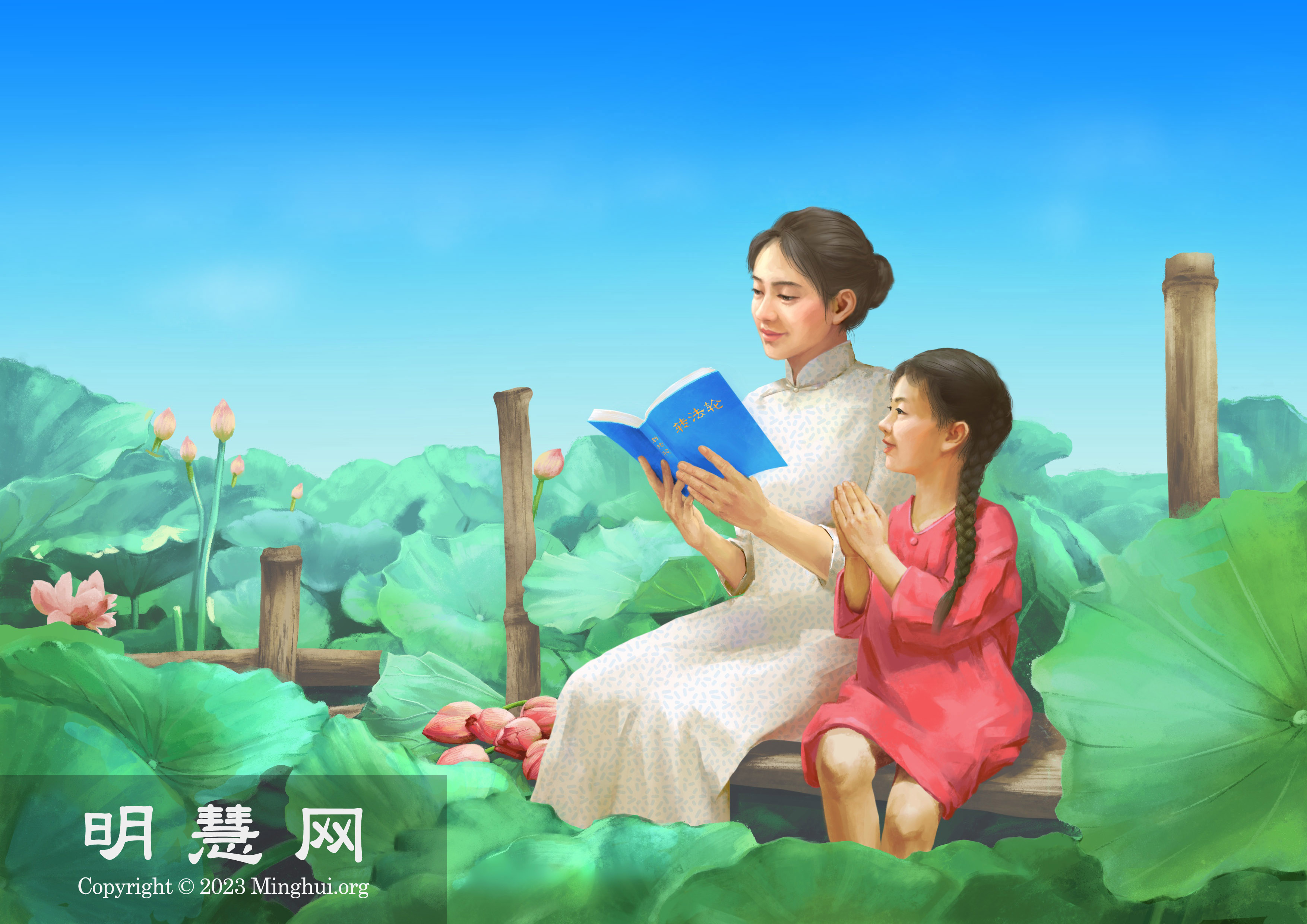 我一九九六年得法,那时我连《转法轮》三个字都不认识,看师父讲法录像,听不明白师父讲什么,师父看我悟性太差,在睡觉时给我显现出大法轮来,旋转着,我大喊:法轮、法轮,把家人都喊醒了。