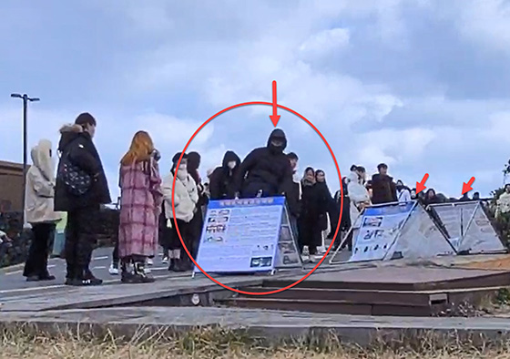 二零二三年十一月十八日星期一,在韩国济州岛的城山浦附近,发生了又一起中国人攻击法轮功学员事件。这是两个月内第七次发生同类事件。肇事者戴眼镜和口罩遮住脸部。