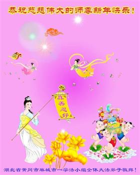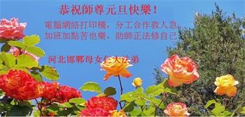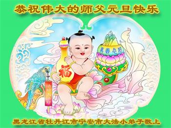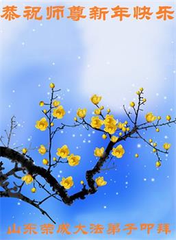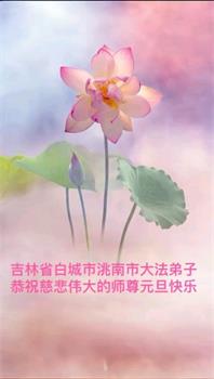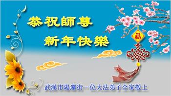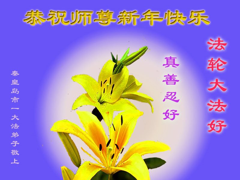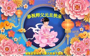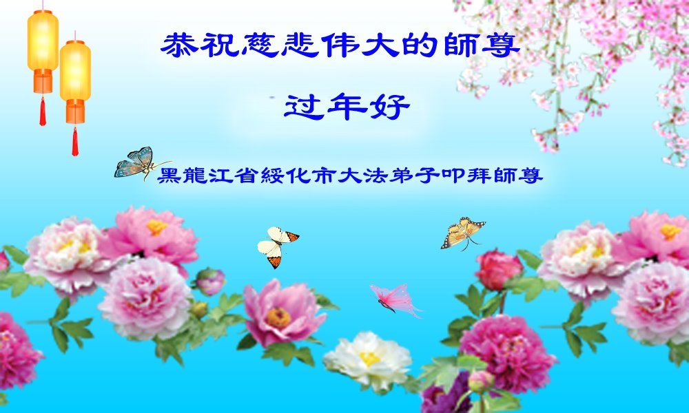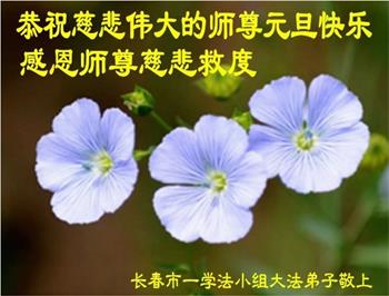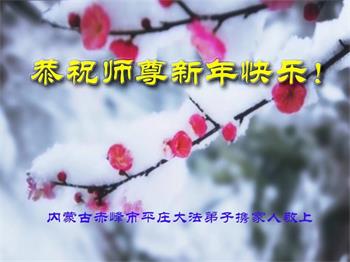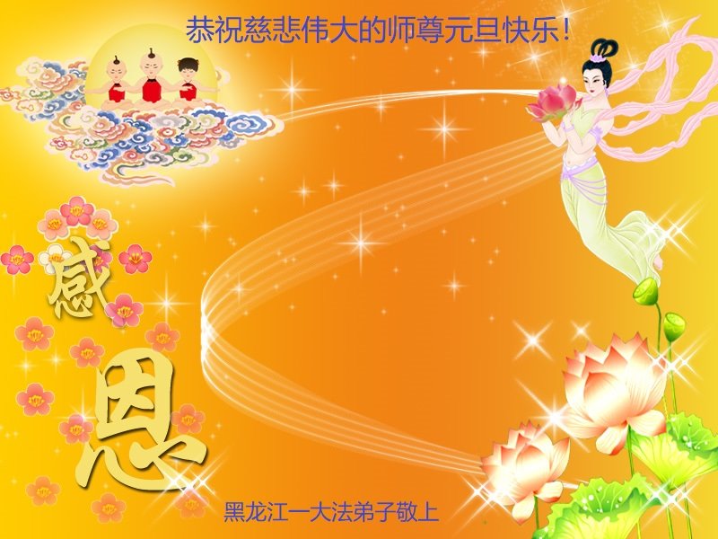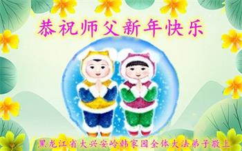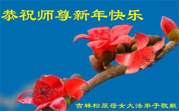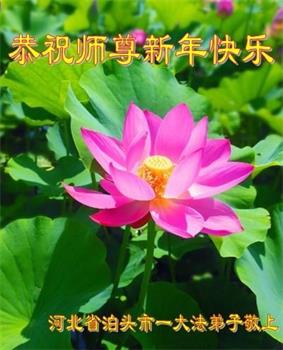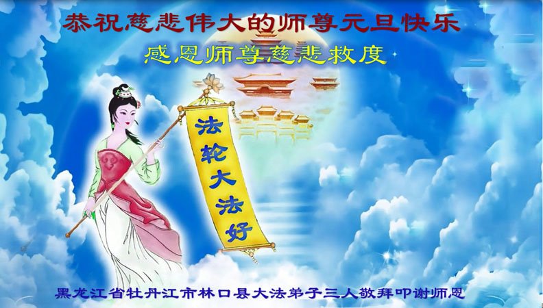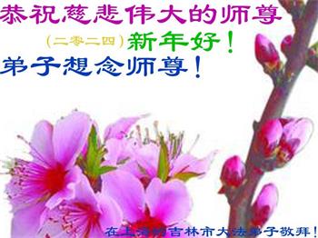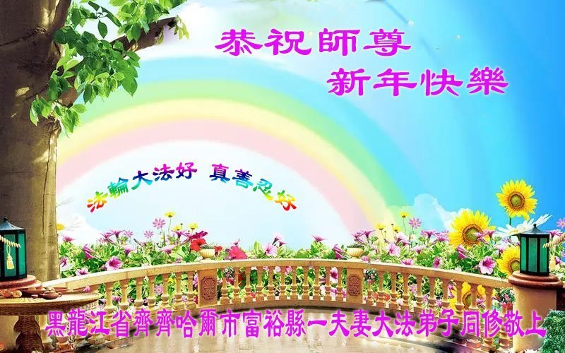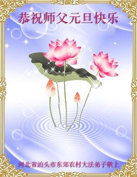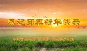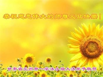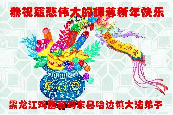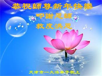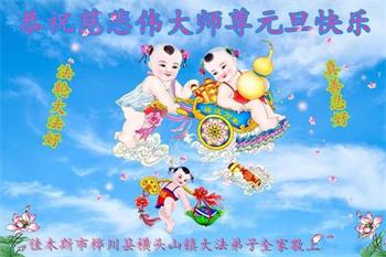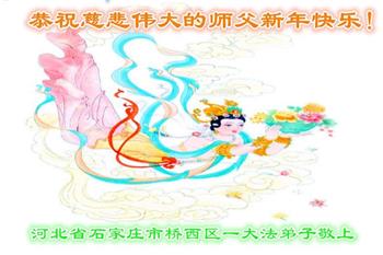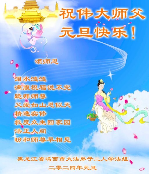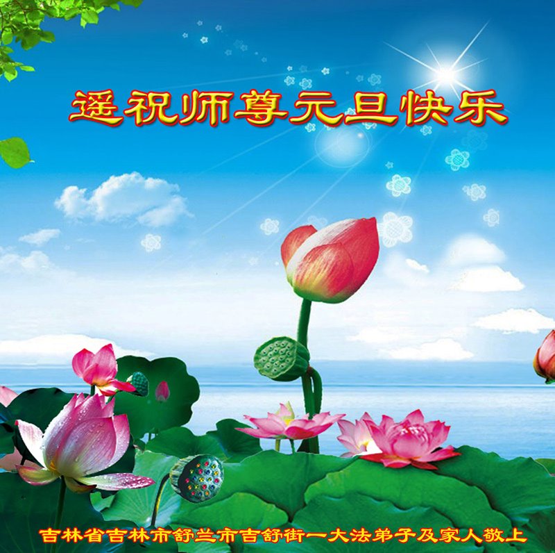 黑龙江省公安系统大法弟子在贺词中表示:“二十五年修炼的风风雨雨,弟子们都坚持下来了。请师父放心,在新的一年,弟子们一定会做的更好,勇猛精進,助师正法。”