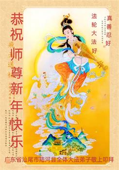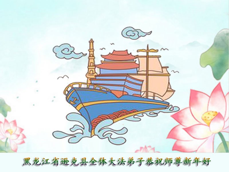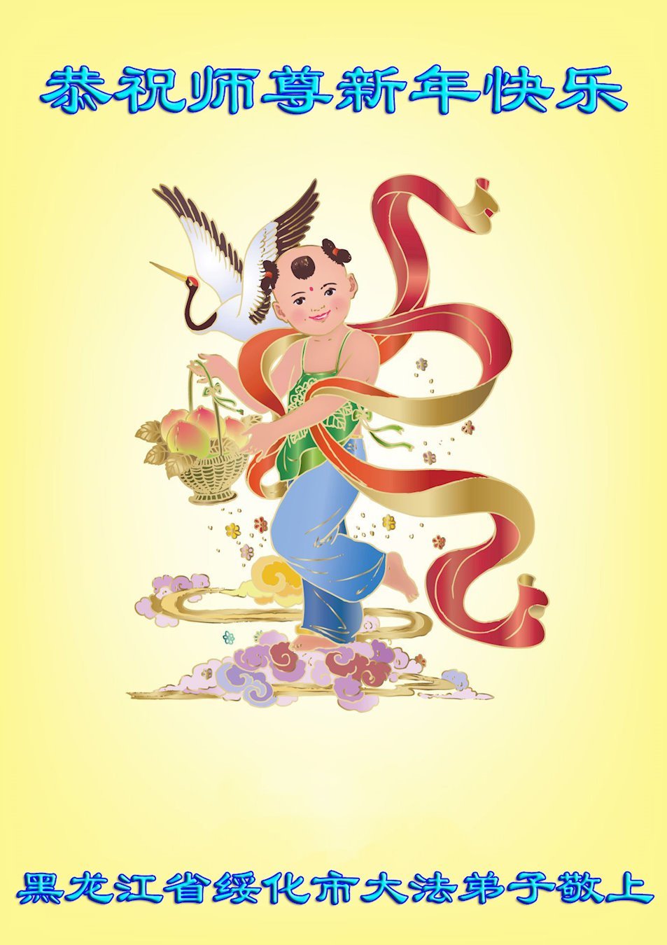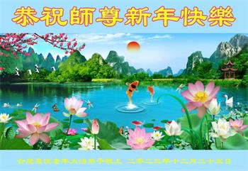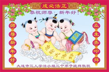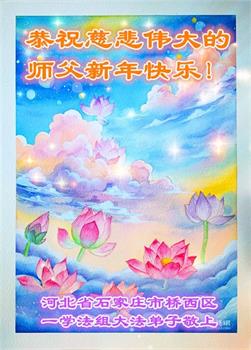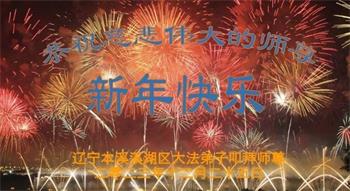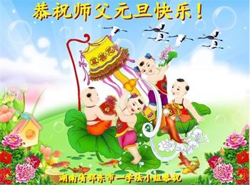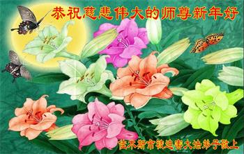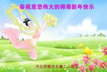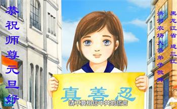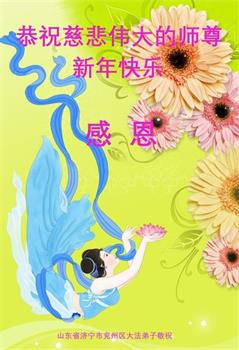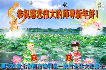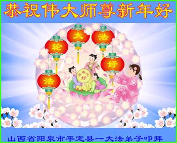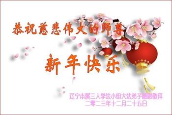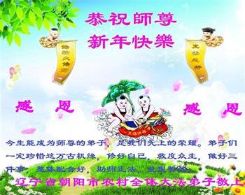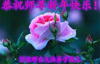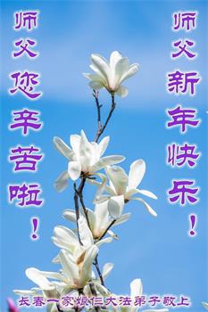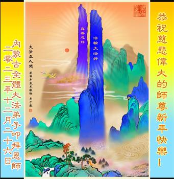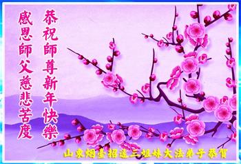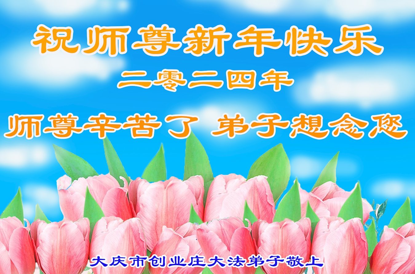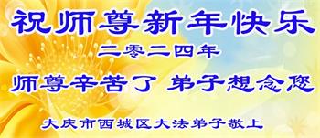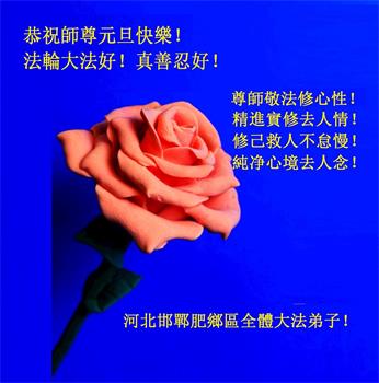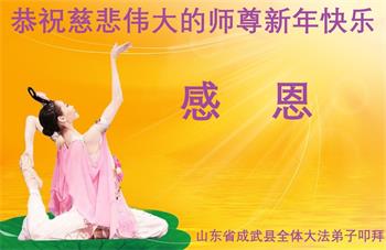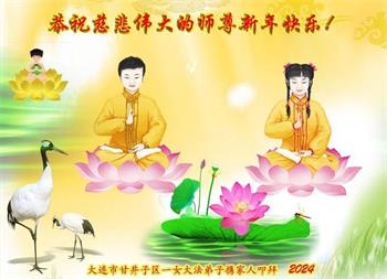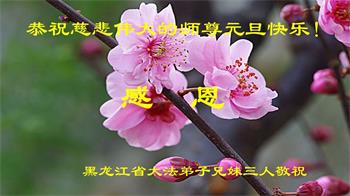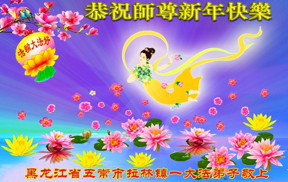 黑龙江省公安系统大法弟子在贺词中表示:“二十五年修炼的风风雨雨,弟子们都坚持下来了。请师父放心,在新的一年,弟子们一定会做的更好,勇猛精進,助师正法。”
