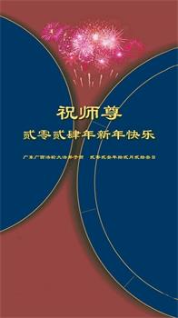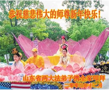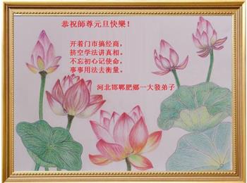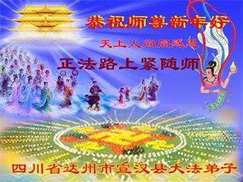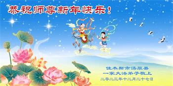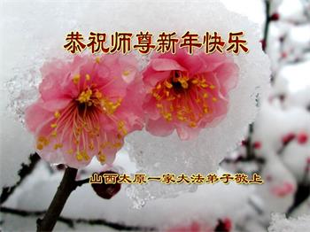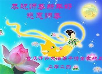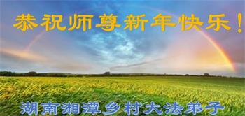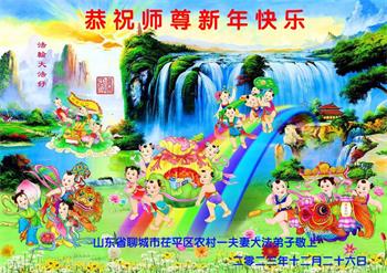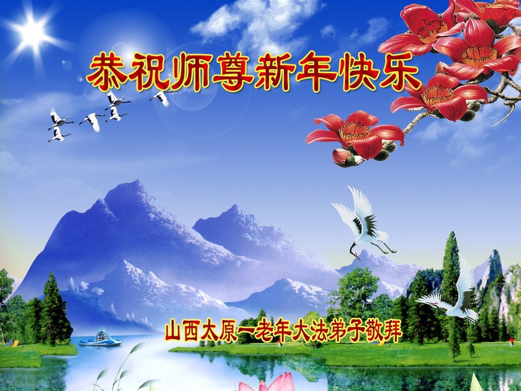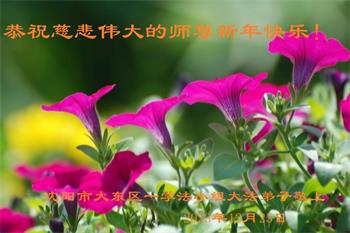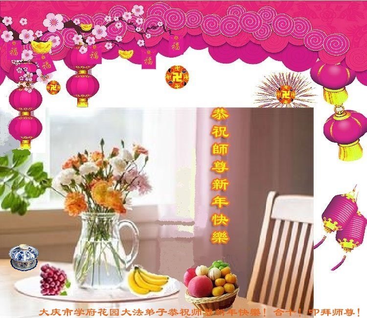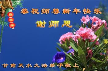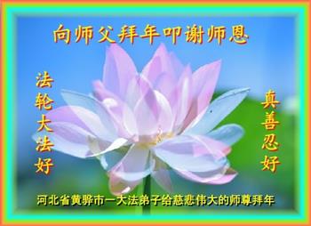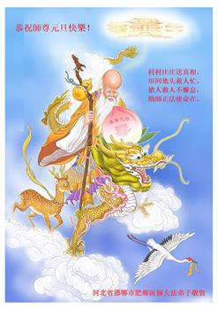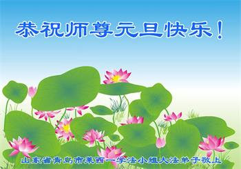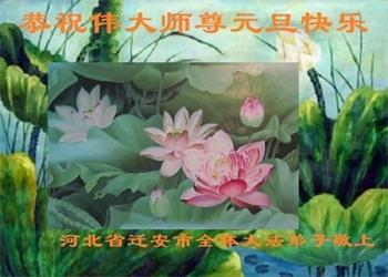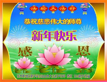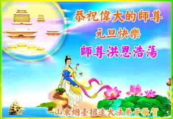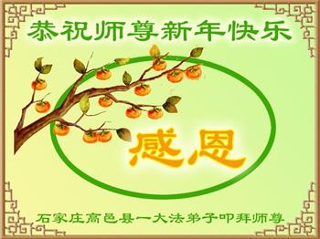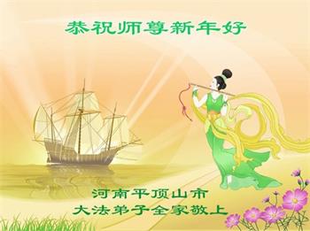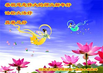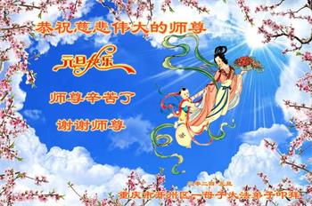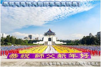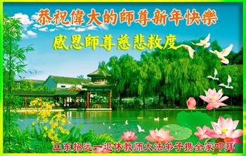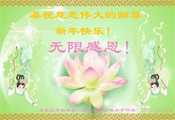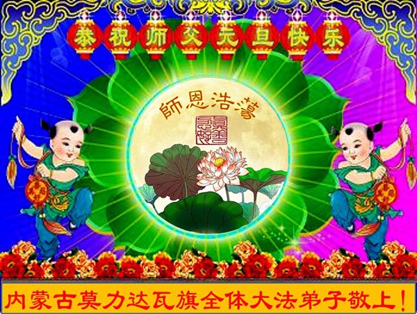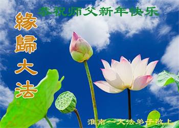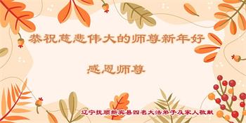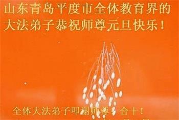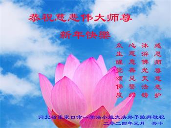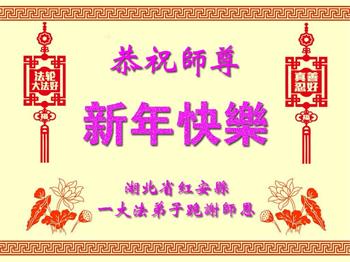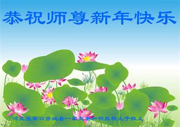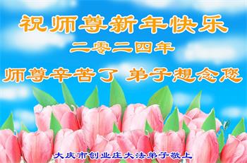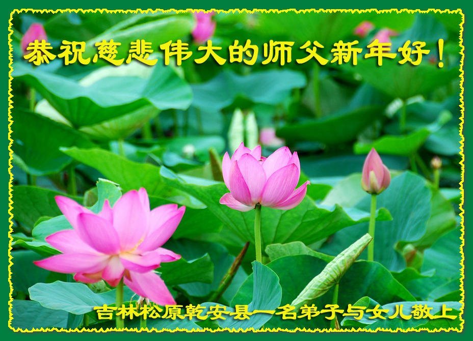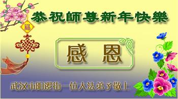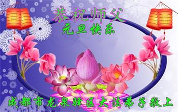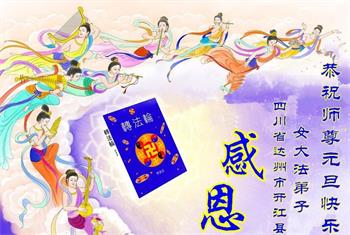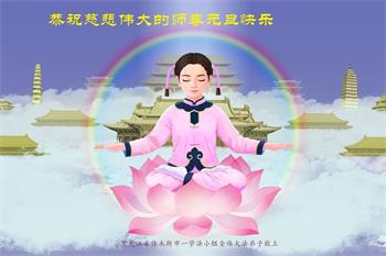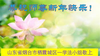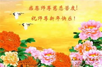 黑龙江省公安系统大法弟子在贺词中表示:“二十五年修炼的风风雨雨,弟子们都坚持下来了。请师父放心,在新的一年,弟子们一定会做的更好,勇猛精進,助师正法。”