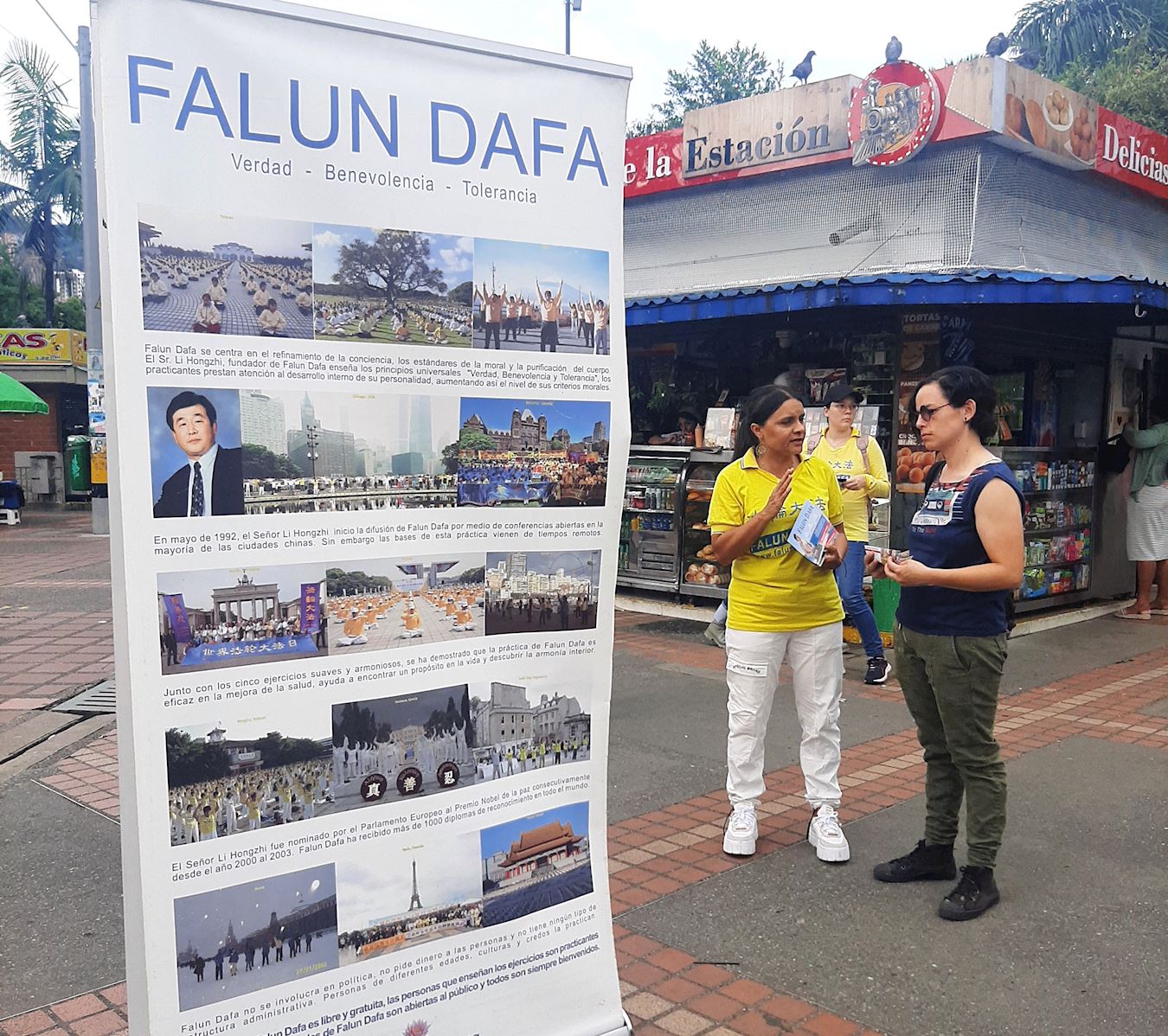 当学员向他们​​介绍法轮功和真、善、忍的原则后,三位年轻人表示,法轮大法是造福社会的价值观,可以帮助麦德林的年轻人改变不健康的生活方式。