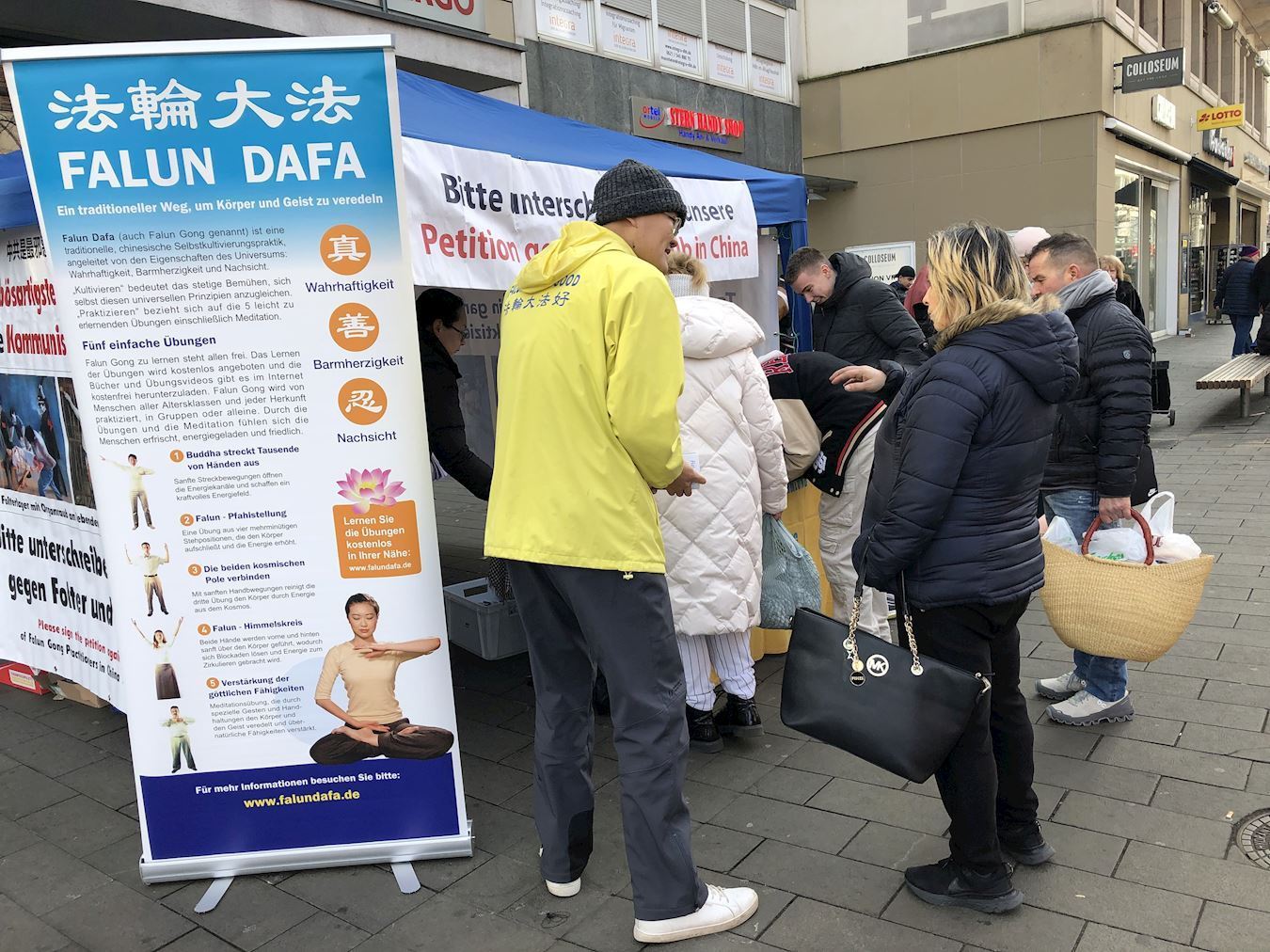 曼海姆(Mannheim)不仅是一座大学城,也拥有众多私家品牌屋和时尚品牌连锁店。每逢周末前来购物的人群更是川流不息。许多市民经过法轮功学员摆放的真相展板,纷纷签名支持法轮功学员反迫害。人们对中共活摘器官的事实及践踏人权的行径表示震惊和痛心。并鼓励学员要坚持不懈,水滴石穿,迫害最终将被制止。
