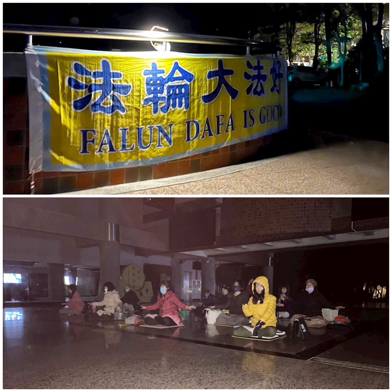 ![]() 图1~2:二零二三年二月十一日清晨,天还未亮,台湾桃园内坜地区的法轮功学员在一所地区的高中校园举办集体晨炼。 |
