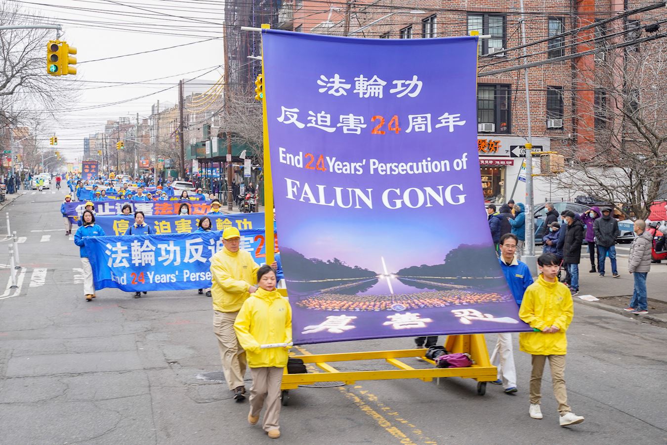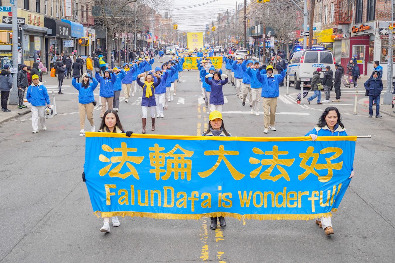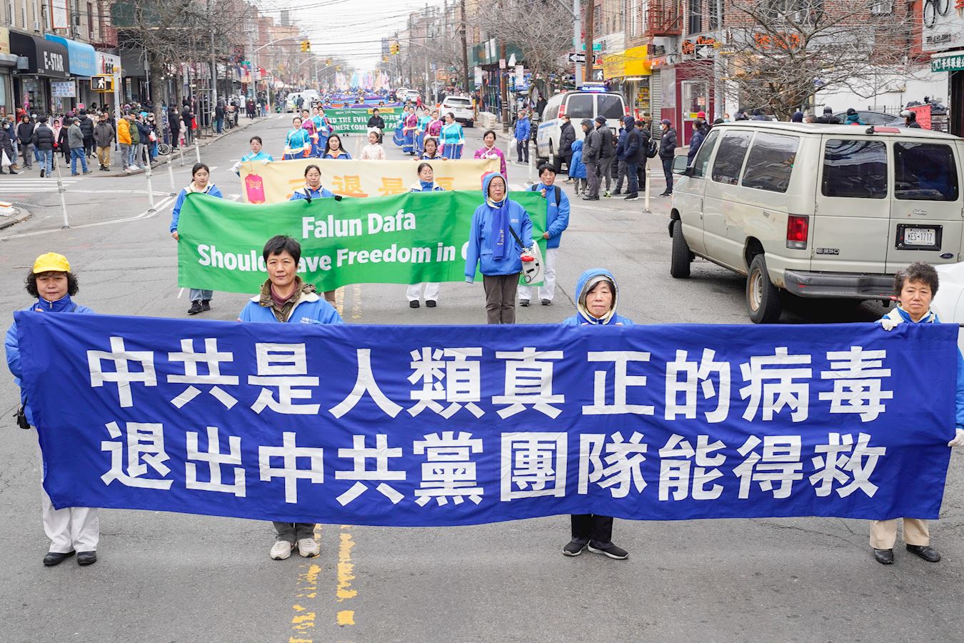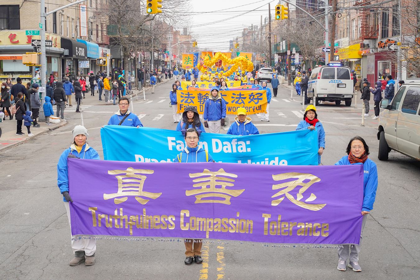 ![]() 图13~17:二零二三年二月二十六日(周日),大纽约地区的上千名法轮功学员,在纽约第三大华人社区---布碌崙(布鲁克林)八大道举行盛大游行。图为“停止迫害法轮功”方阵 |