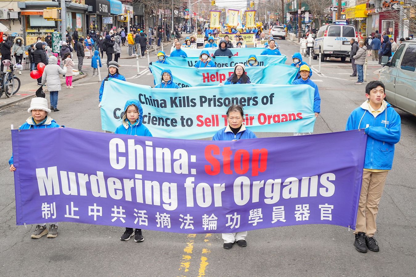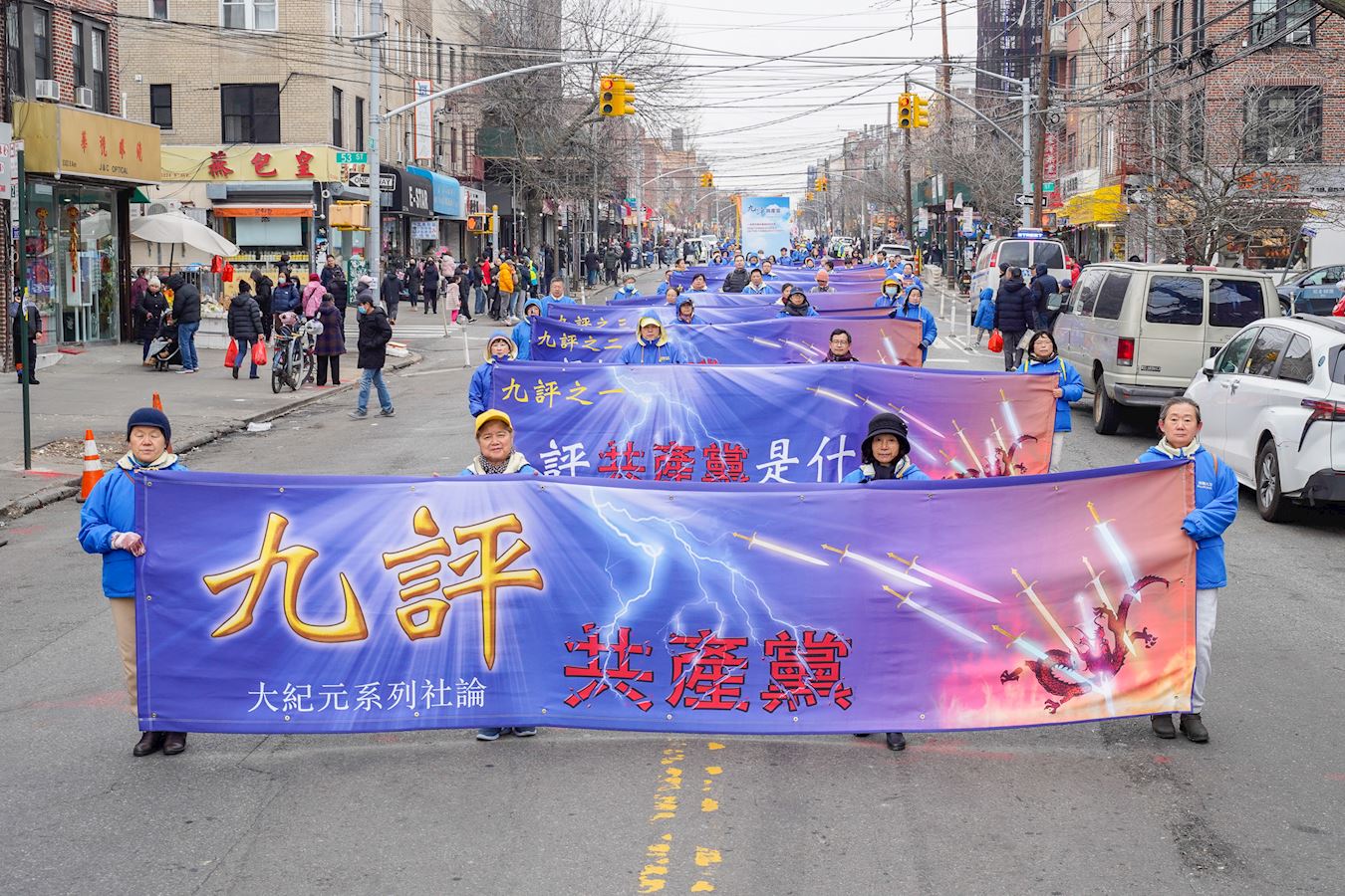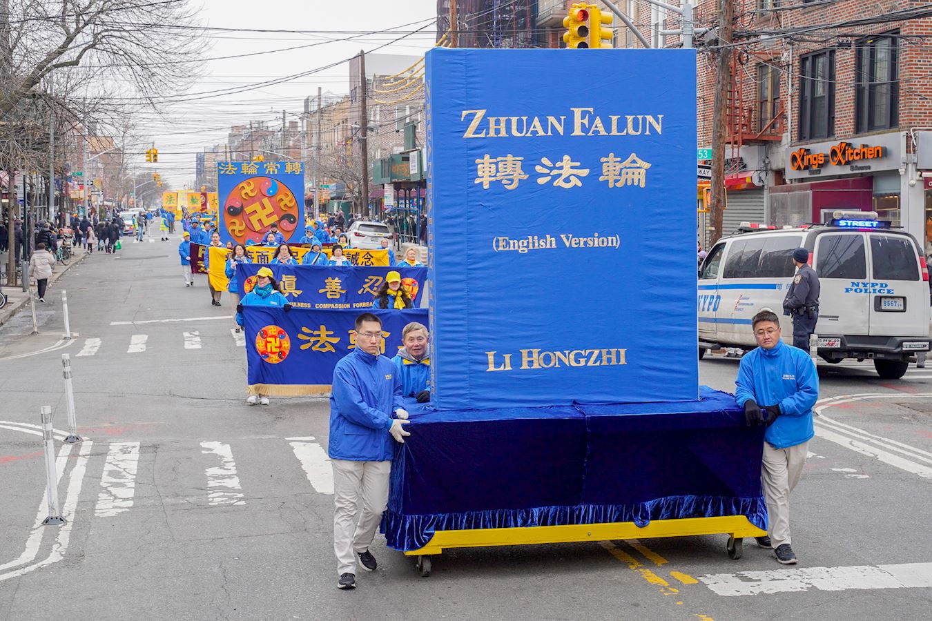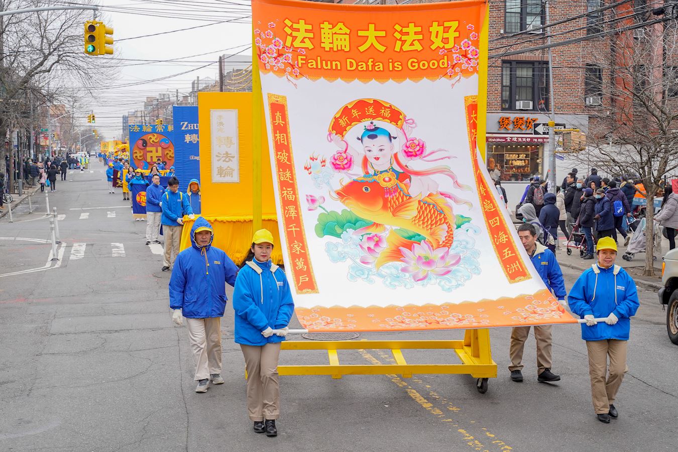 ![]() 图13~17:二零二三年二月二十六日(周日),大纽约地区的上千名法轮功学员,在纽约第三大华人社区---布碌崙(布鲁克林)八大道举行盛大游行。图为“停止迫害法轮功”方阵 |