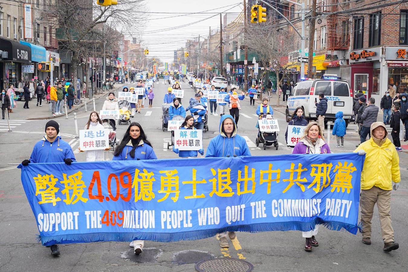 ![]() 图18~25:二零二三年二月二十六日(周日),大纽约地区的上千名法轮功学员,在纽约第三大华人社区---布碌崙(布鲁克林)八大道举行盛大游行。图为“三退保平安”方阵 |