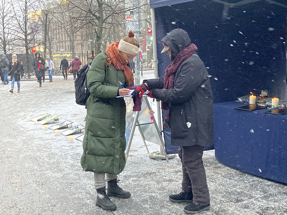 <英文版: https://en.minghui.org/html/articles/2023/2/4/207196.html>国际大屠杀纪念日讲真相 芬兰民众支持法轮功