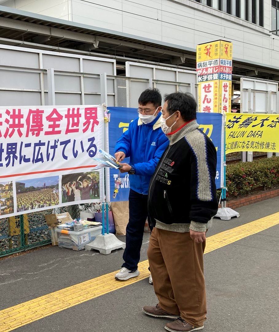 【明慧网二零二三年二月九日】二零二三年二月三日(星期五),日本中部地区法轮功学员在爱知县稻泽市(Inazawa-City,Aichi-Prov.)名铁国府宫的车站(Meitetsu Konomiya-Station)附近,向民众介绍法轮功,并向有兴趣深入了解的民众发放了真相传单。