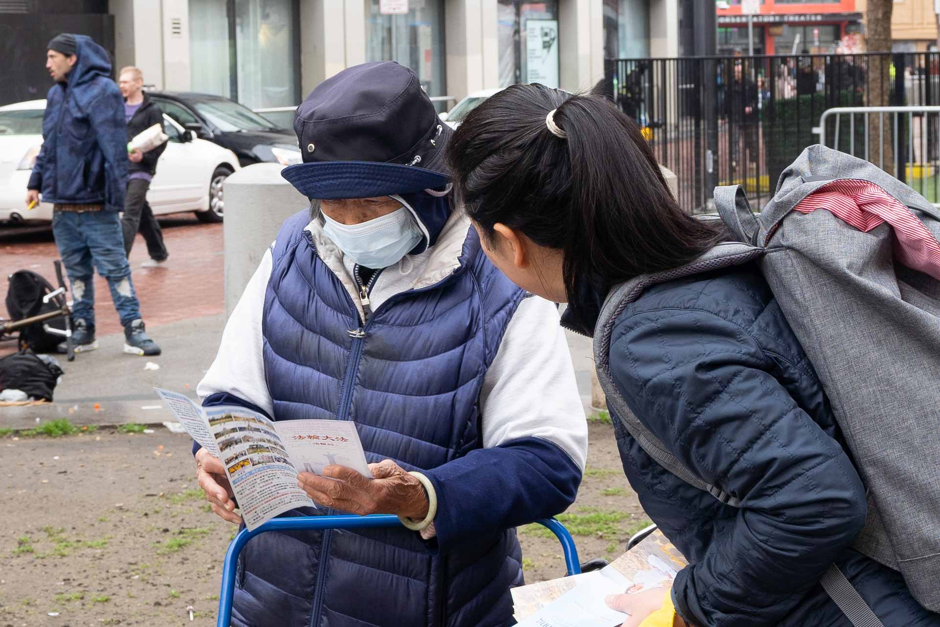 “法轮功真棒!”崔女士说,她一直都知道法轮功很好,“我知道有一本《转法轮》,我一直都想看,要是有这本书才好呢。但我不知道在哪里买?”学员告诉她可以上网站falundafa.org购买,她满意的记下。