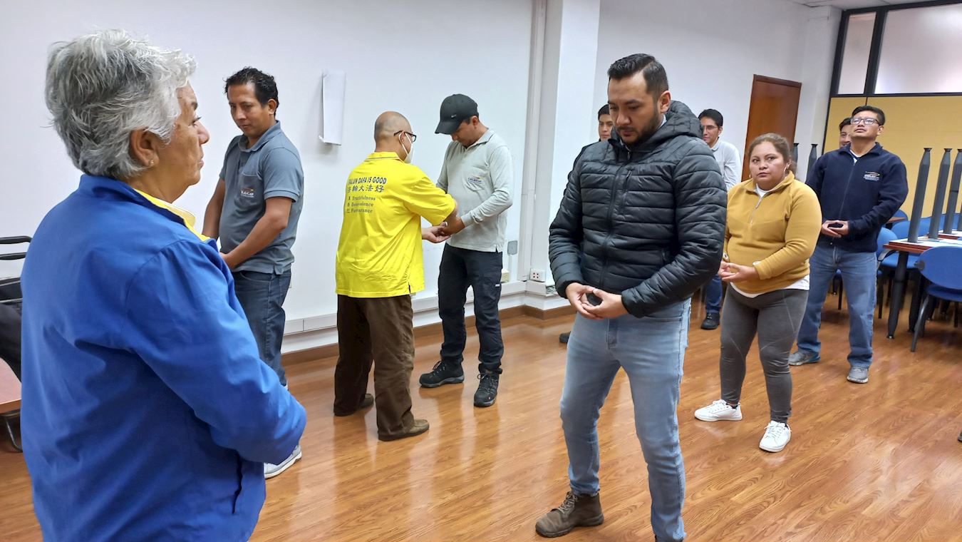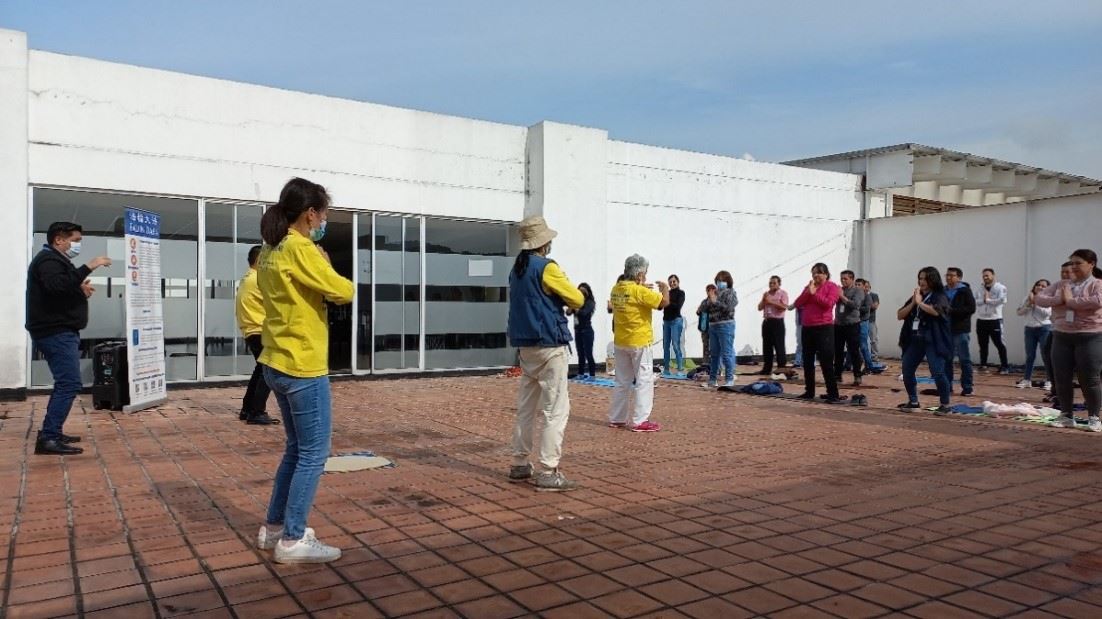 二零二三年一月二十日,法轮功学员与首都基多南部政府平台的保健医生取得联系,六位法轮功学员获邀前往他们的工作单位教授五套功法。上午骄阳似火,法轮功学员不畏烈日认真演示,耐心教功,获得了不少好评。还有一位法轮功学员现场教大家折叠小莲花,并给他们讲述法轮功学员在中国遭迫害的真相,引起了在场不少人的共鸣。