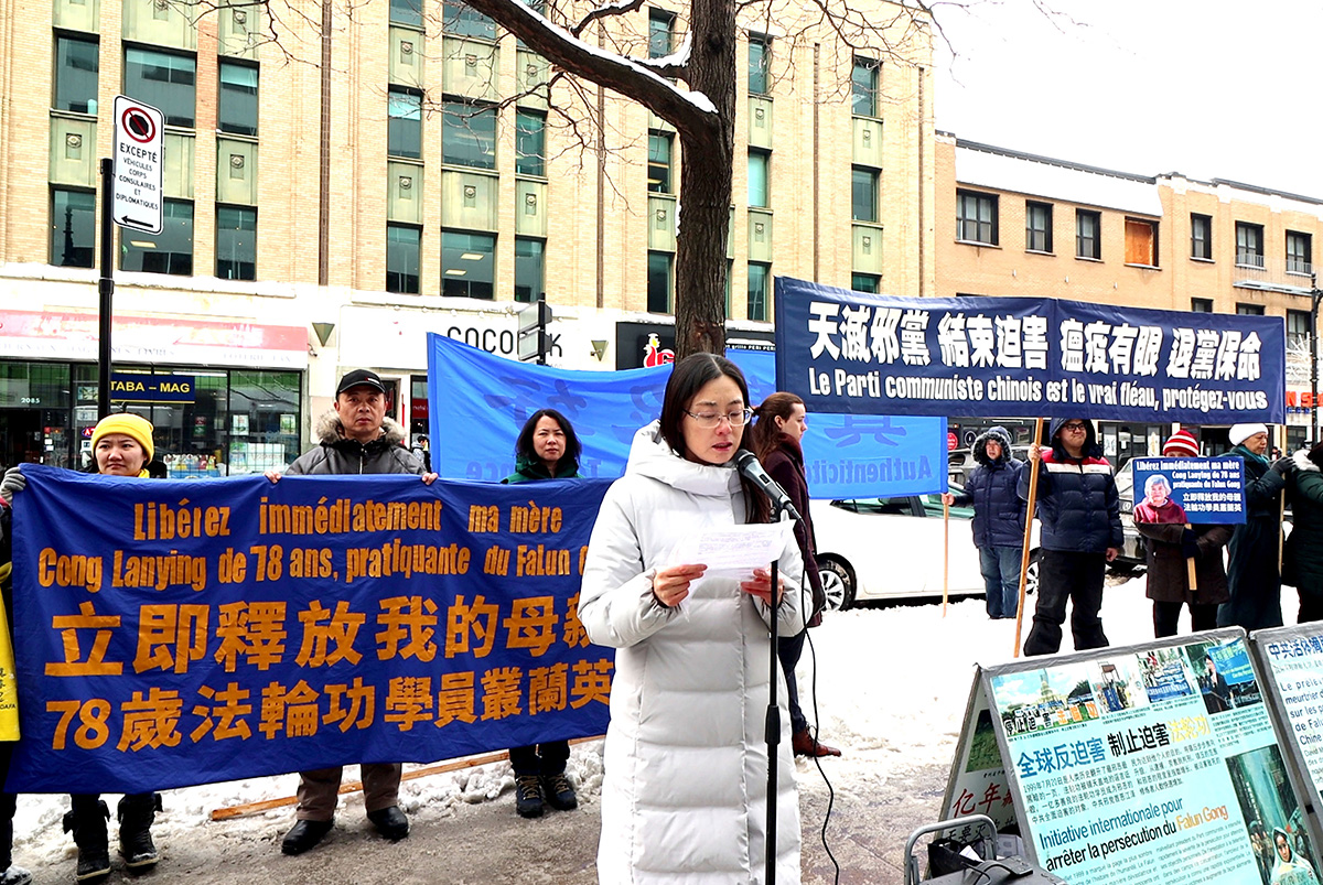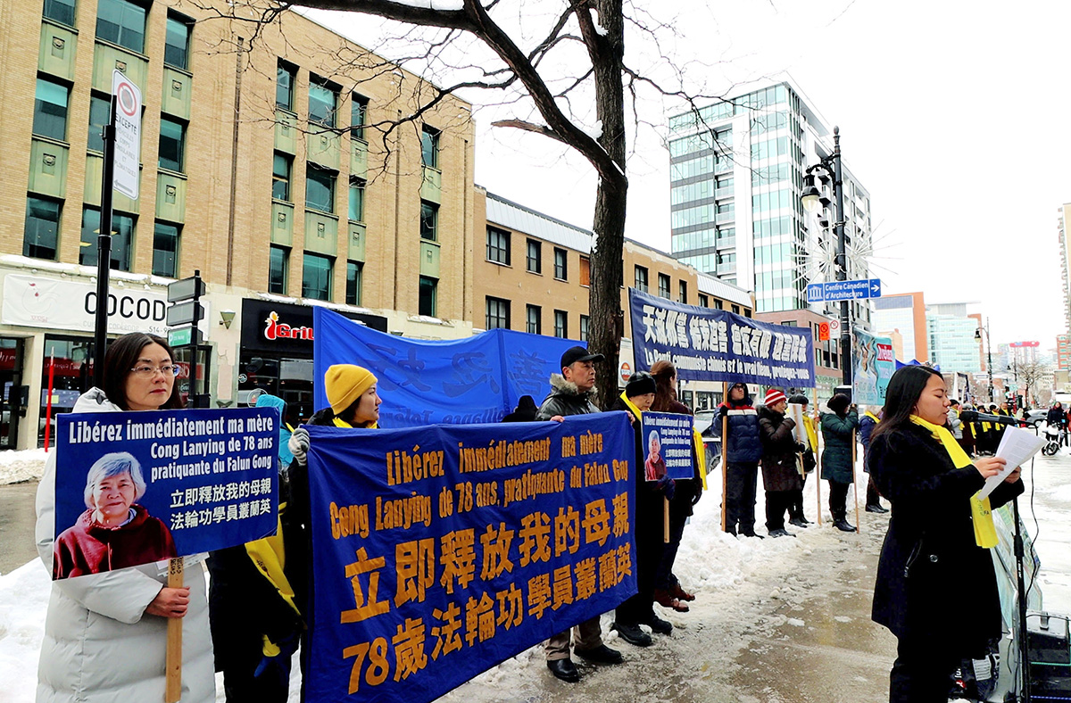 【明慧网二零二三年三月三日】二零二三年三月一日,法轮功学员在蒙特利尔中领馆前集会,要求中共当局无条件释放被非法判刑和关押的山东法轮功学员丛兰英女士。