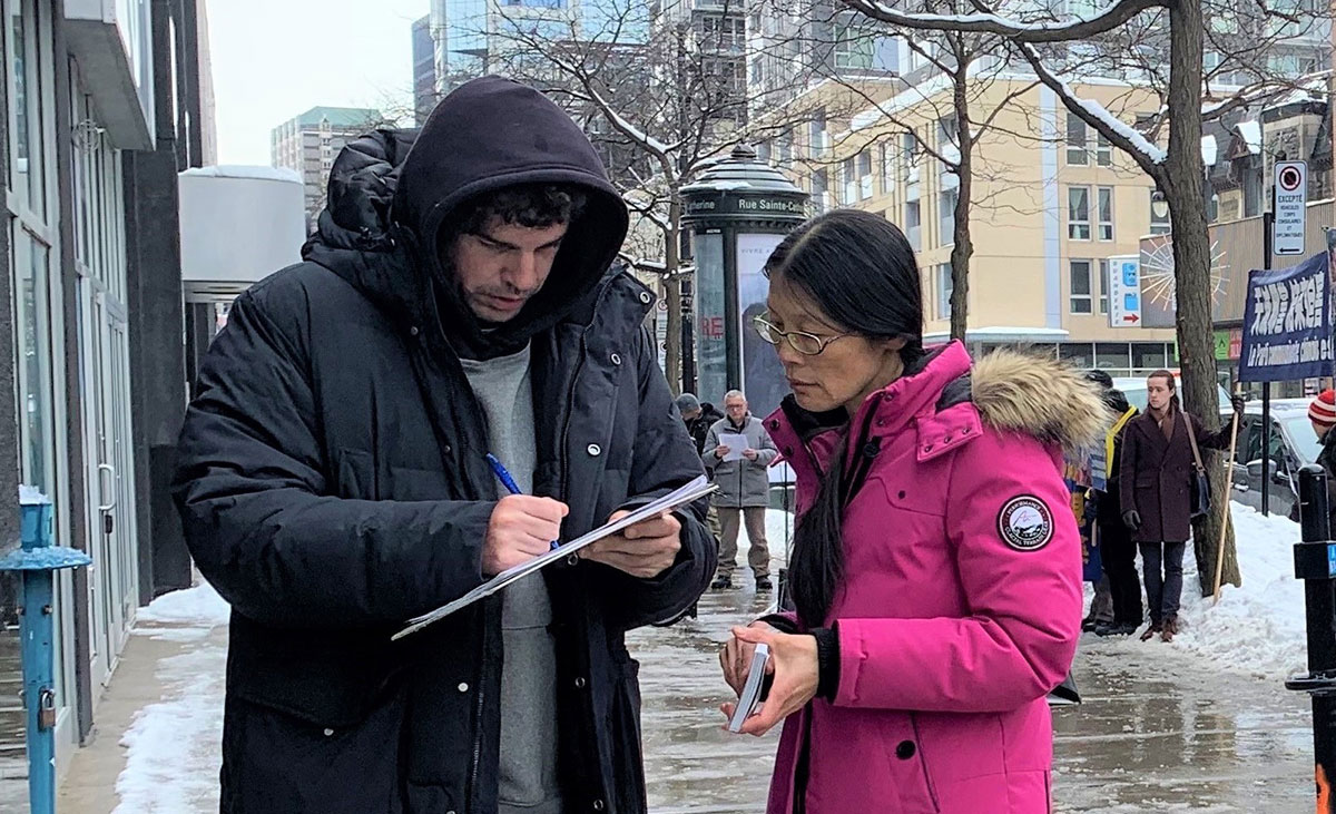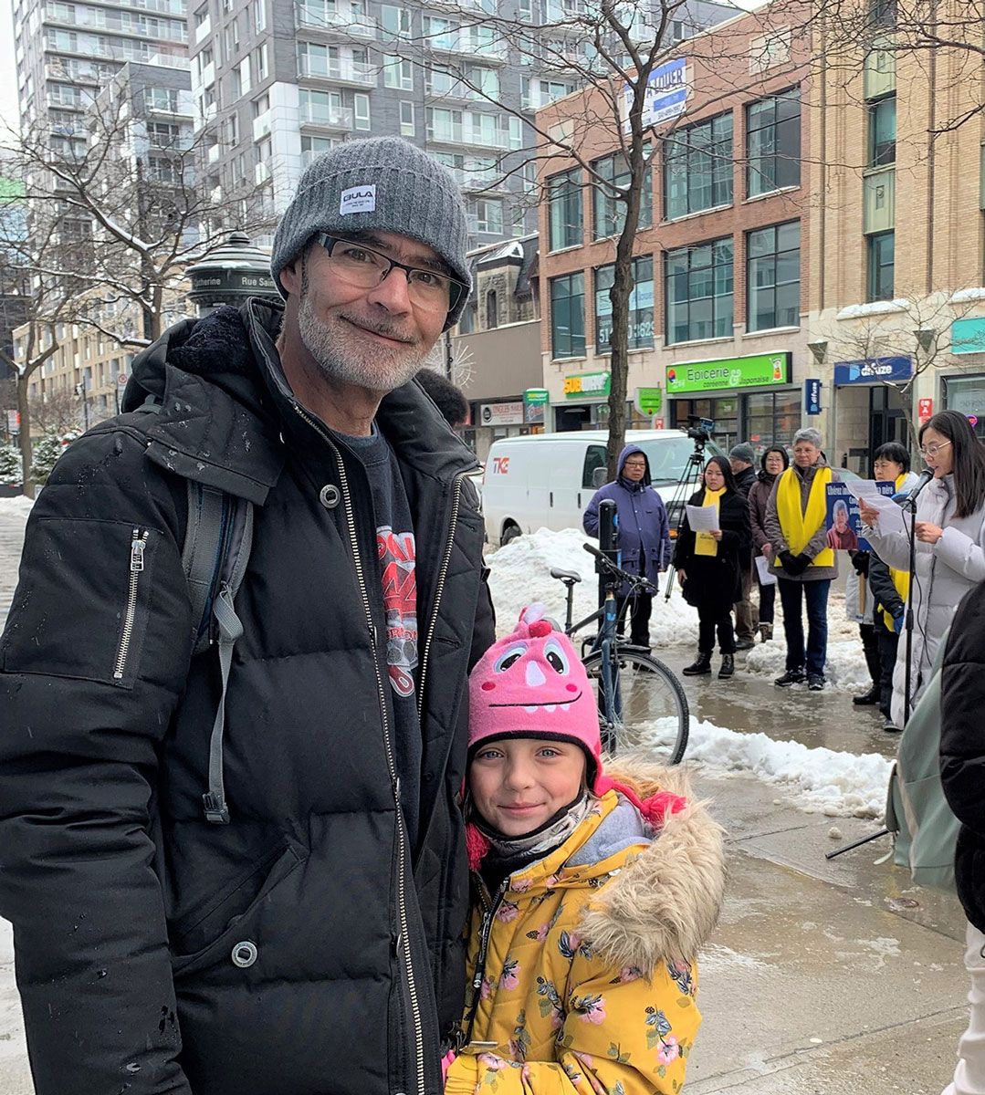 蒙特利尔市民杰里米·菲绍特(Jeremy Fishaut)说:“中共抓捕这样一位老人,太过分了。”他表示很清楚中共迫害人权、迫害中国人的恶行,说:“我支持他们(法轮功学员),祝他们(营救)成功”。