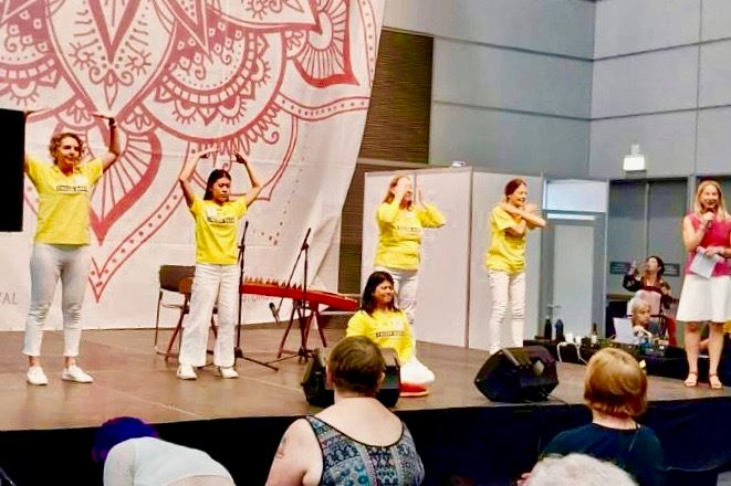 理发师阿曼达·摩根(Amanda Morgan)来到法轮功的展位学炼了五套功法,她说:“我听说过法轮大法,但我从来没有炼过。今天学炼了五套功法,感觉非常好,动作简单易学。当我学炼打坐时,感受到很多能量从宇宙中下来,有一种身心合一的体验。”