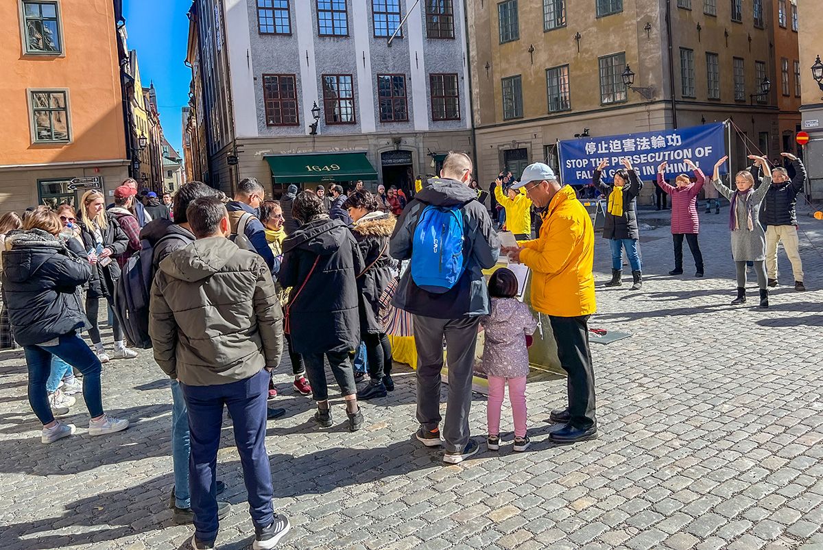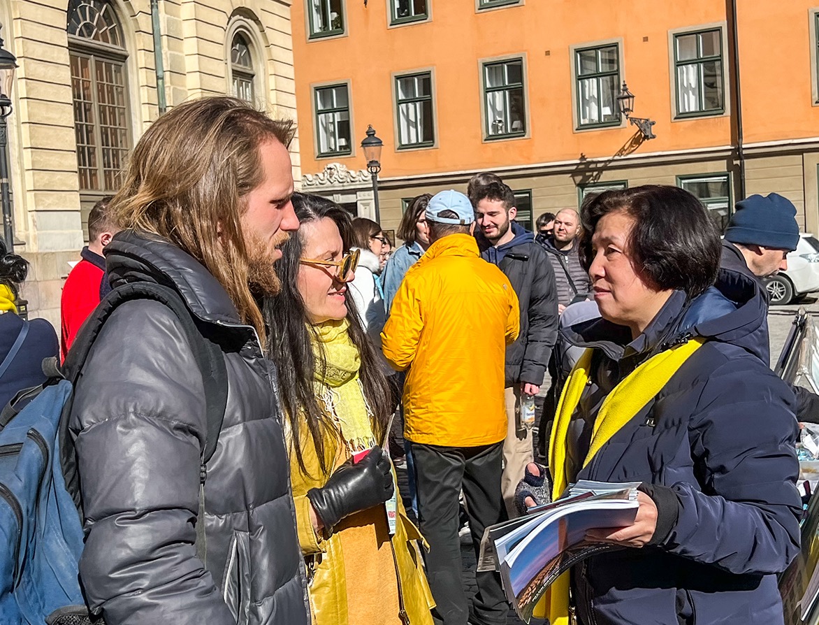 两位来瑞典旅游的美国人经过活动现场时,一看到“停止迫害法轮功”醒目的横幅,就径直走过来在反迫害征签表上签名。其中那位女士说她曾经去过中国,是美国英文《大纪元时报》的忠实读者。她说:“我从中了解到了一些中国古老传统文化、法轮功真相以及很多真实的资讯。你们(法轮功学员)做得太好了,我非常支持你们。”