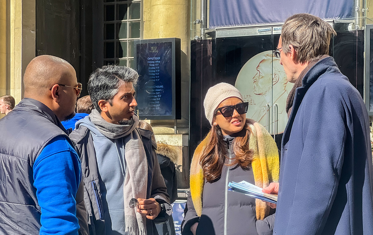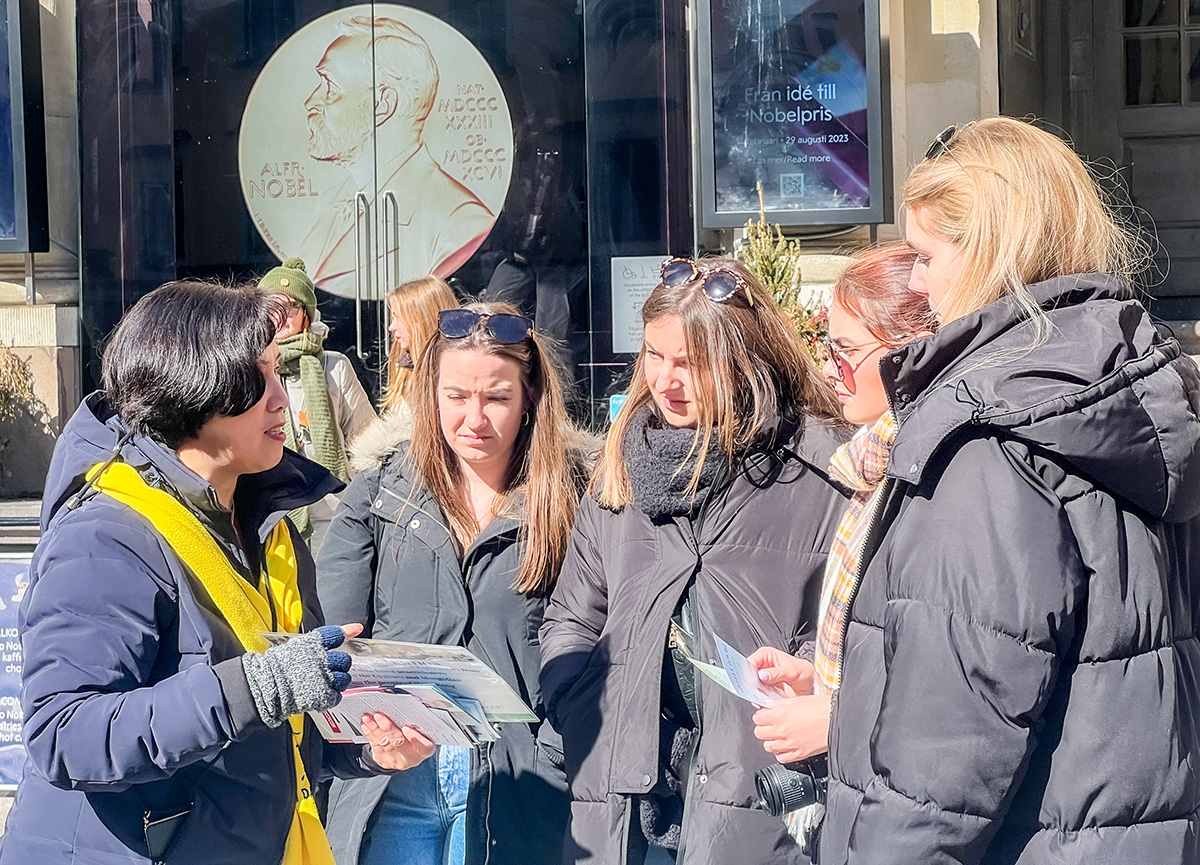 ![]() 图1~2:二零二三年四月八日,法轮功学员在斯德哥尔摩著名的诺贝尔博物馆前举办讲真相活动。 |