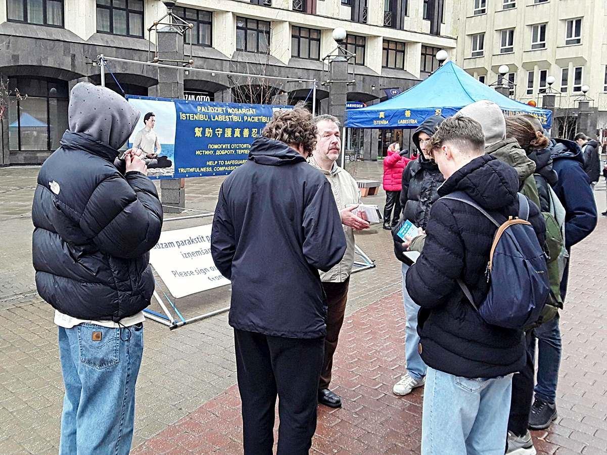 另一位男子说,他已经在库尔迪加(Kuldīga拉脱维亚的另一个城市)签署了请愿书。他对阅读法轮大法的主要书籍《转法轮》产生了兴趣,表示他会去图书馆查阅。