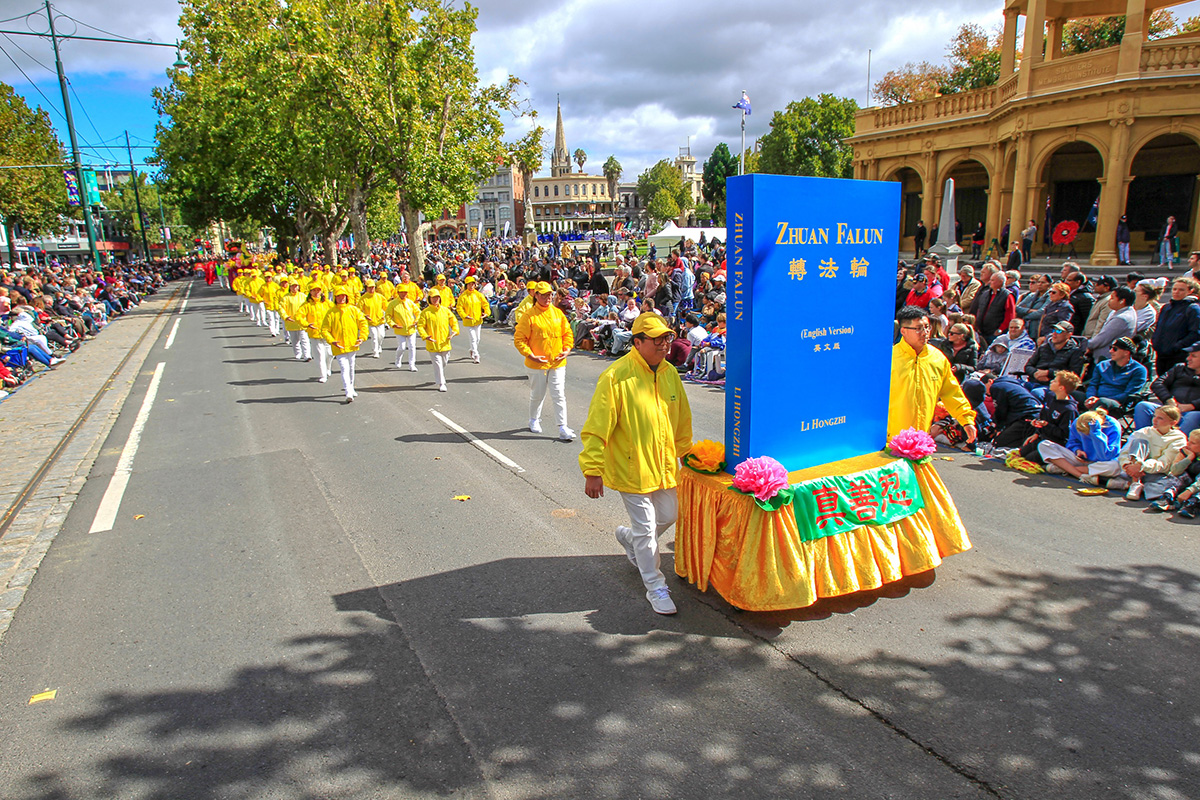 法轮功团体今年再次获邀参加。来自墨尔本和悉尼的部分学员,以色彩绚丽、丰富多彩的演出向当地民众传递着法轮大法的美好福音。