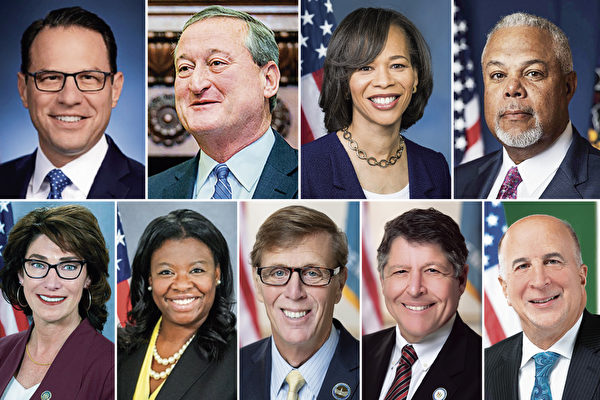 图18:二零二三年四月十二日至十六日,神韵艺术团将莅临费城连续演出七场,各级政要为神韵发来贺信和褒奖。上排左起:宾州州长夏皮罗(Josh Shapiro),费城市长肯尼(James Kenney),美国联邦众议员罗切斯特(Lisa Blunt Rochester),宾州参议员威廉姆斯(Anthony H. Williams),宾州众议员艾萨克森(Mary Isaacson);下排左起:宾州众议员瑞吉娜·杨(Regina G. Young),特拉华州众议员迈克尔·拉蒙(Michael J. Ramone)和保罗·鲍姆巴赫(Paul Baumbach),特拉华州州参议员、州参议院惩戒与公共安全委员会主席Marie Pinkney,费城市议会主席 Darrell L. Clarke 和市议员斯奎拉(Mark Squilla)。(大纪元合成图)