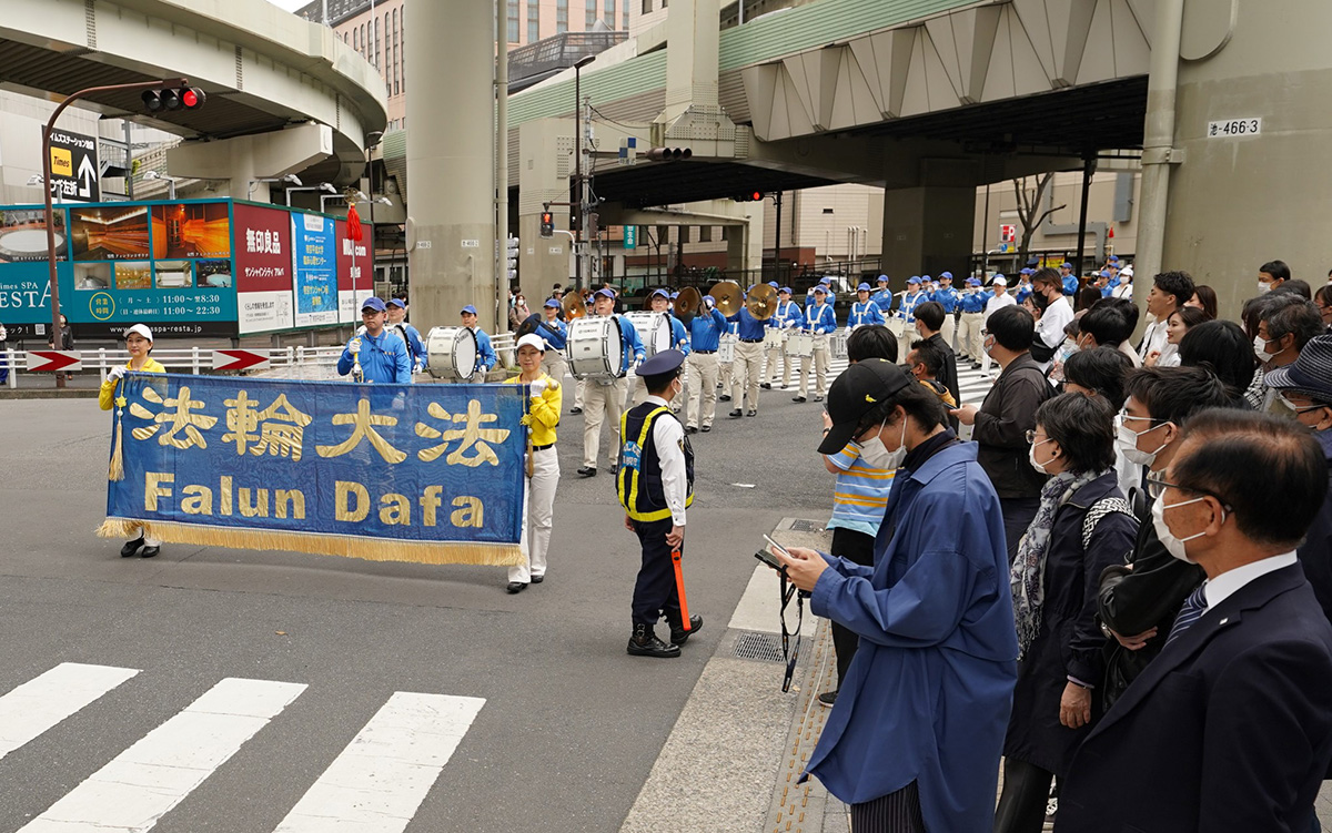 游行队伍从东池袋中央公园出发,经过东京的多个繁华街区以及华人聚居地,历时一个多小时。游行队伍由警车开路,随后是上百人的天国乐团先行,接着是手持各种真相横幅队伍缓缓前行,紧随其后的炼功队展示了优美舒缓的功法动作。还有学员沿途发放真相资料,征求停止迫害法轮功的签名。