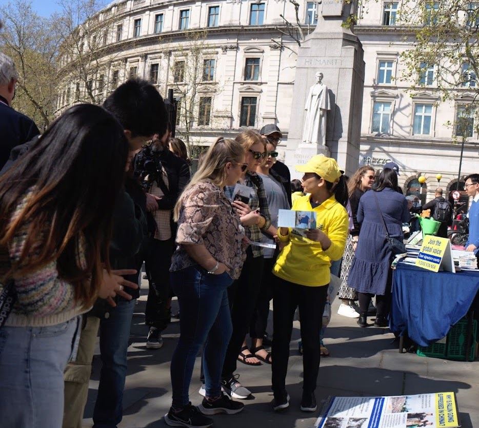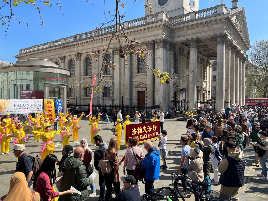 活动当天伦敦难得地晴空万里,大街上游人如织。学员们举行了新闻发布会、功法展示、腰鼓队、独唱表演等活动,吸引了很多路人的关注。