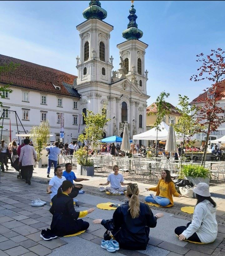 格拉茨市民喜爱法轮功 跟着学炼功法