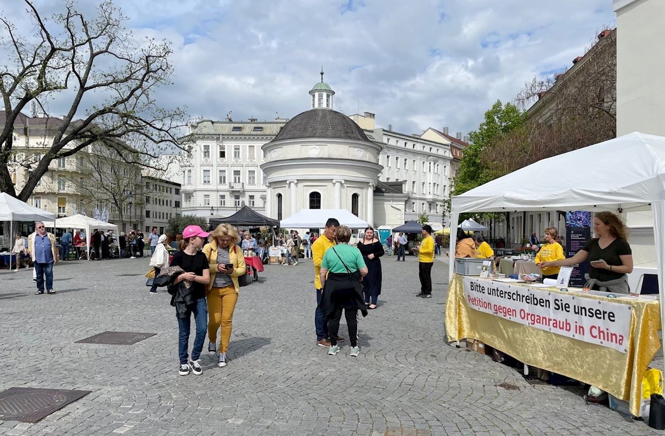 【明慧网二零二三年五月十一日】庆祝五・一三世界法轮大法日,奥地利法轮功学员分别在维也纳、圣帕尔滕、巴登、萨尔茨堡、格拉茨等多州首府城市举行了大法信息日活动。许多市民及游客感谢法轮功学员传播真相,并纷纷在请愿表上签名支持反迫害