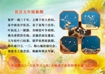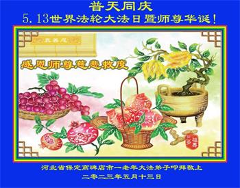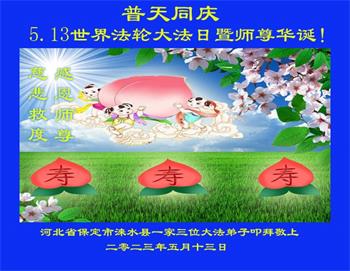 【明慧网二零二三年五月十二日】(明慧网通讯员综合报道)法轮大法洪传三十一年,很多经历了不平凡的岁月、随师正法的大法弟子们走入古稀、耄耋之年。在“五·一三世界法轮大法日”和师尊七十二岁华诞到来之际,中国各地老年大法弟子敬拜师尊!无论还有多少风雨险阻,弟子们一定正念正行,精進不停。