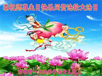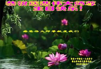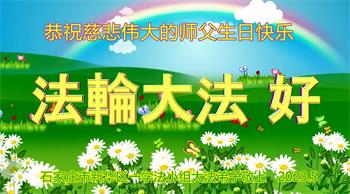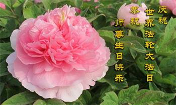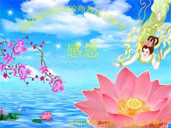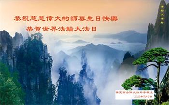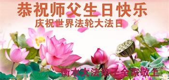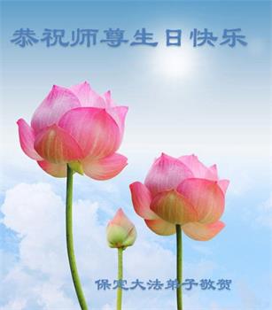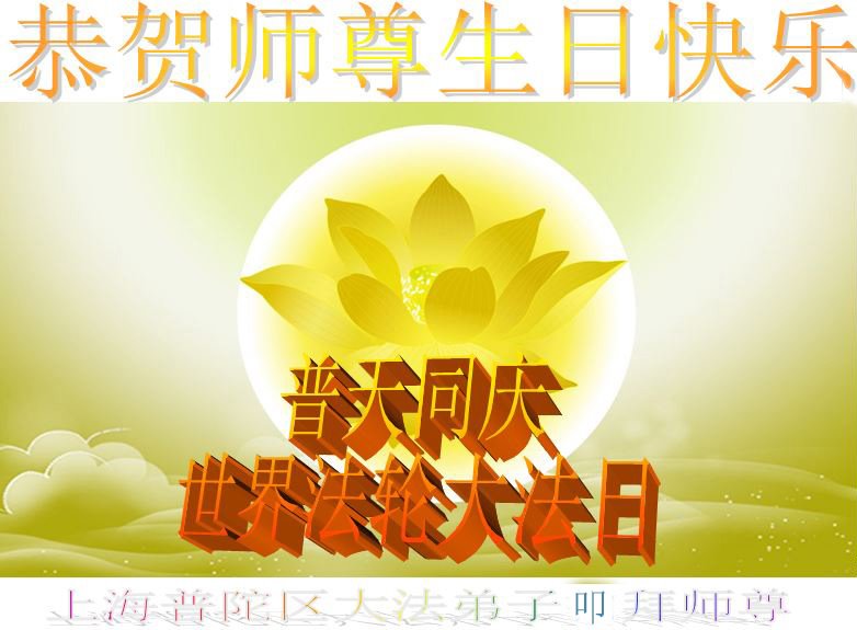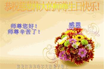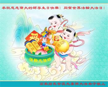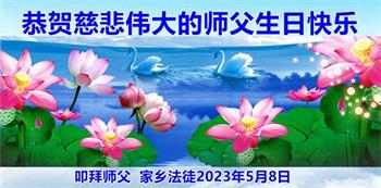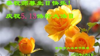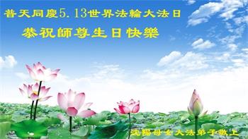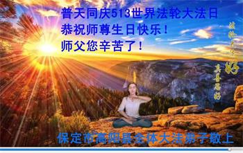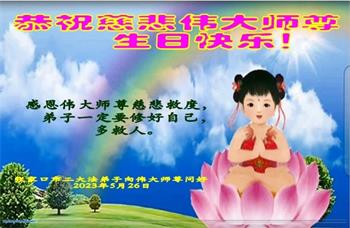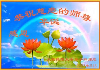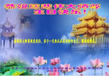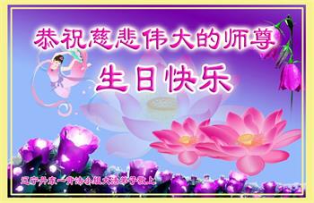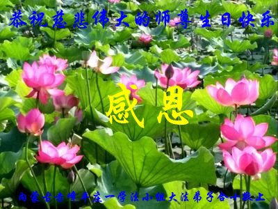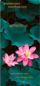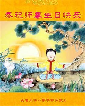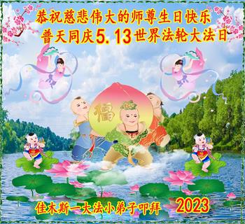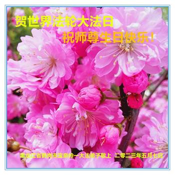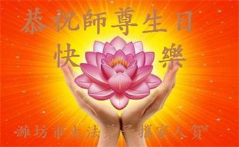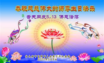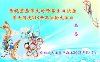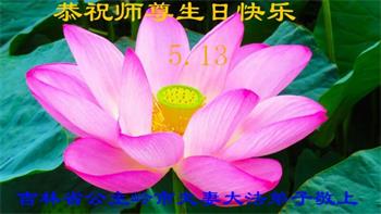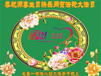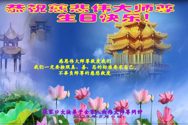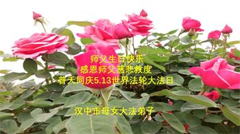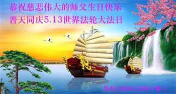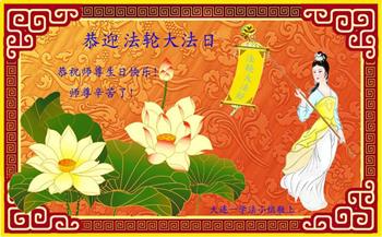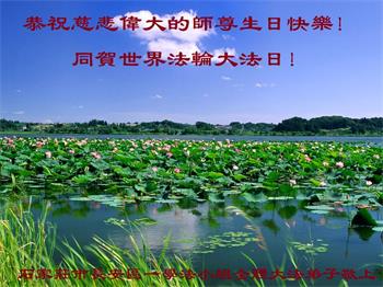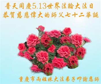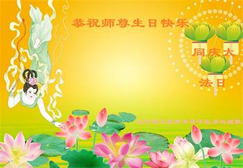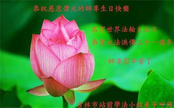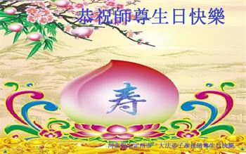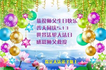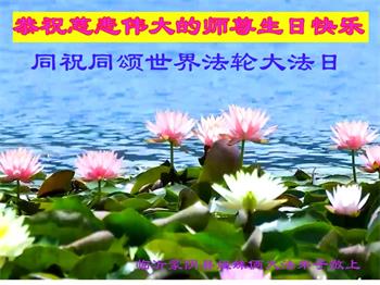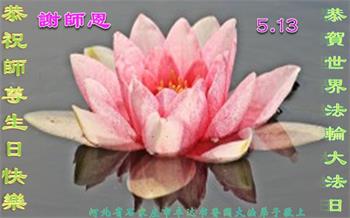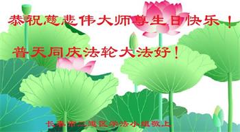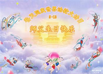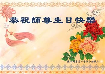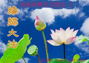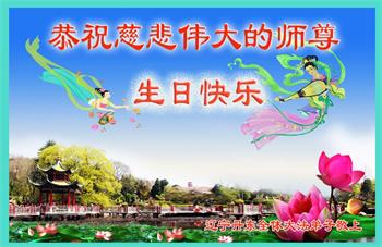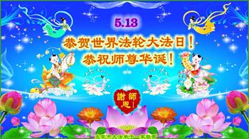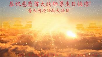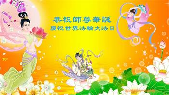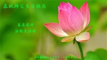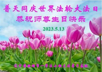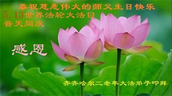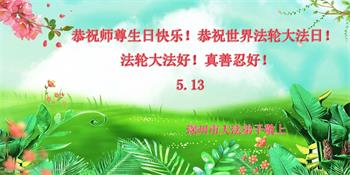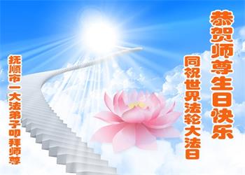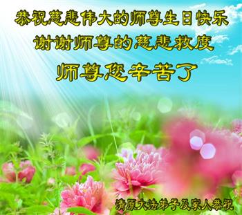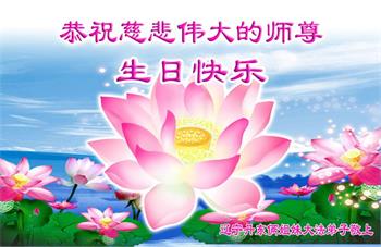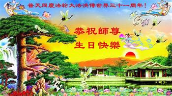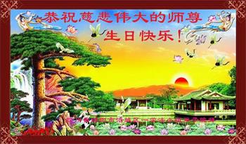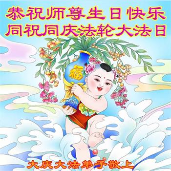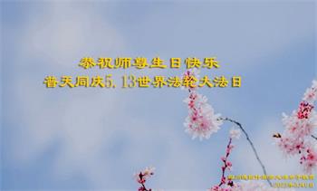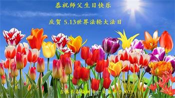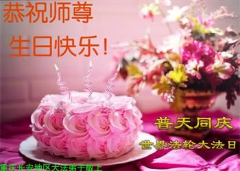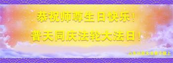 在我们恭祝师父生日和欢庆世界法轮大法日的喜庆时刻,我们心里充满了对师父的无限感恩!慈悲伟大的师父好!恭祝师父生日快乐!