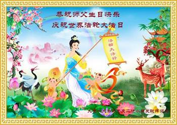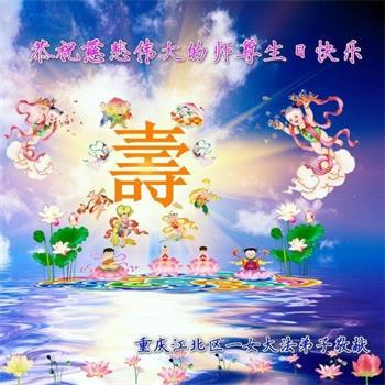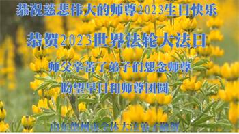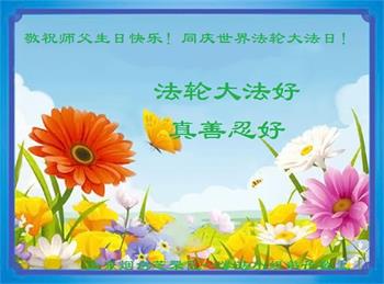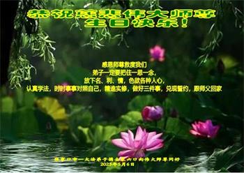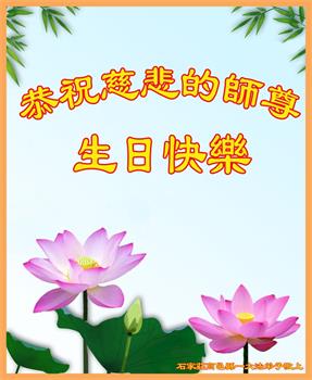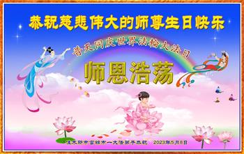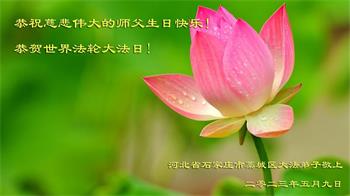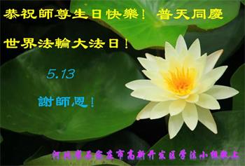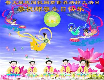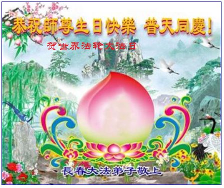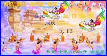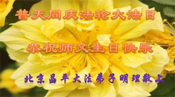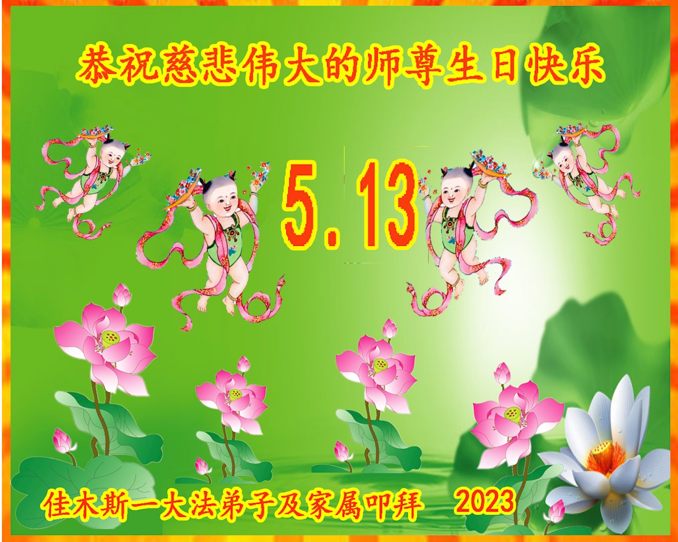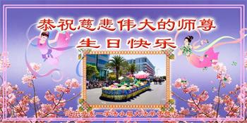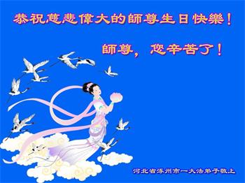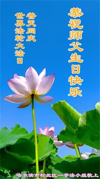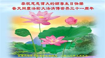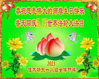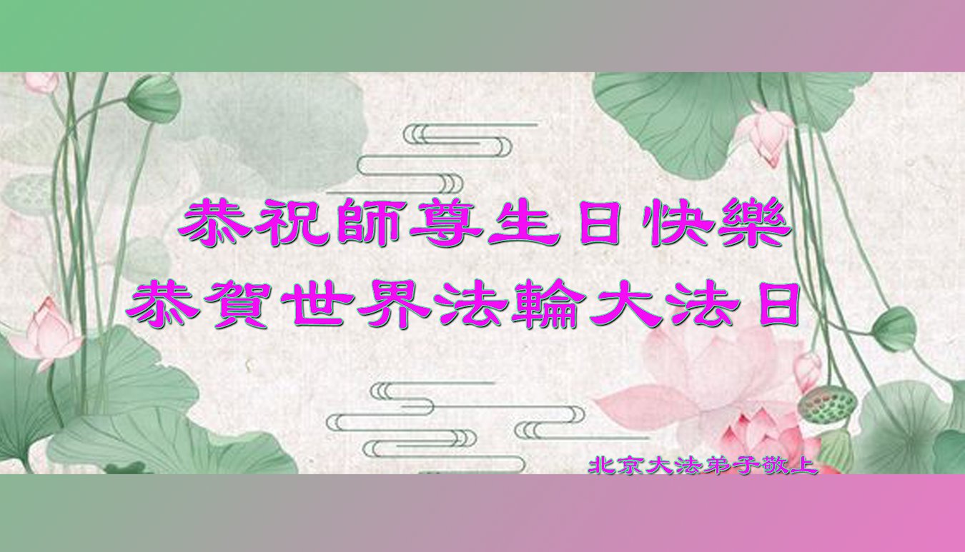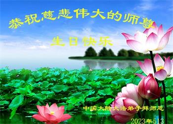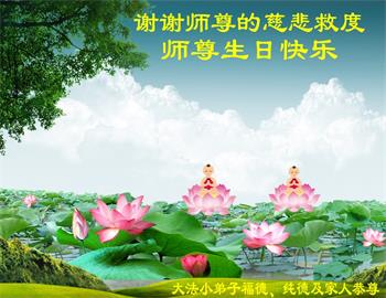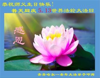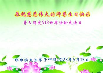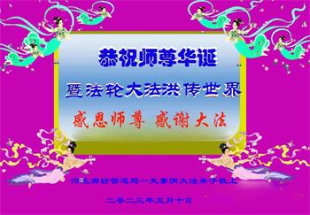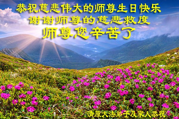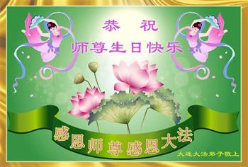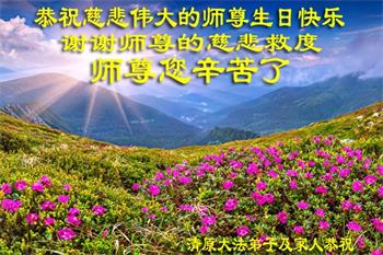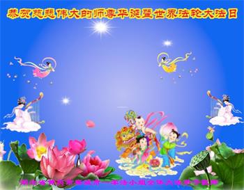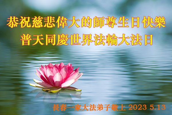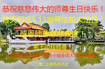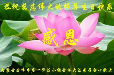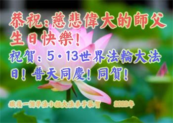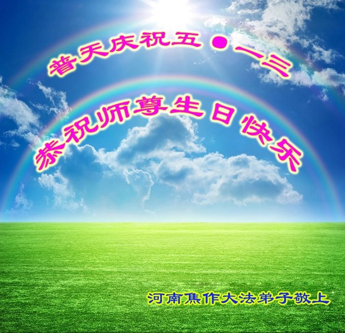 在我们恭祝师父生日和欢庆世界法轮大法日的喜庆时刻,我们心里充满了对师父的无限感恩!慈悲伟大的师父好!恭祝师父生日快乐!