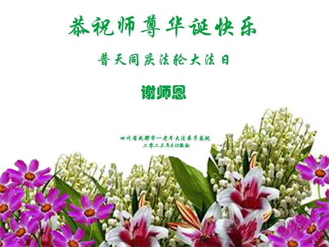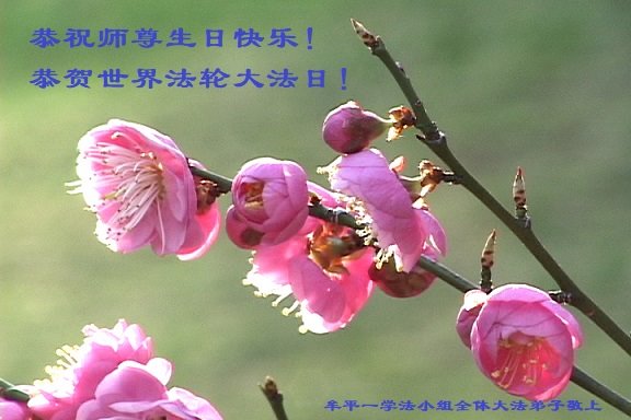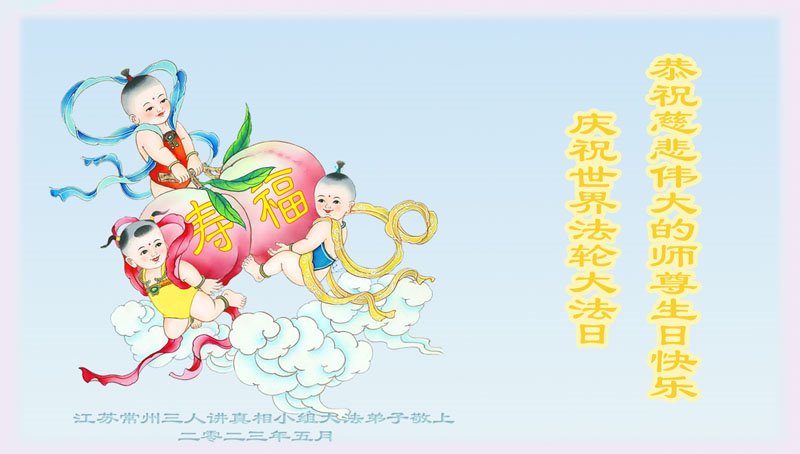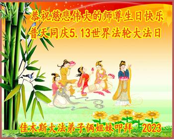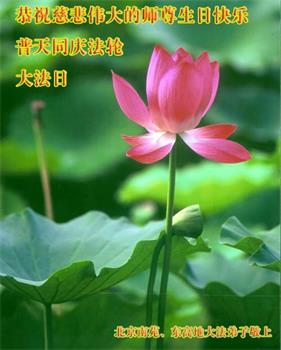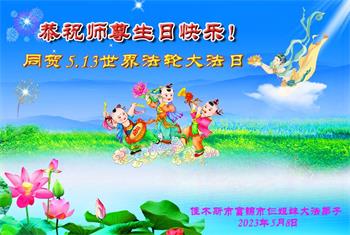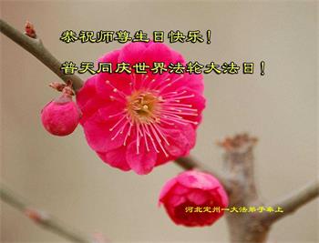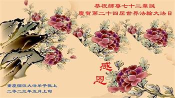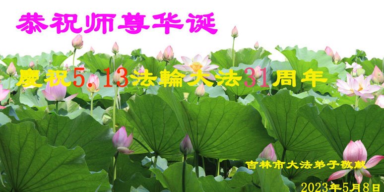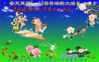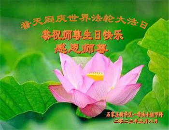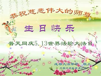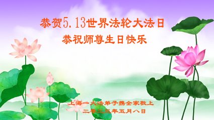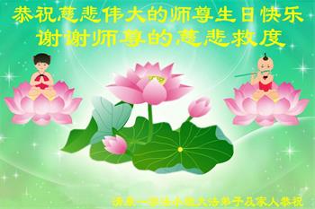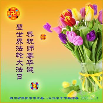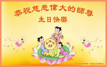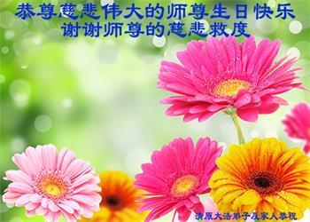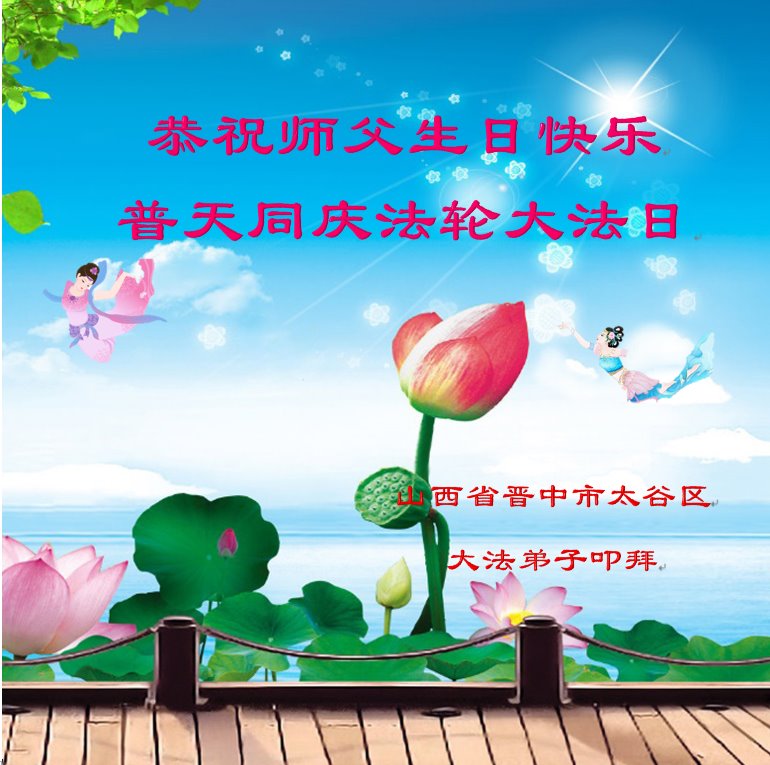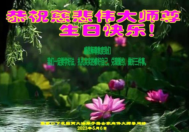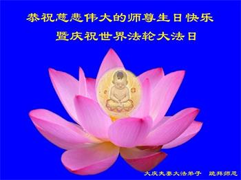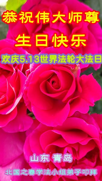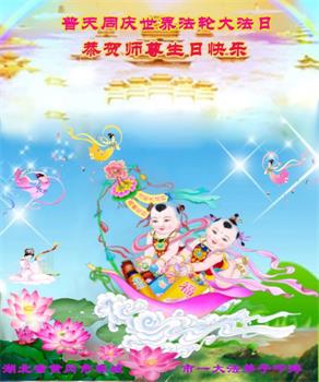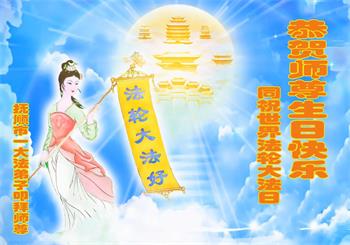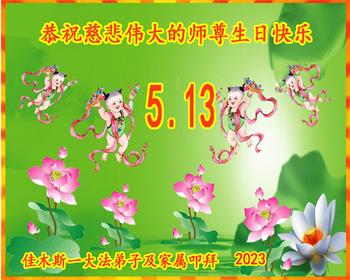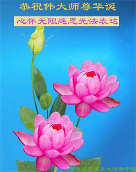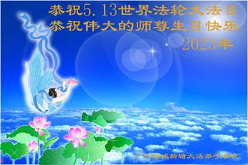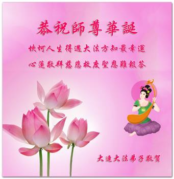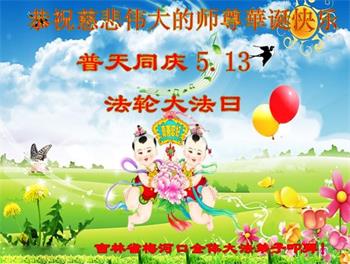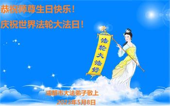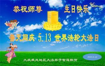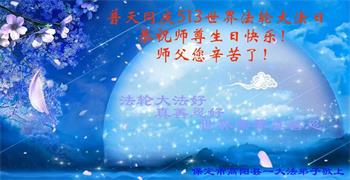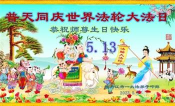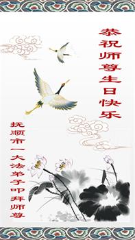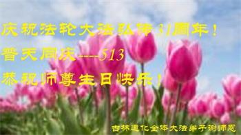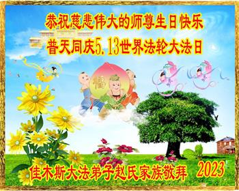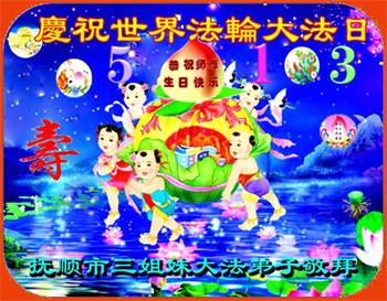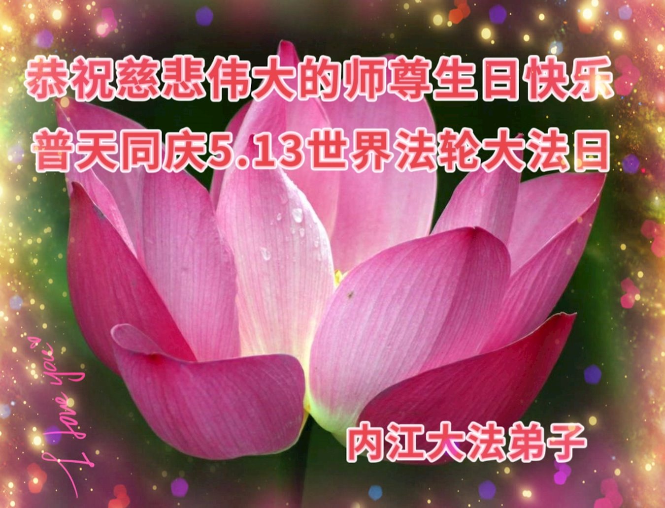 在我们恭祝师父生日和欢庆世界法轮大法日的喜庆时刻,我们心里充满了对师父的无限感恩!慈悲伟大的师父好!恭祝师父生日快乐!