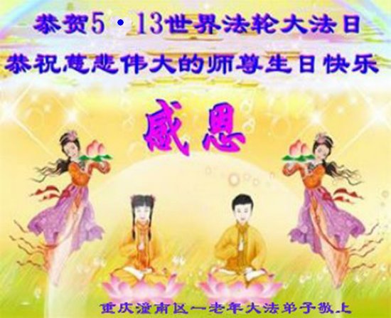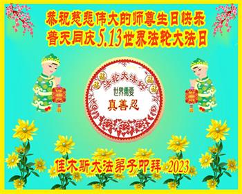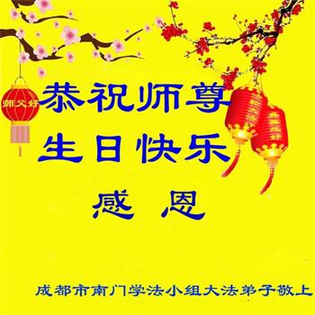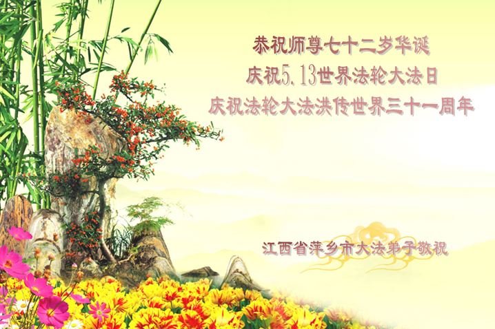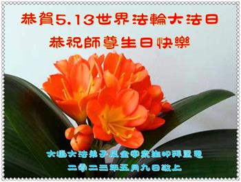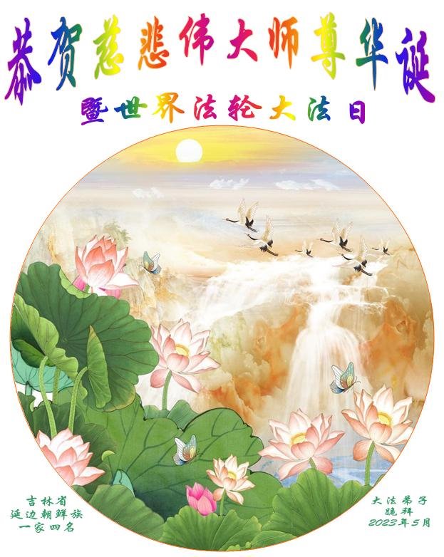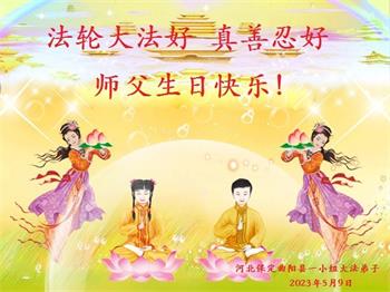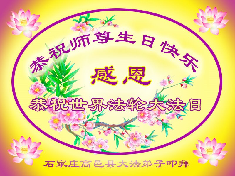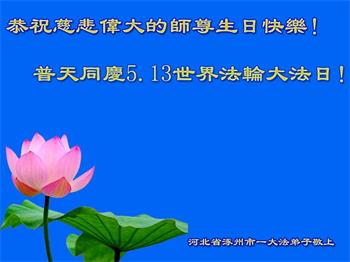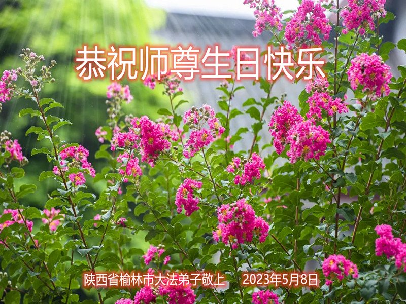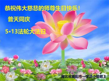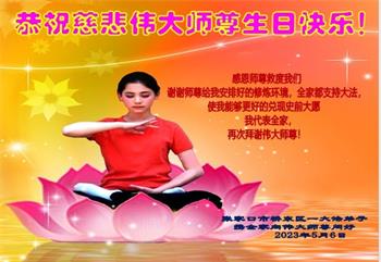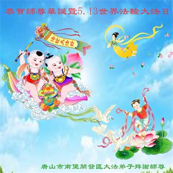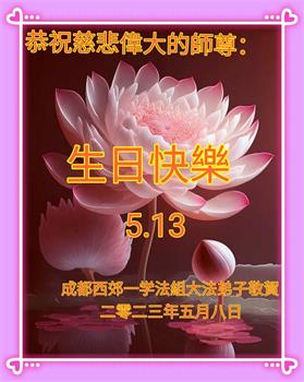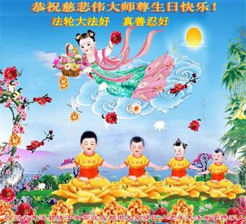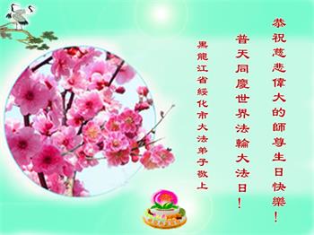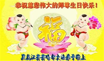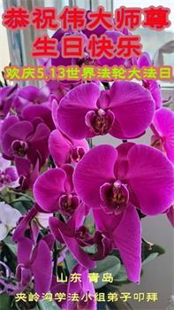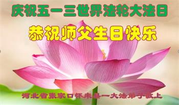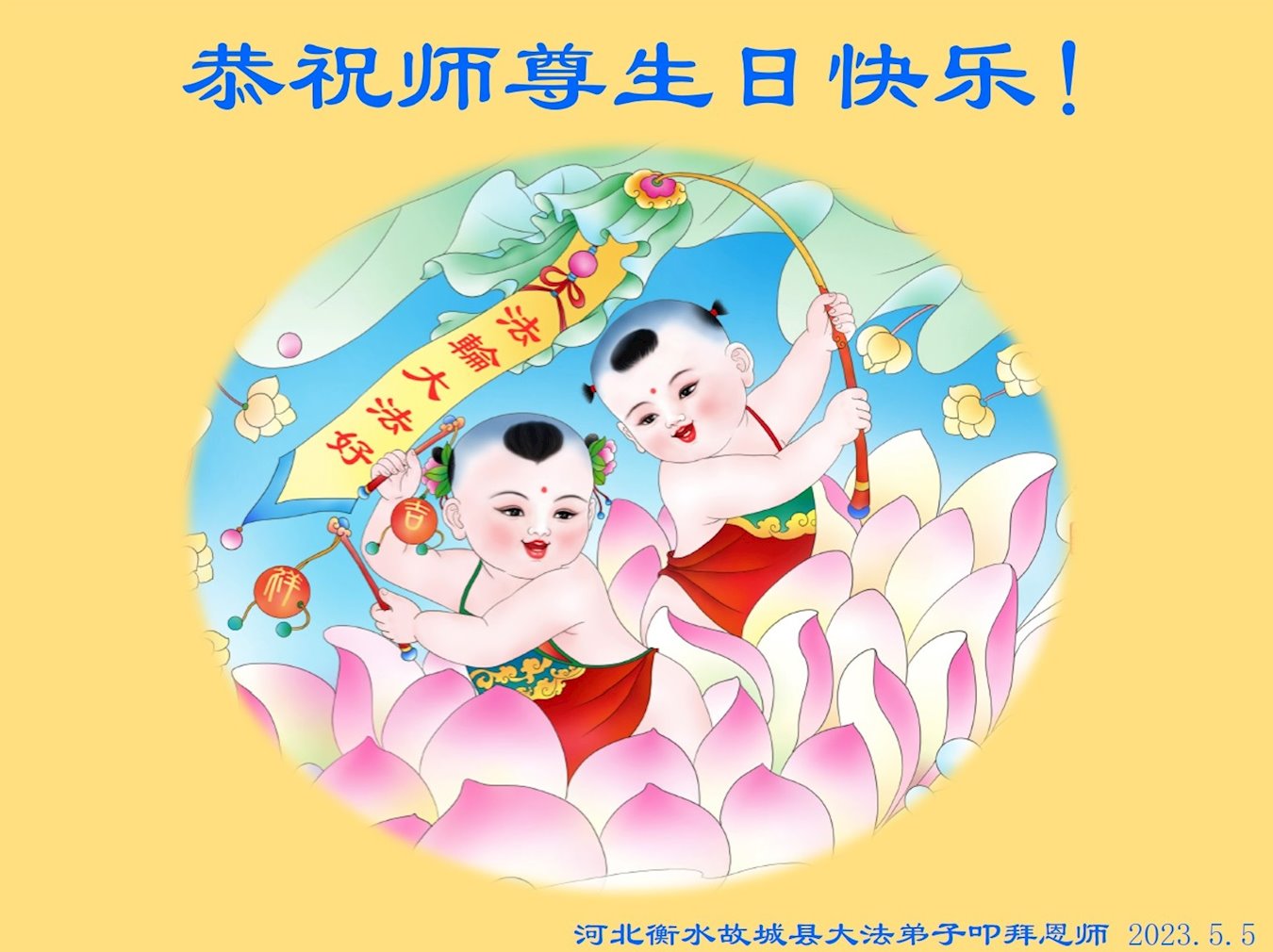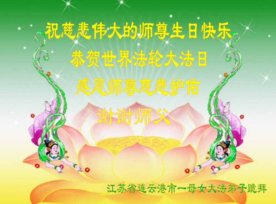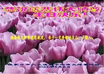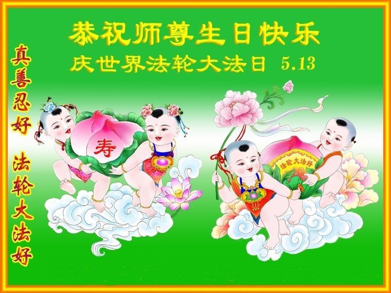 在我们恭祝师父生日和欢庆世界法轮大法日的喜庆时刻,我们心里充满了对师父的无限感恩!慈悲伟大的师父好!恭祝师父生日快乐!