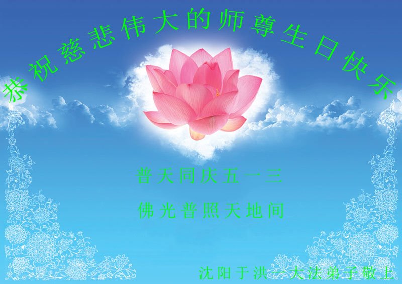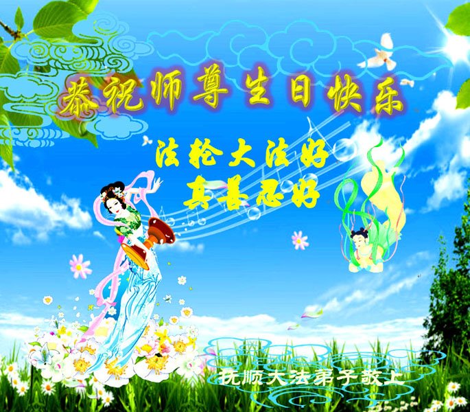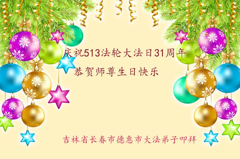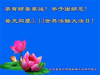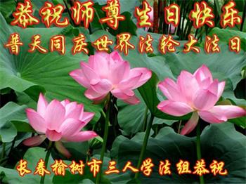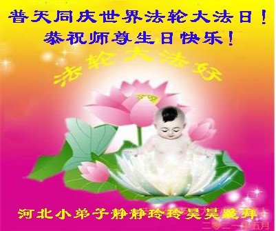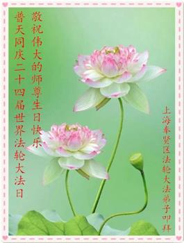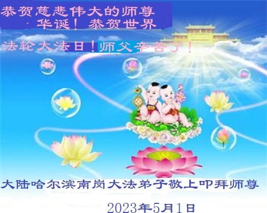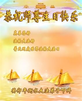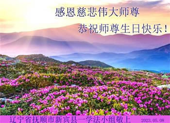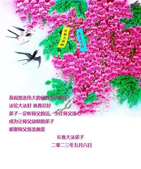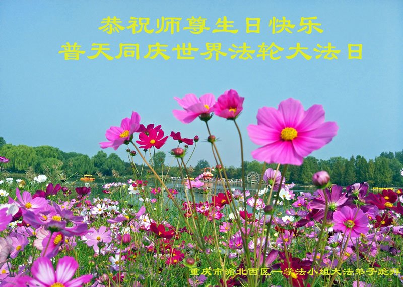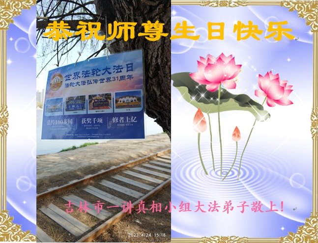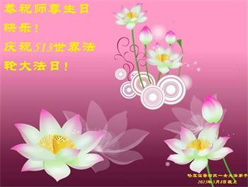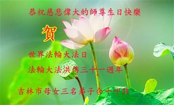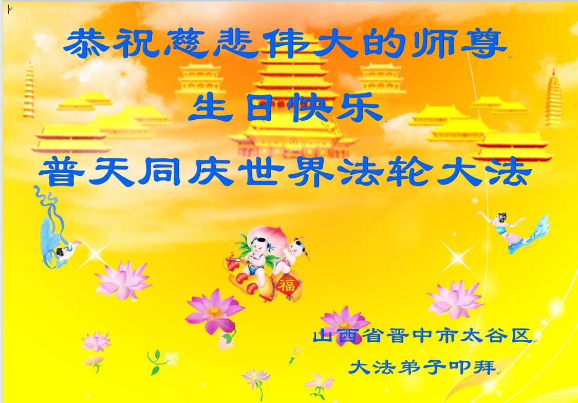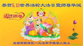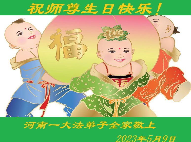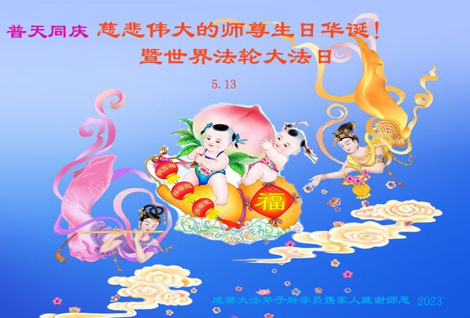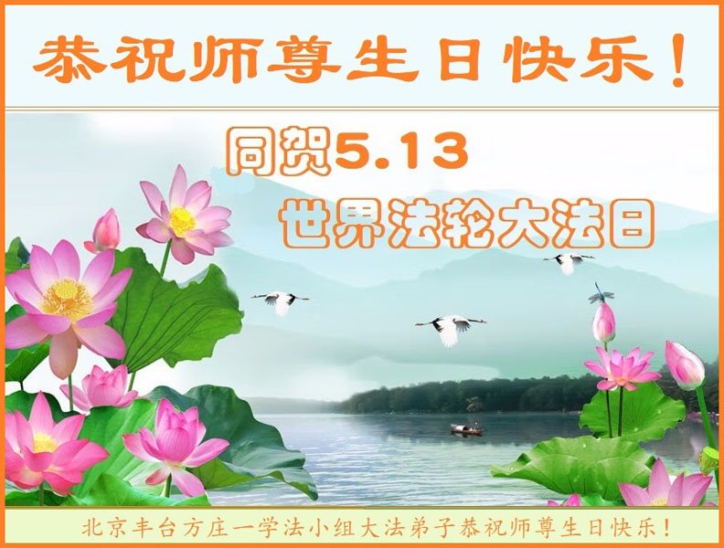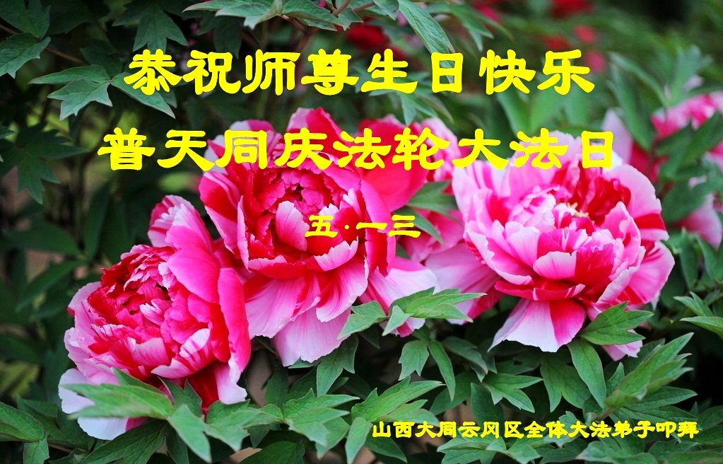 在我们恭祝师父生日和欢庆世界法轮大法日的喜庆时刻,我们心里充满了对师父的无限感恩!慈悲伟大的师父好!恭祝师父生日快乐!