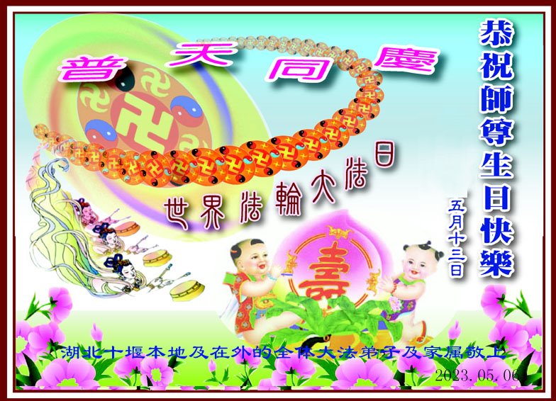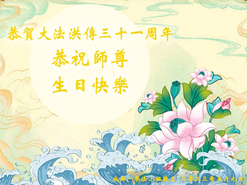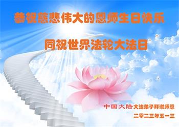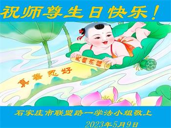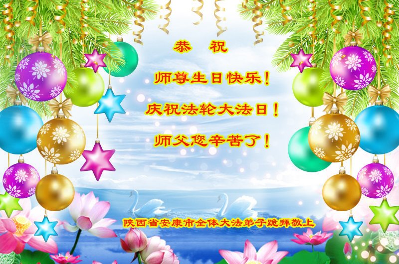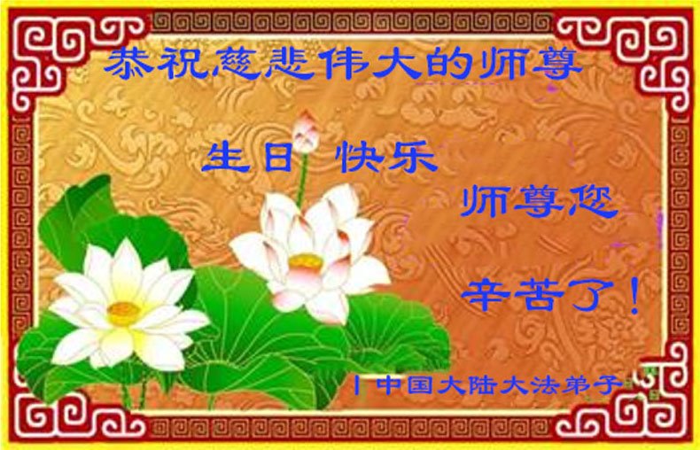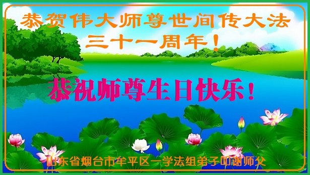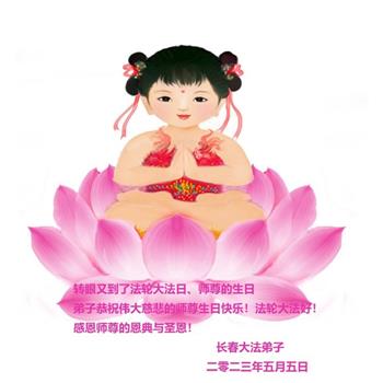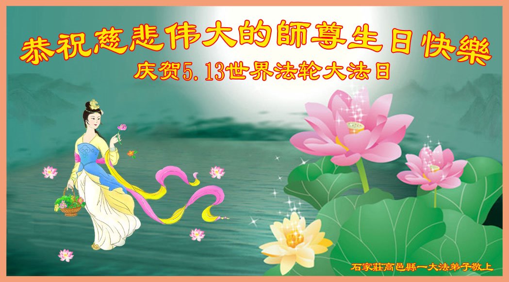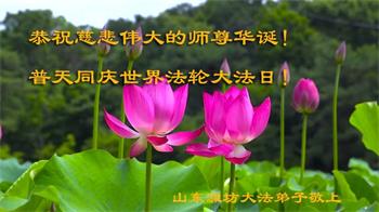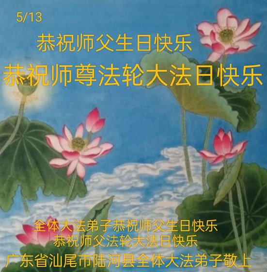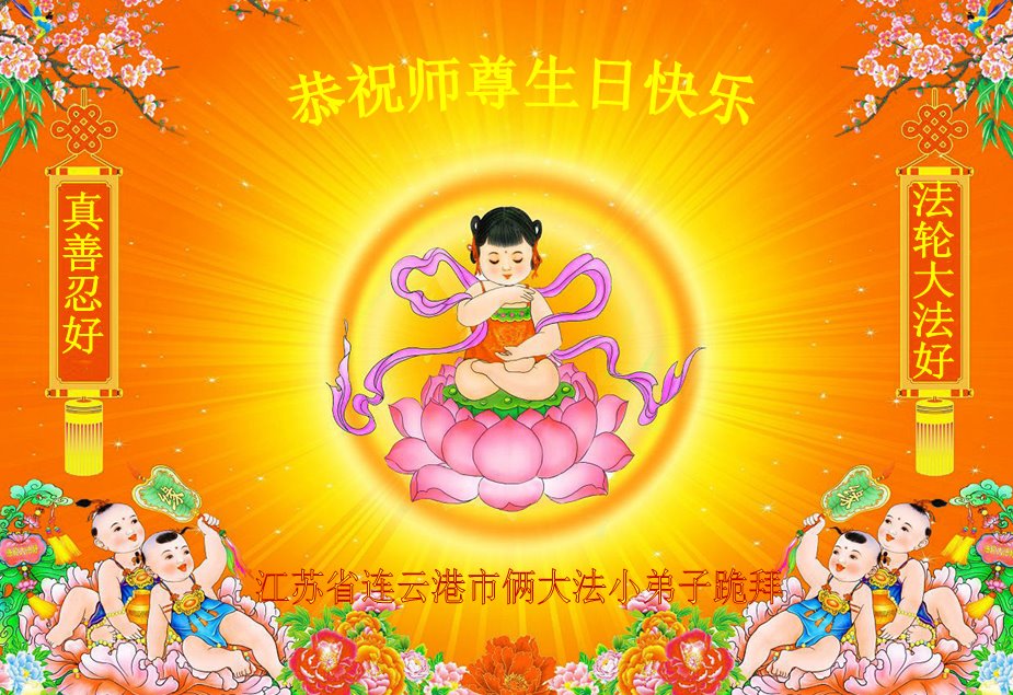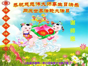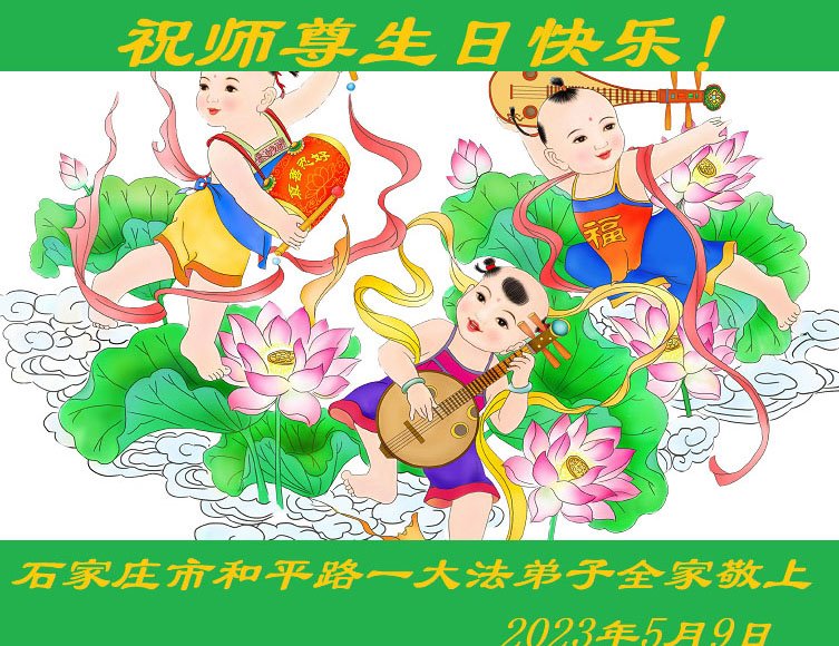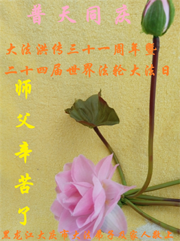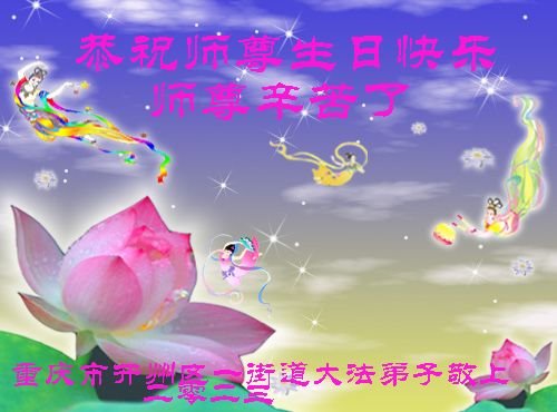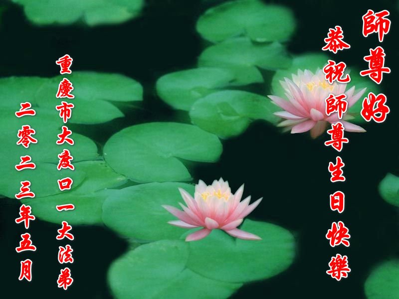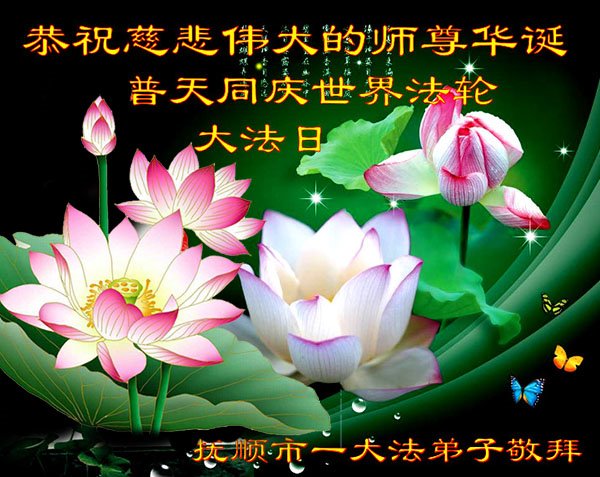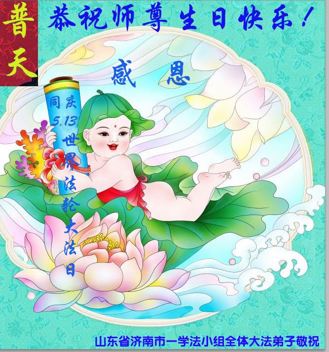 在我们恭祝师父生日和欢庆世界法轮大法日的喜庆时刻,我们心里充满了对师父的无限感恩!慈悲伟大的师父好!恭祝师父生日快乐!
