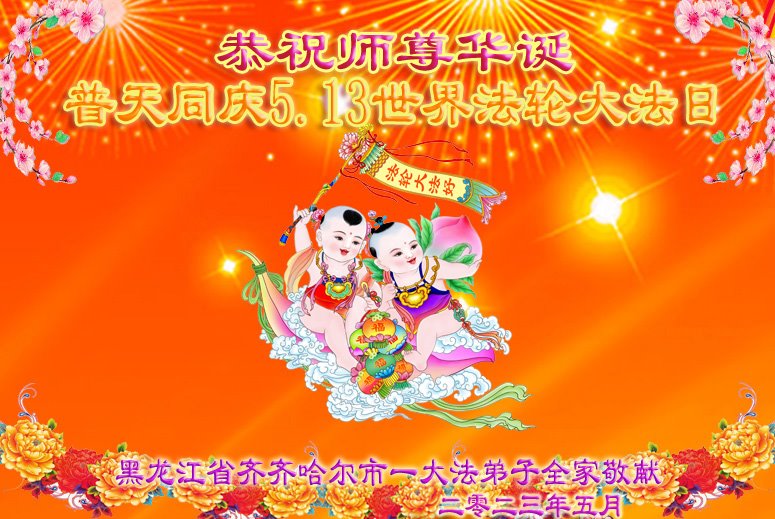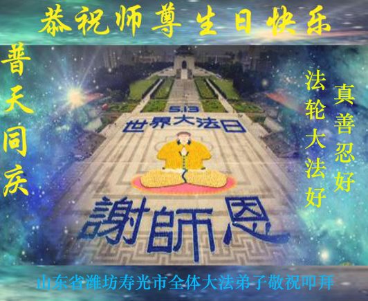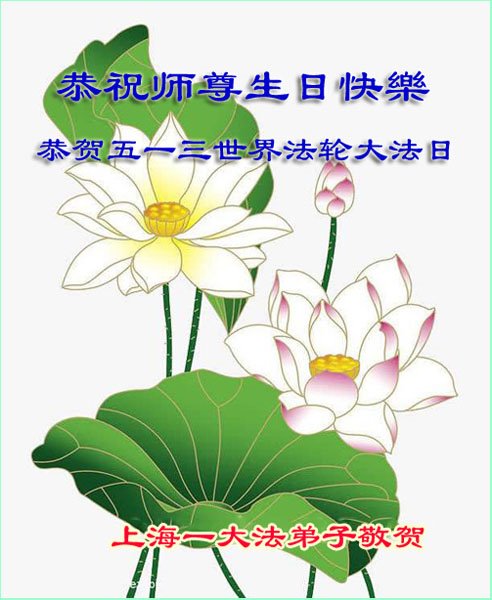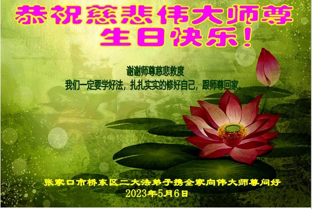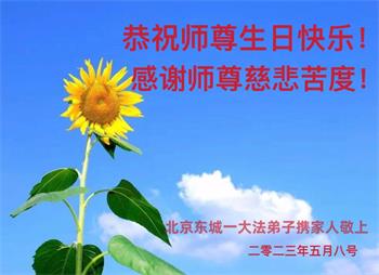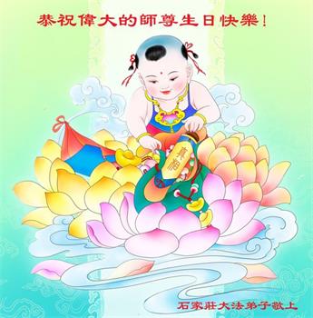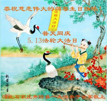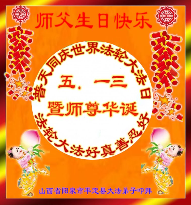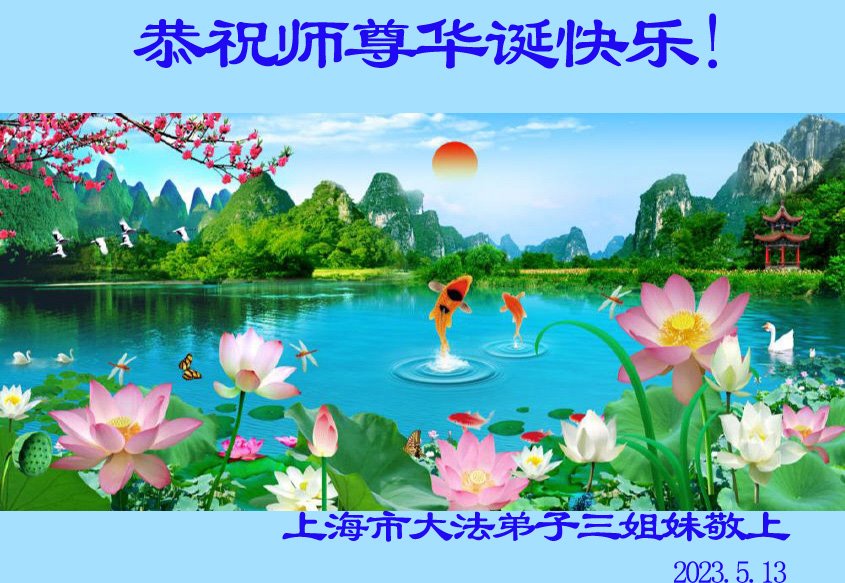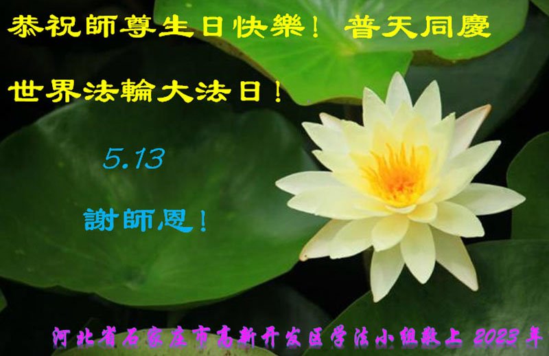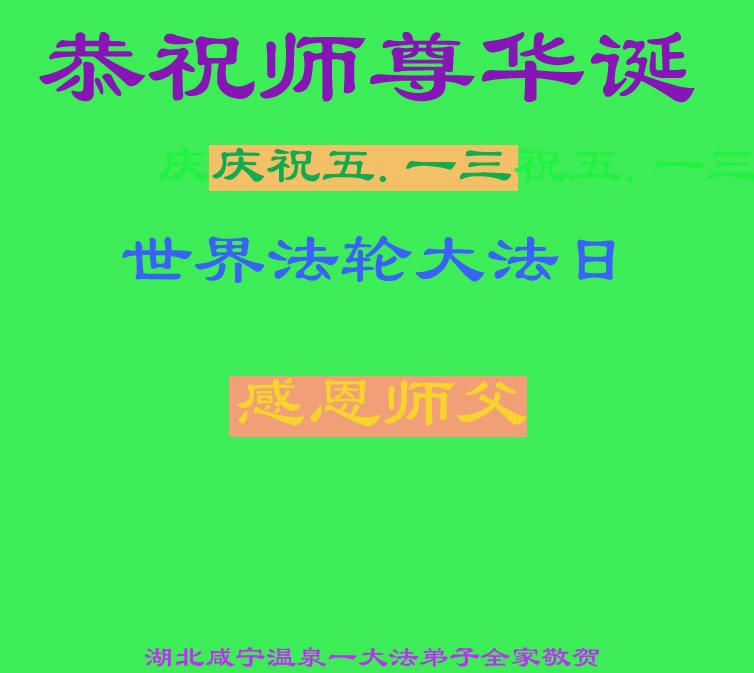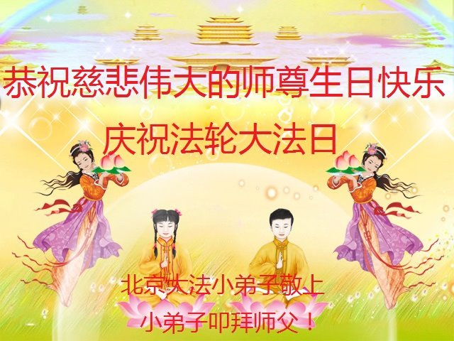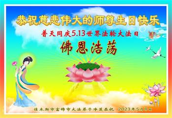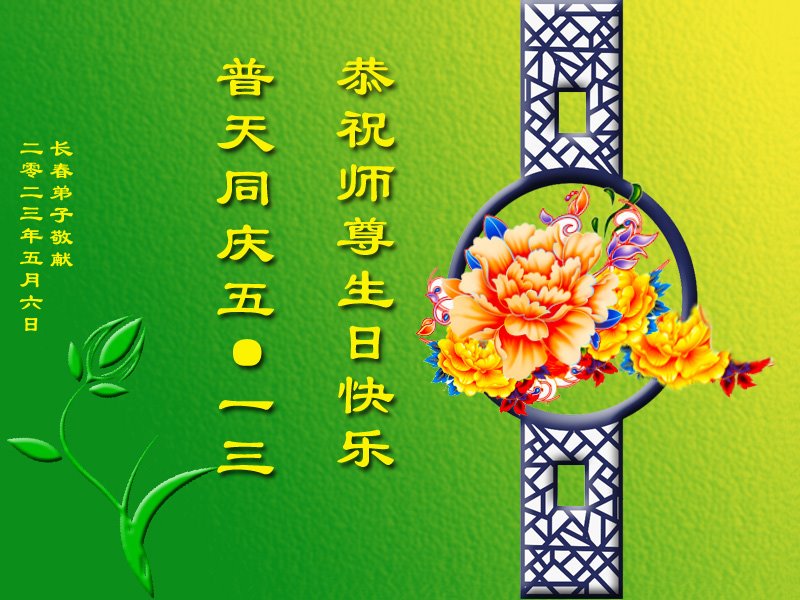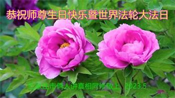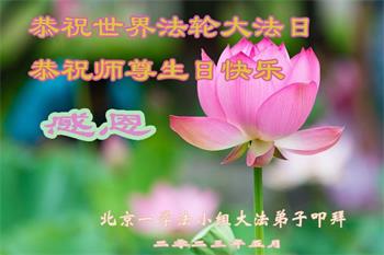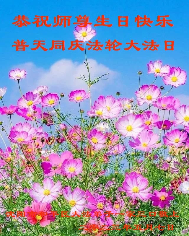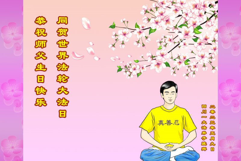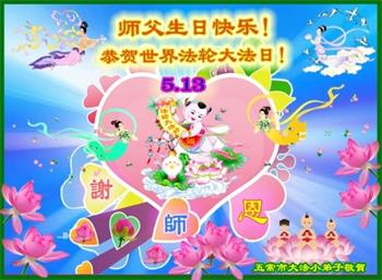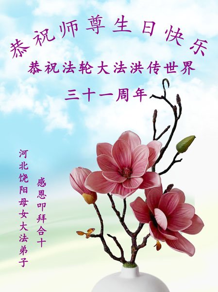在我们恭祝师父生日和欢庆世界法轮大法日的喜庆时刻,我们心里充满了对师父的无限感恩!慈悲伟大的师父好!恭祝师父生日快乐!