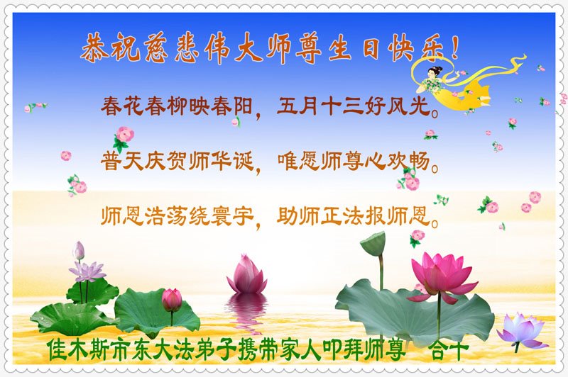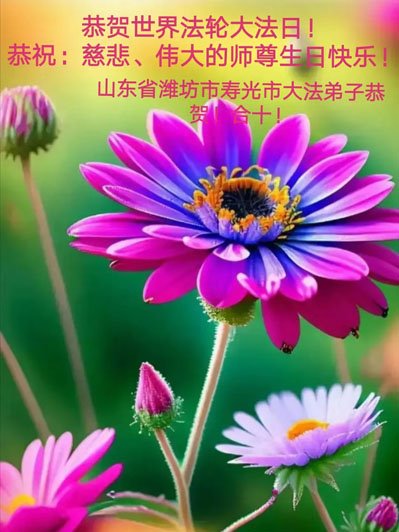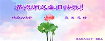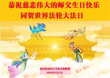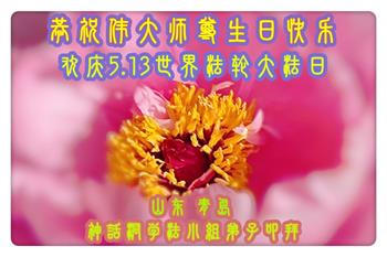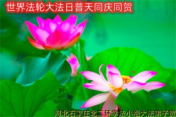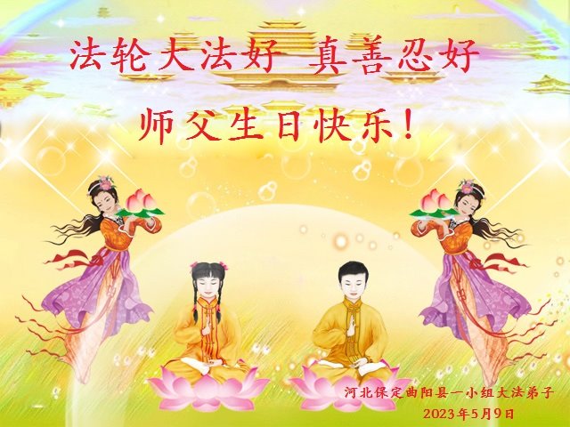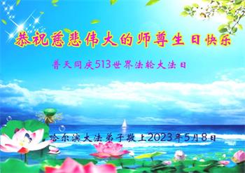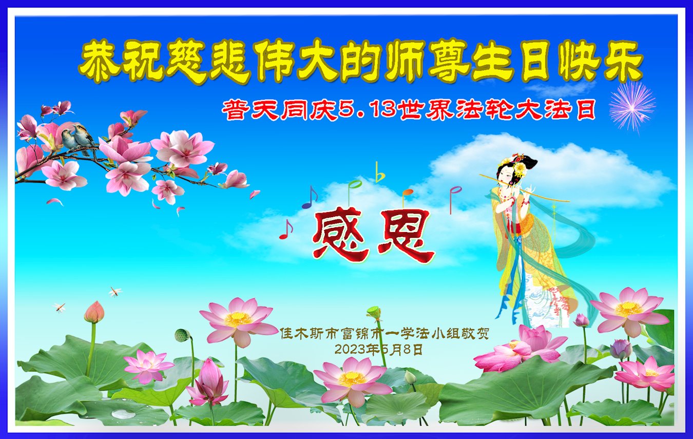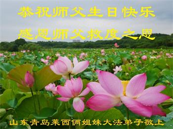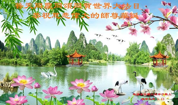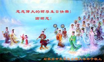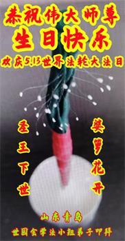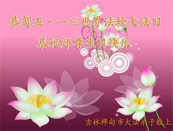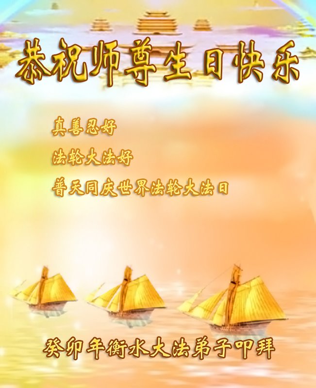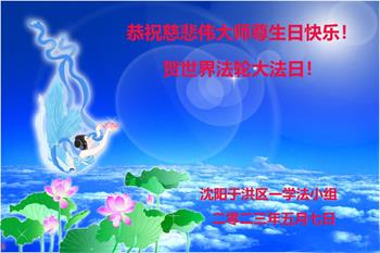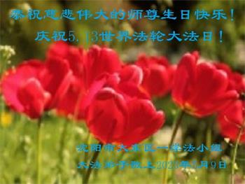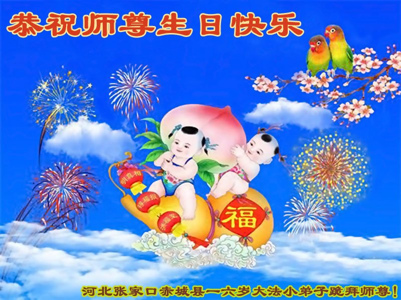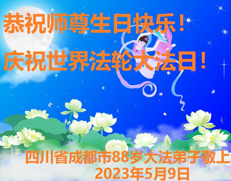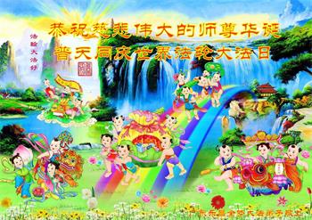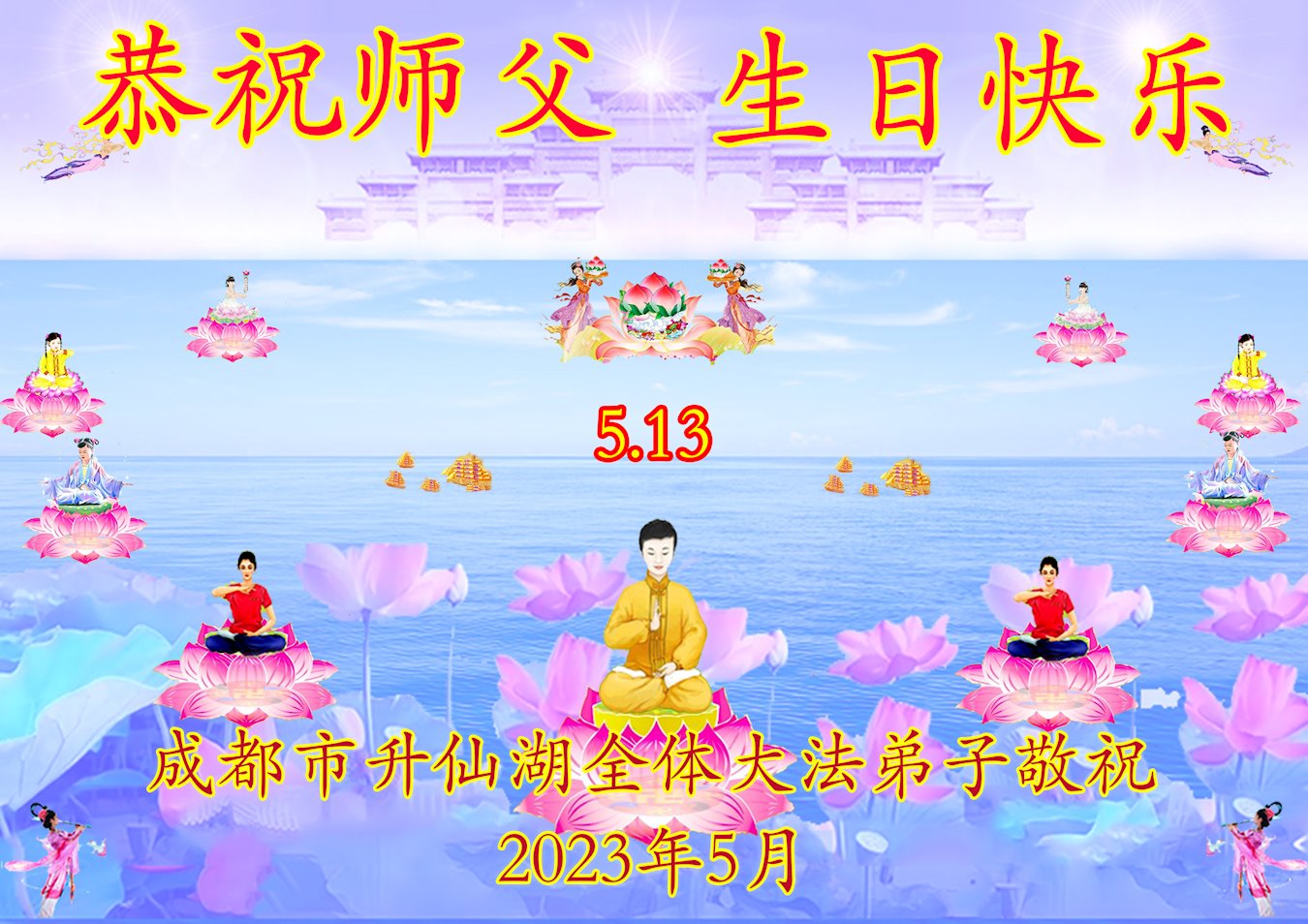 在我们恭祝师父生日和欢庆世界法轮大法日的喜庆时刻,我们心里充满了对师父的无限感恩!慈悲伟大的师父好!恭祝师父生日快乐!