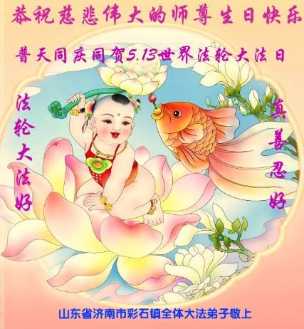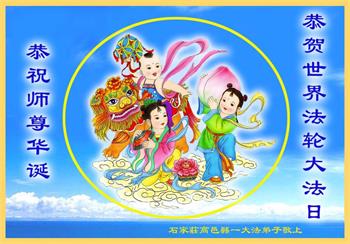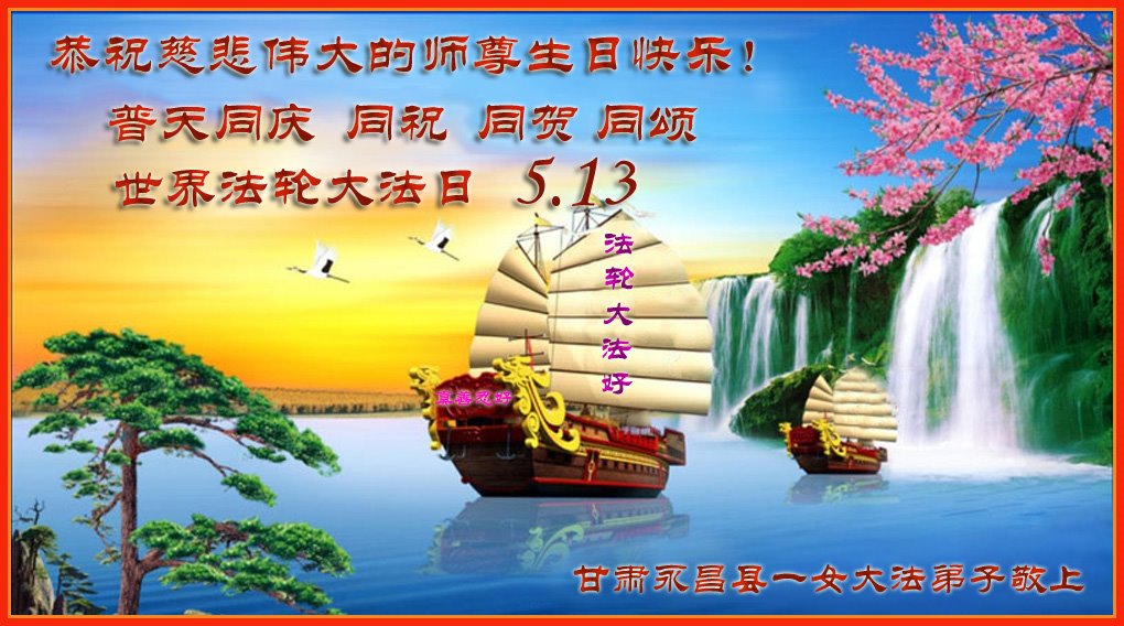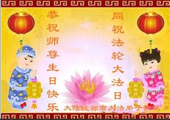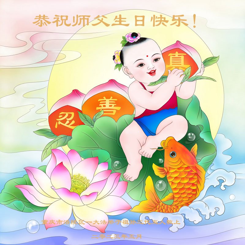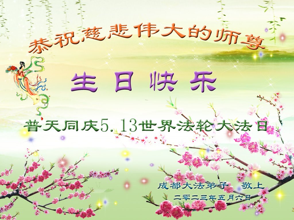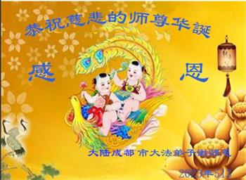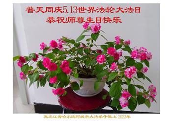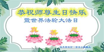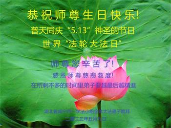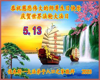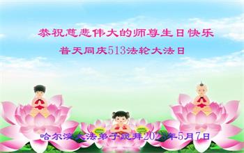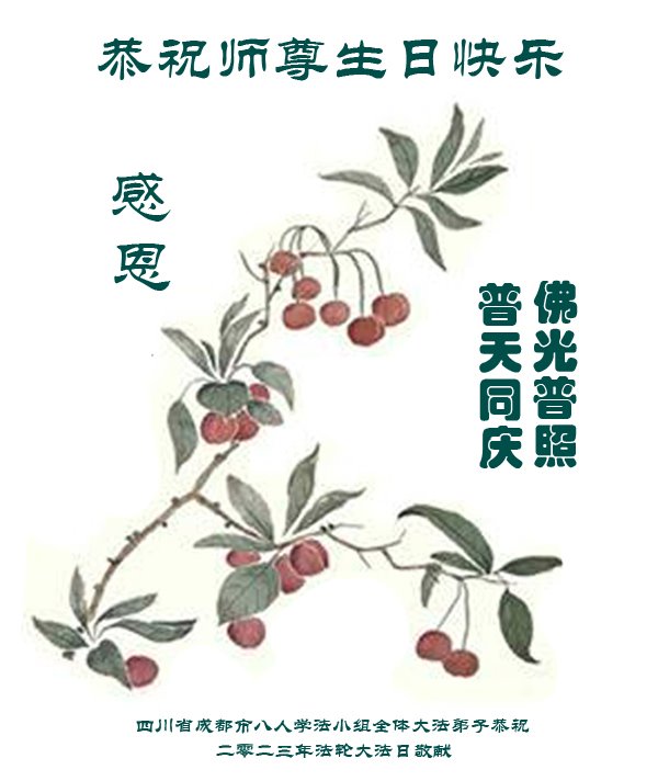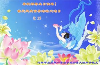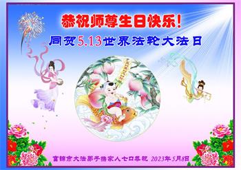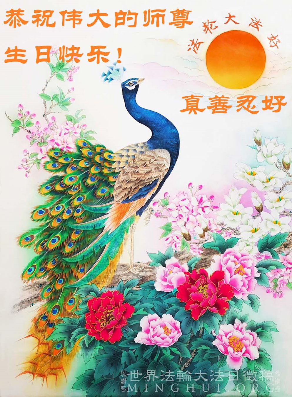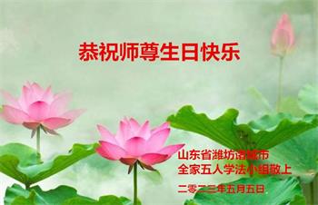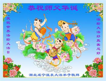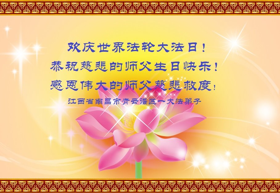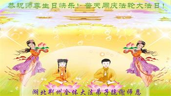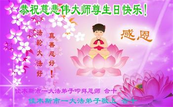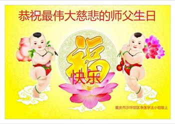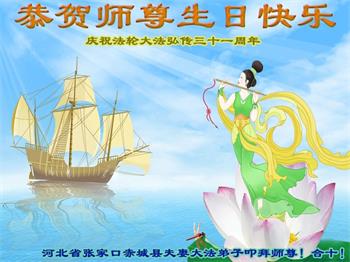 在我们恭祝师父生日和欢庆世界法轮大法日的喜庆时刻,我们心里充满了对师父的无限感恩!慈悲伟大的师父好!恭祝师父生日快乐!