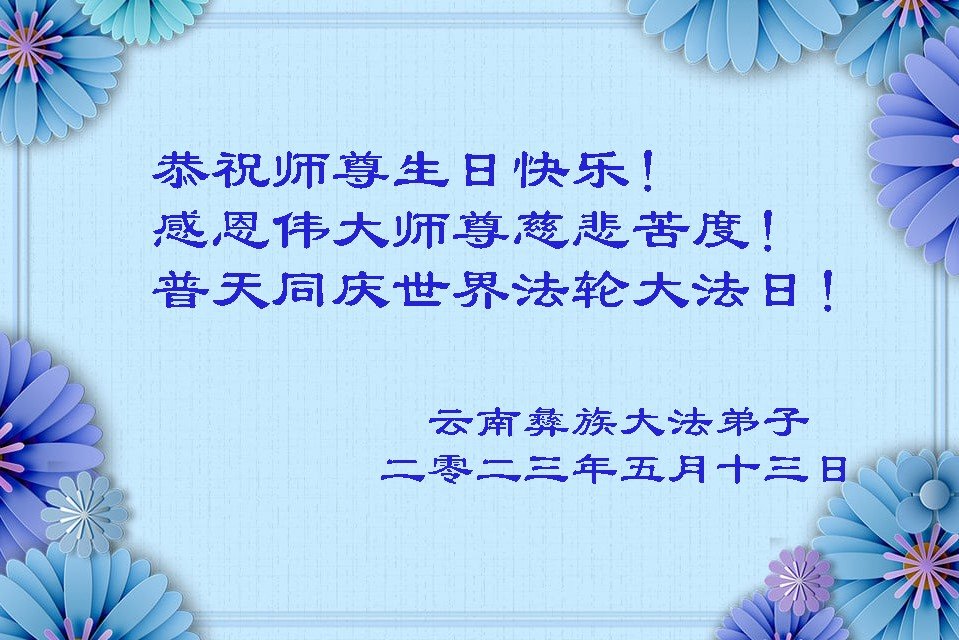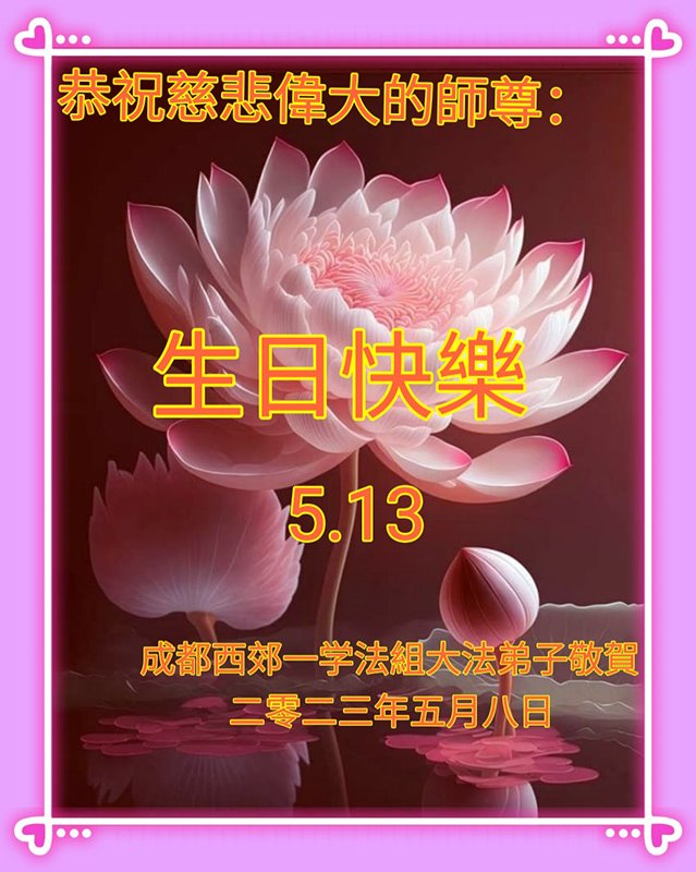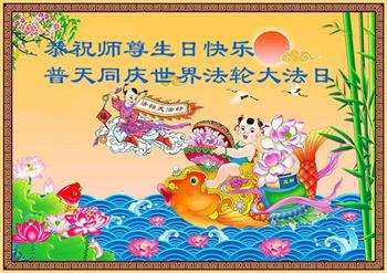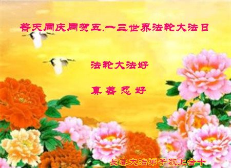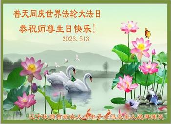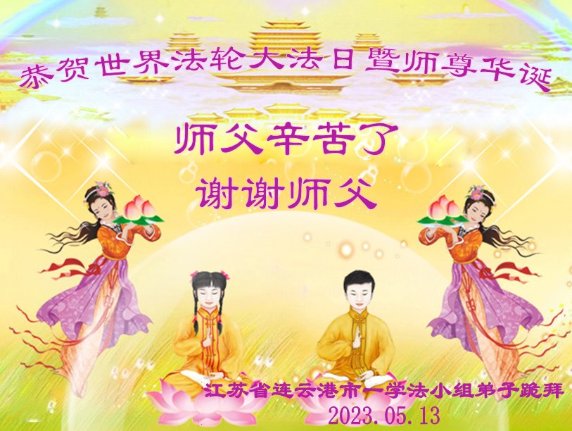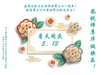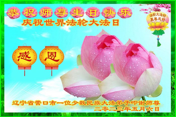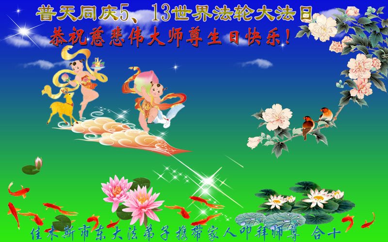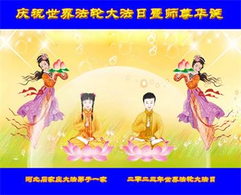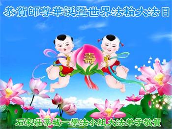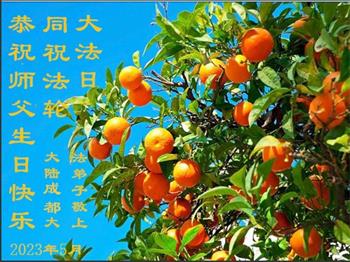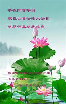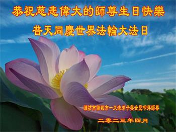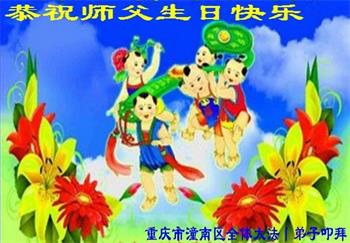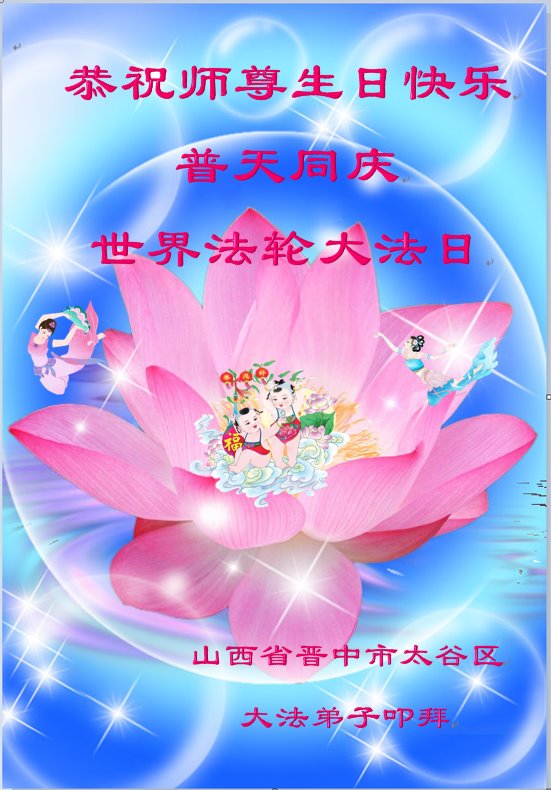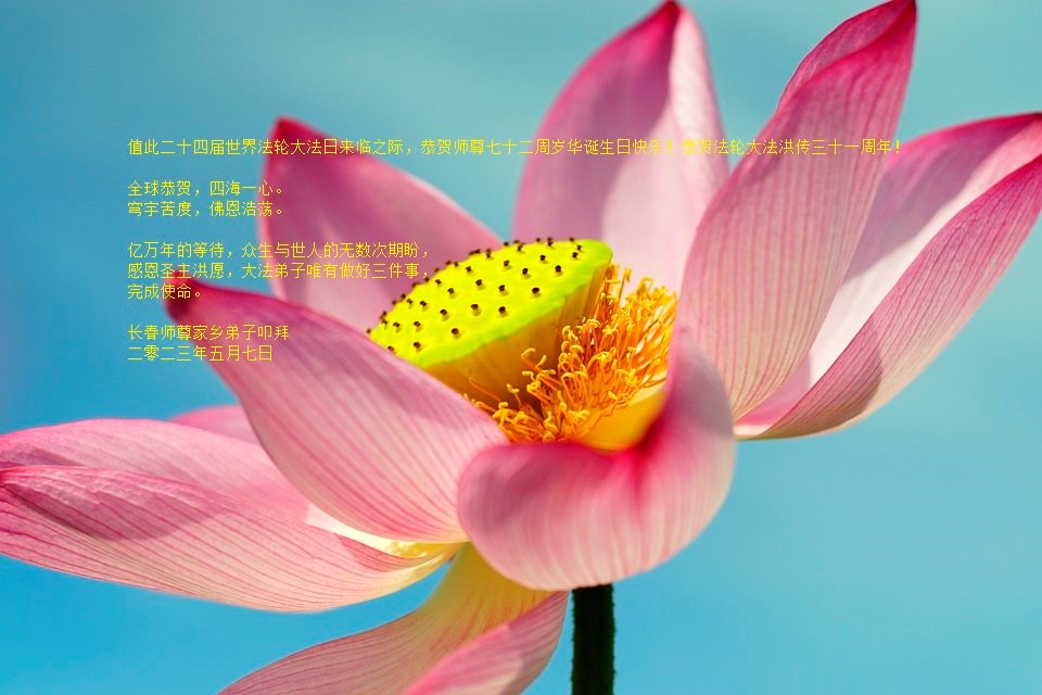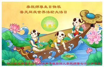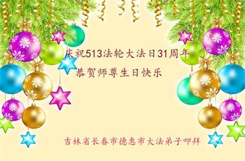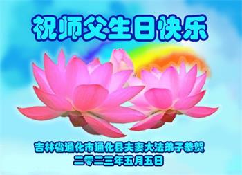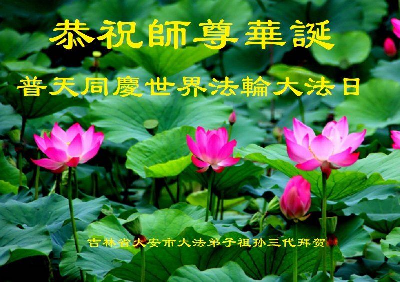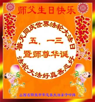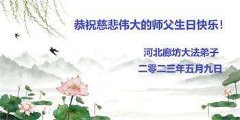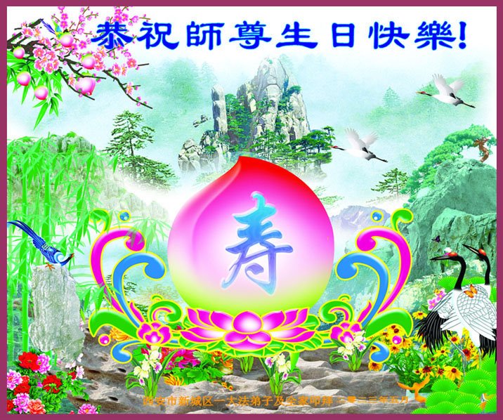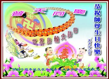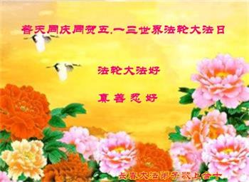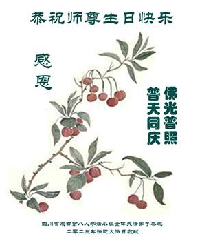 在我们恭祝师父生日和欢庆世界法轮大法日的喜庆时刻,我们心里充满了对师父的无限感恩!慈悲伟大的师父好!恭祝师父生日快乐!