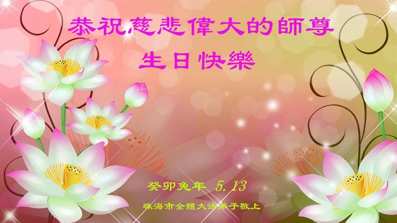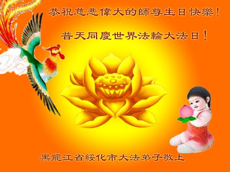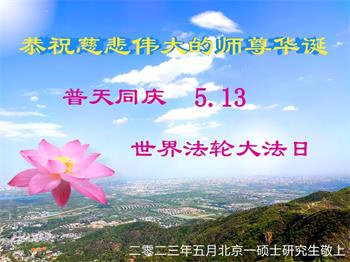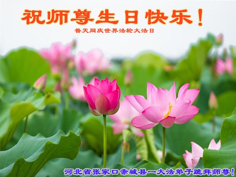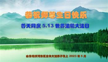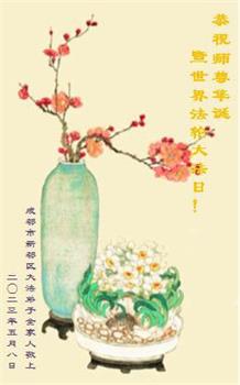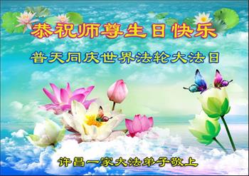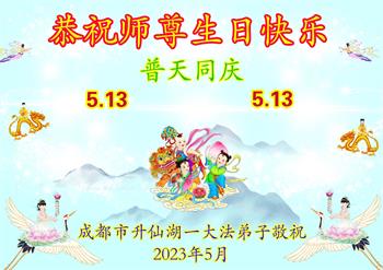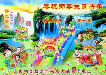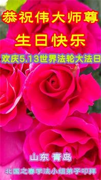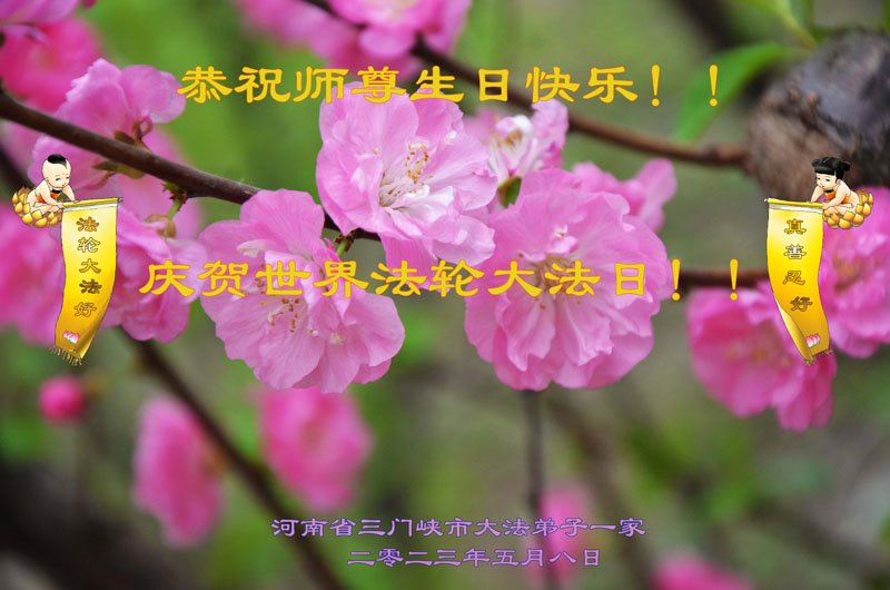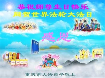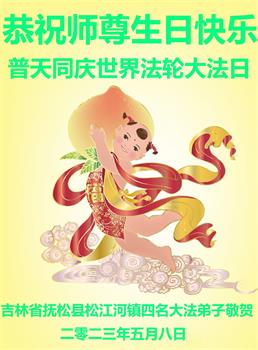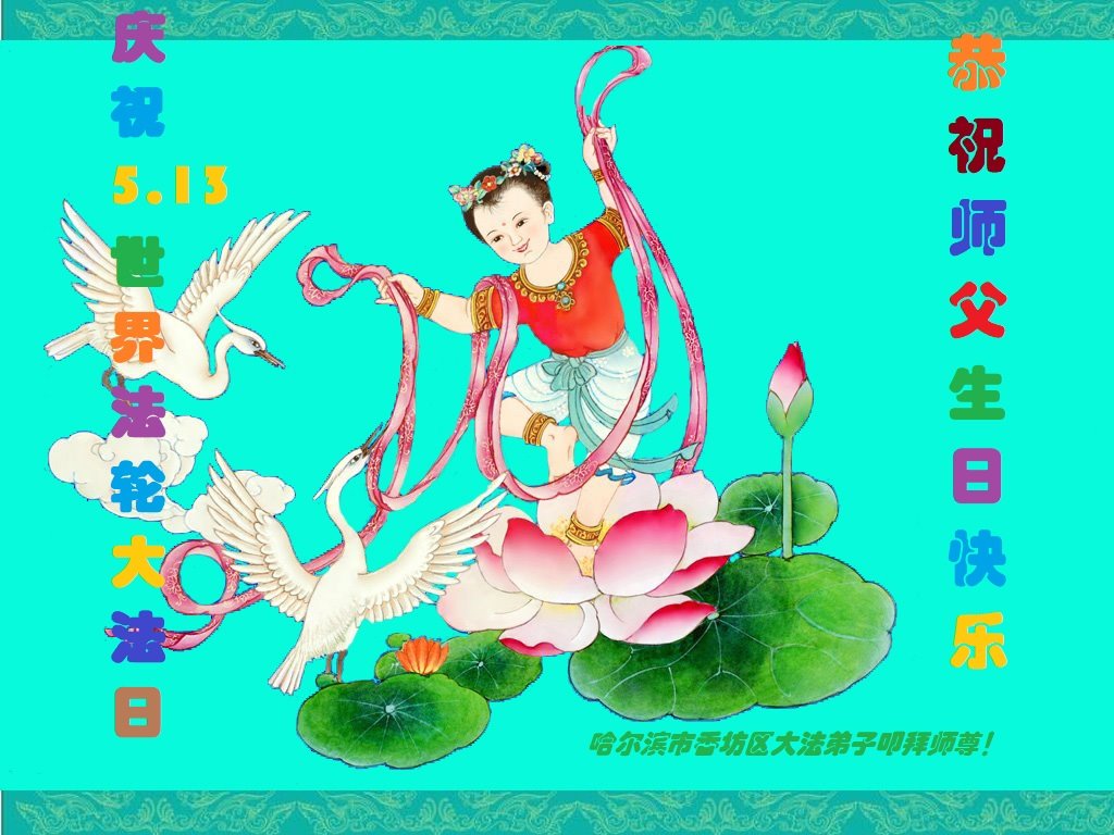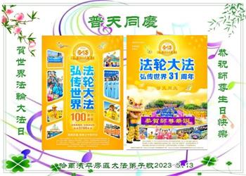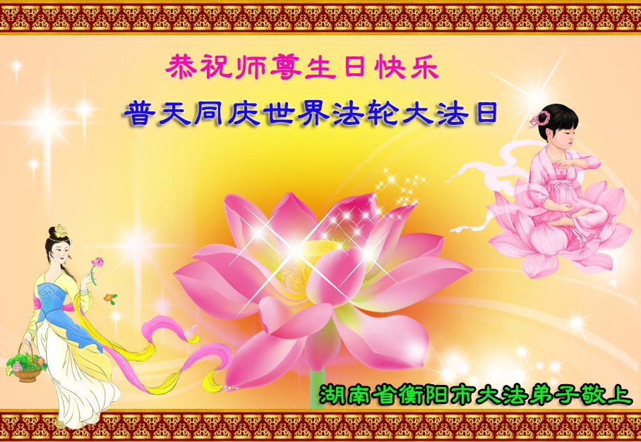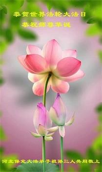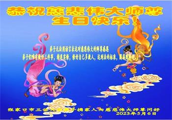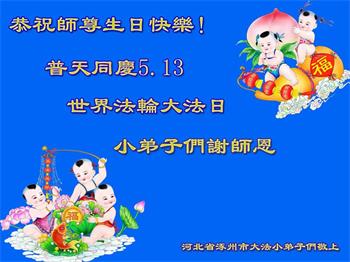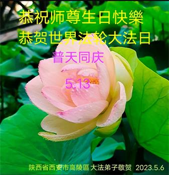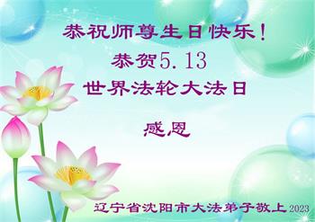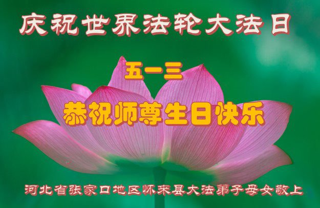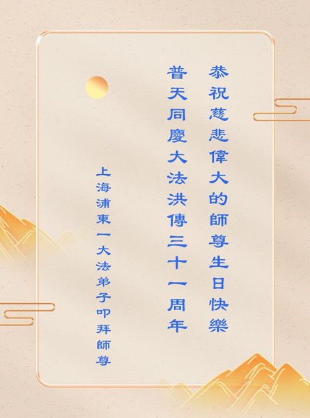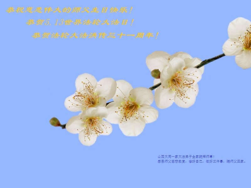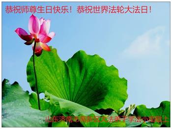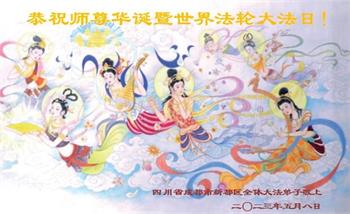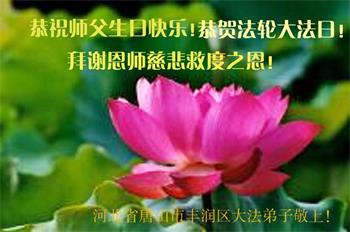 在我们恭祝师父生日和欢庆世界法轮大法日的喜庆时刻,我们心里充满了对师父的无限感恩!慈悲伟大的师父好!恭祝师父生日快乐!