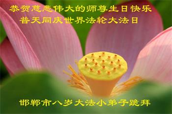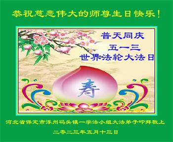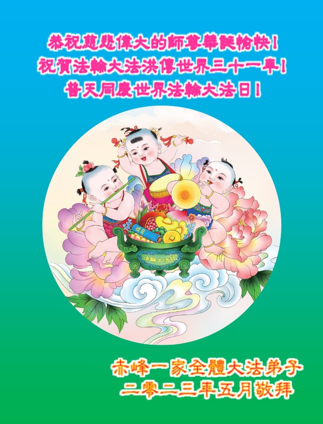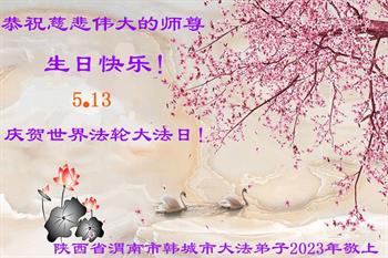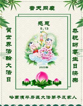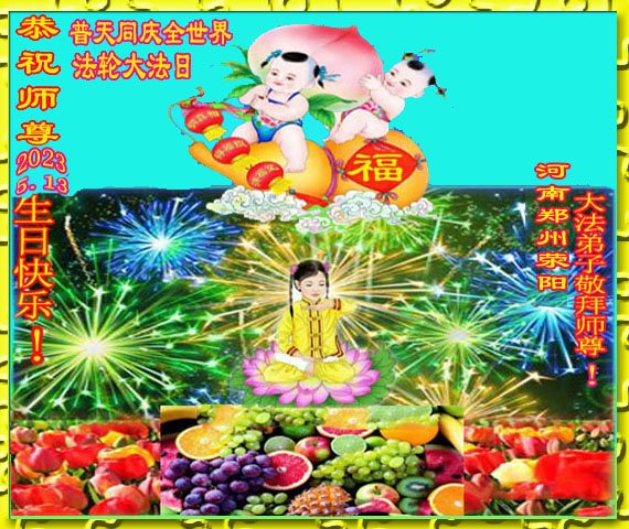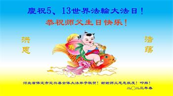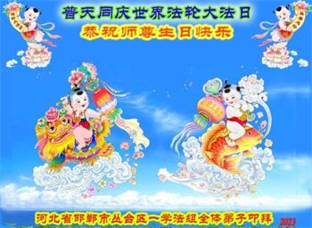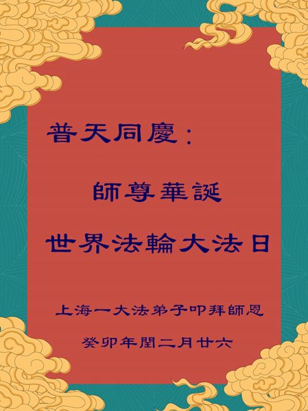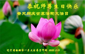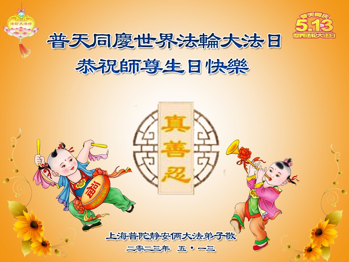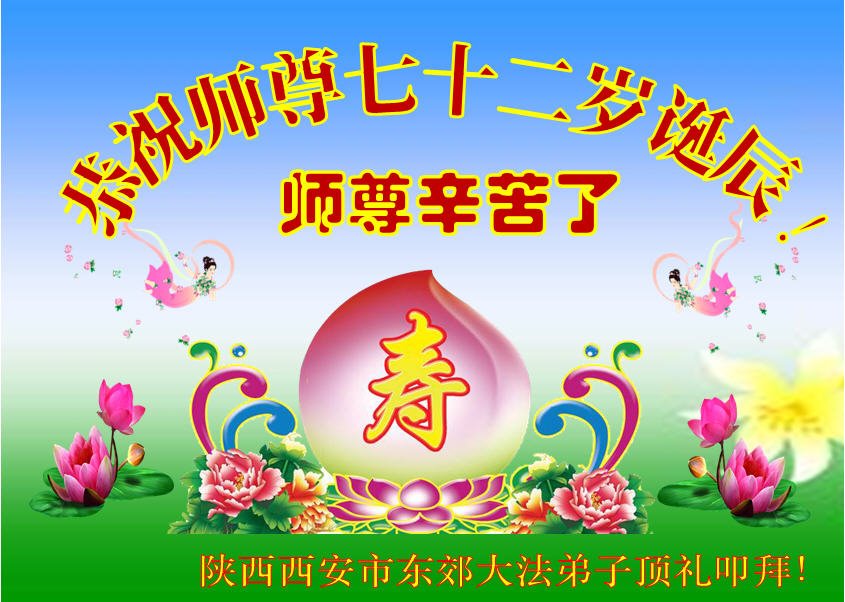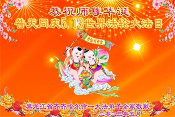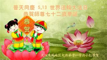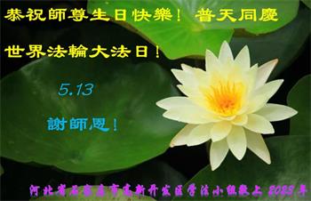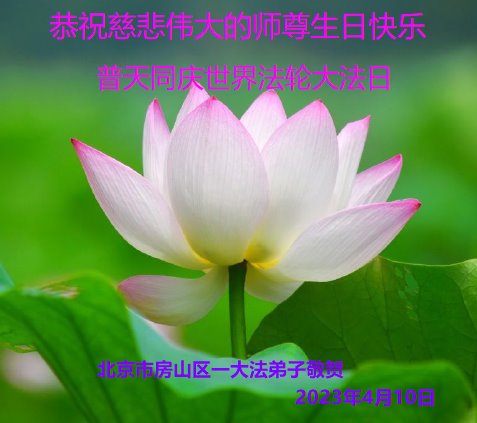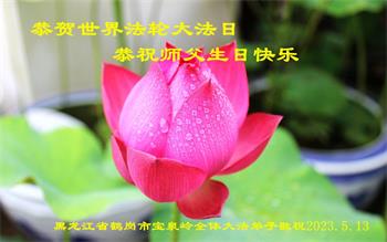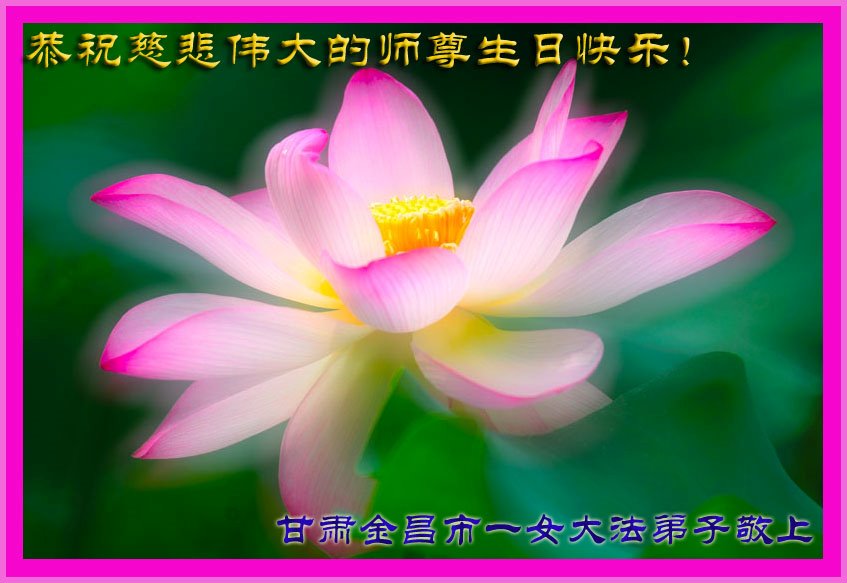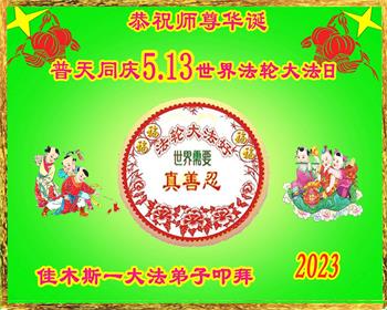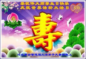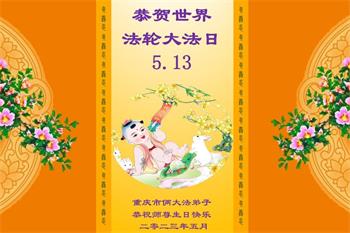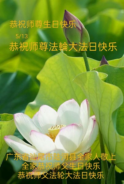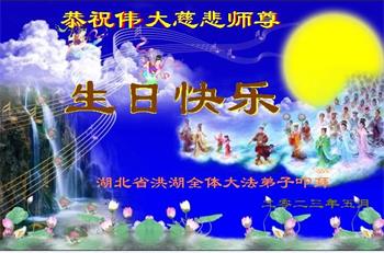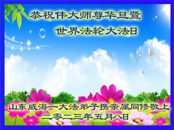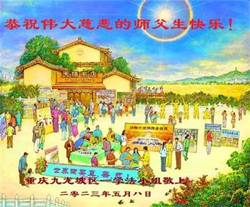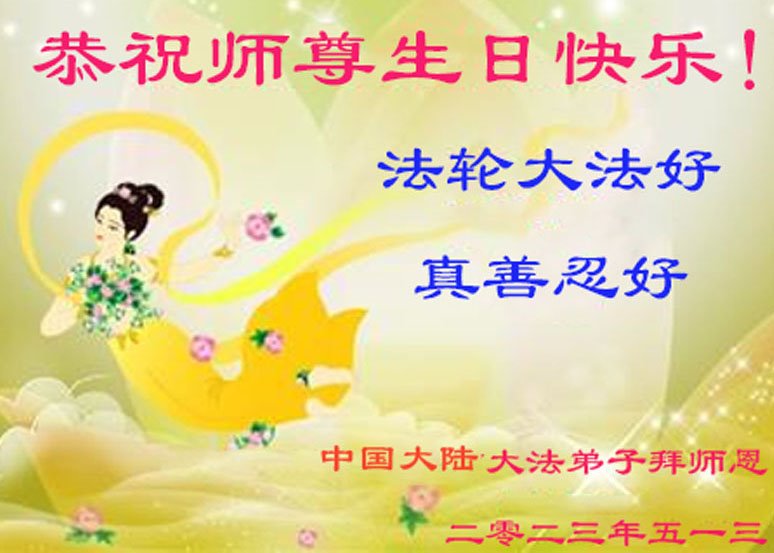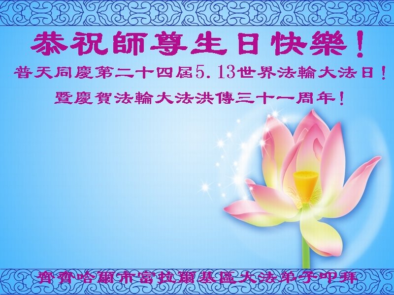 在我们恭祝师父生日和欢庆世界法轮大法日的喜庆时刻,我们心里充满了对师父的无限感恩!慈悲伟大的师父好!恭祝师父生日快乐!