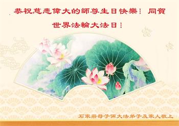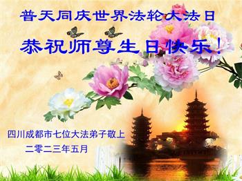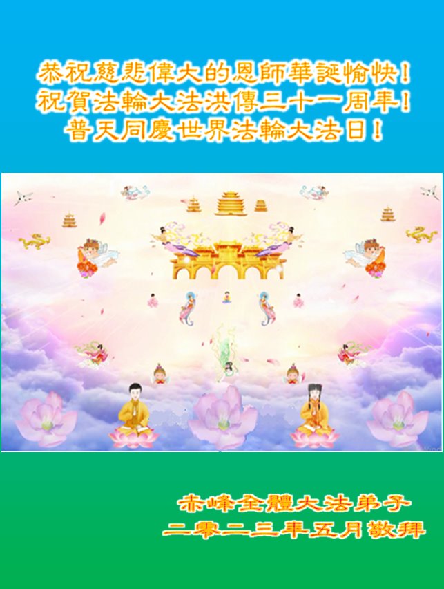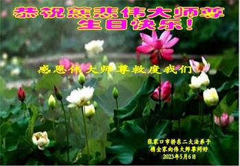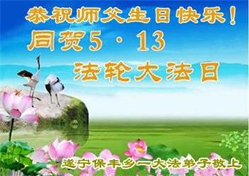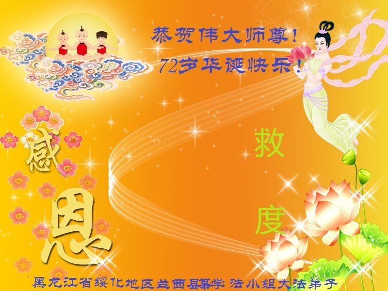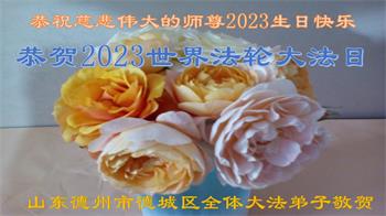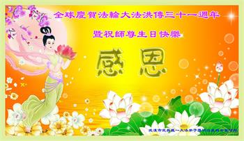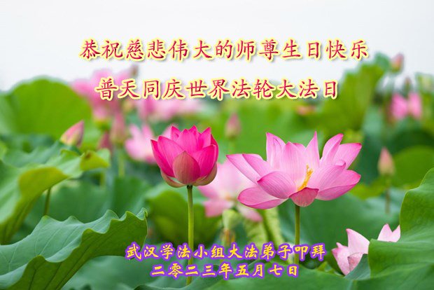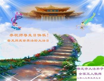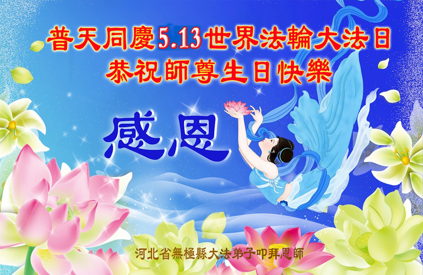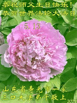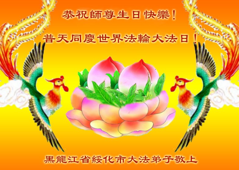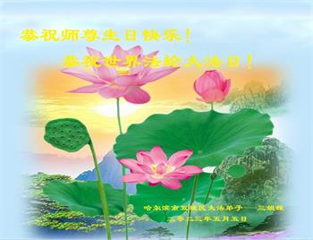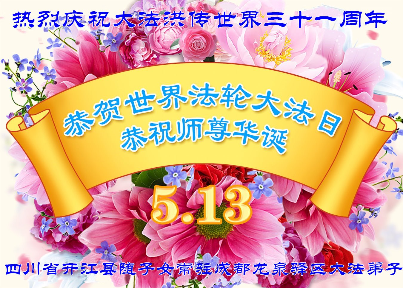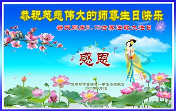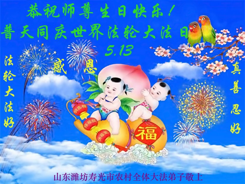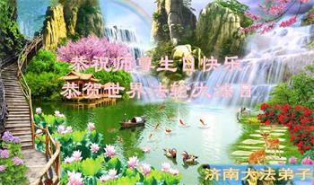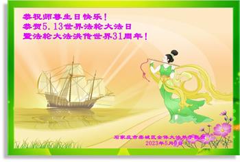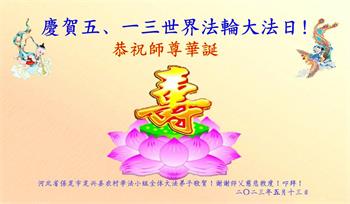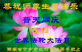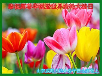 在我们恭祝师父生日和欢庆世界法轮大法日的喜庆时刻,我们心里充满了对师父的无限感恩!慈悲伟大的师父好!恭祝师父生日快乐!