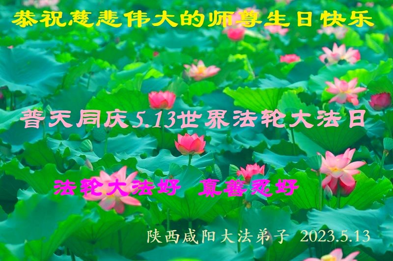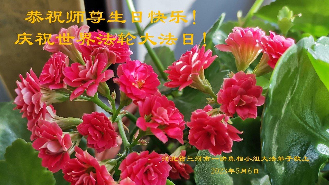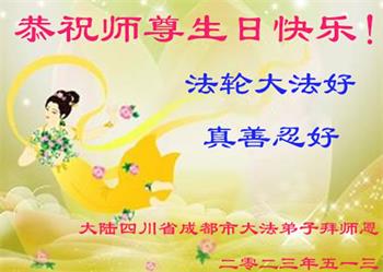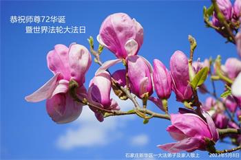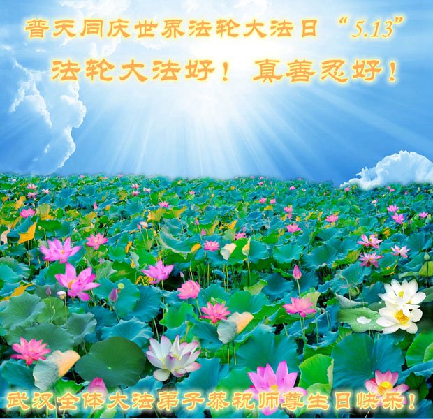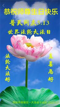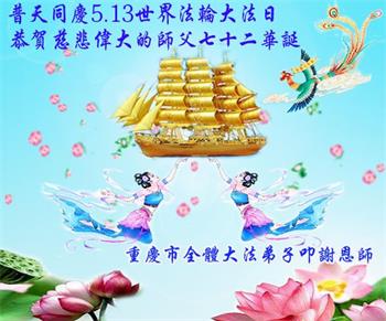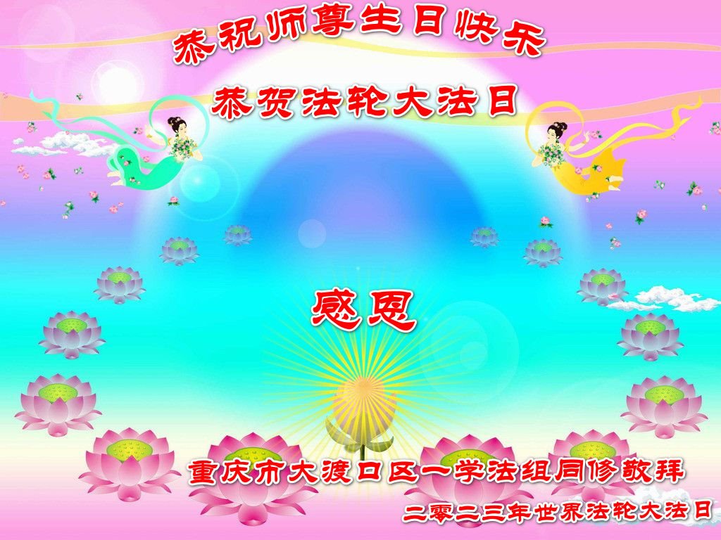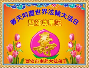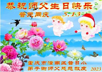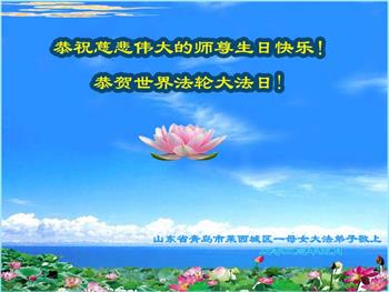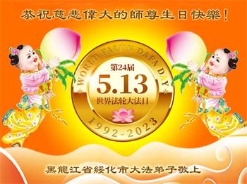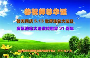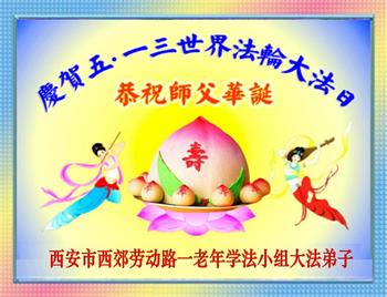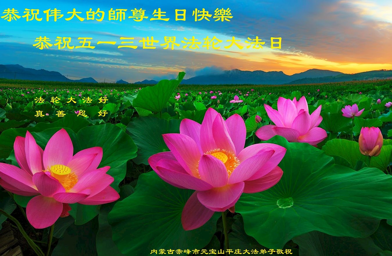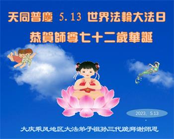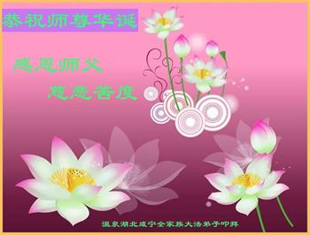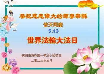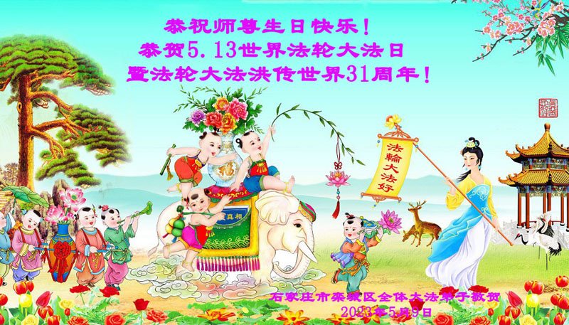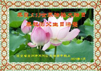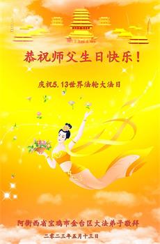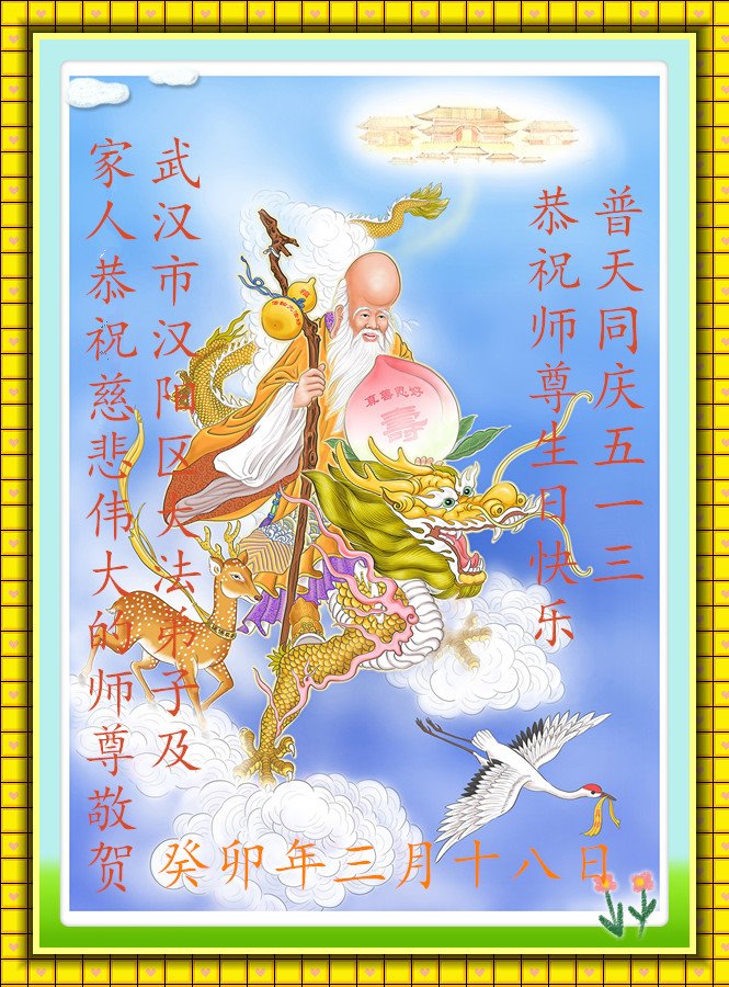 在我们恭祝师父生日和欢庆世界法轮大法日的喜庆时刻,我们心里充满了对师父的无限感恩!慈悲伟大的师父好!恭祝师父生日快乐!