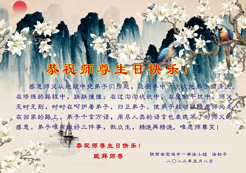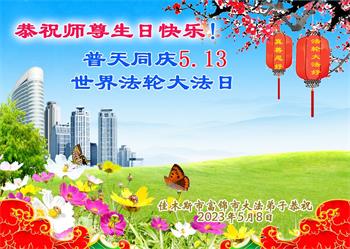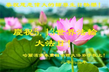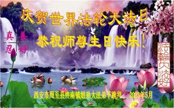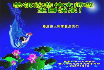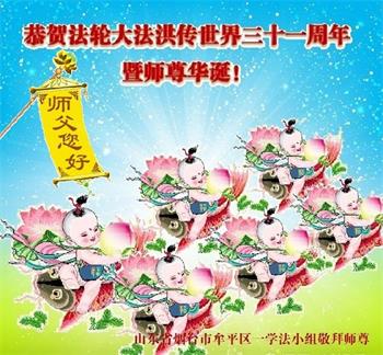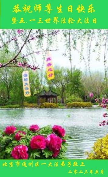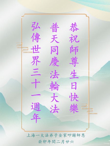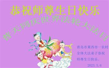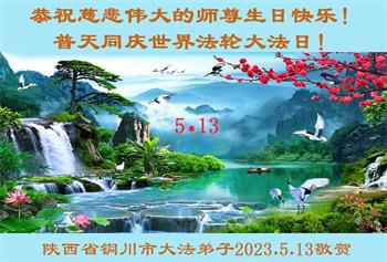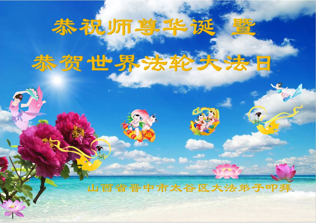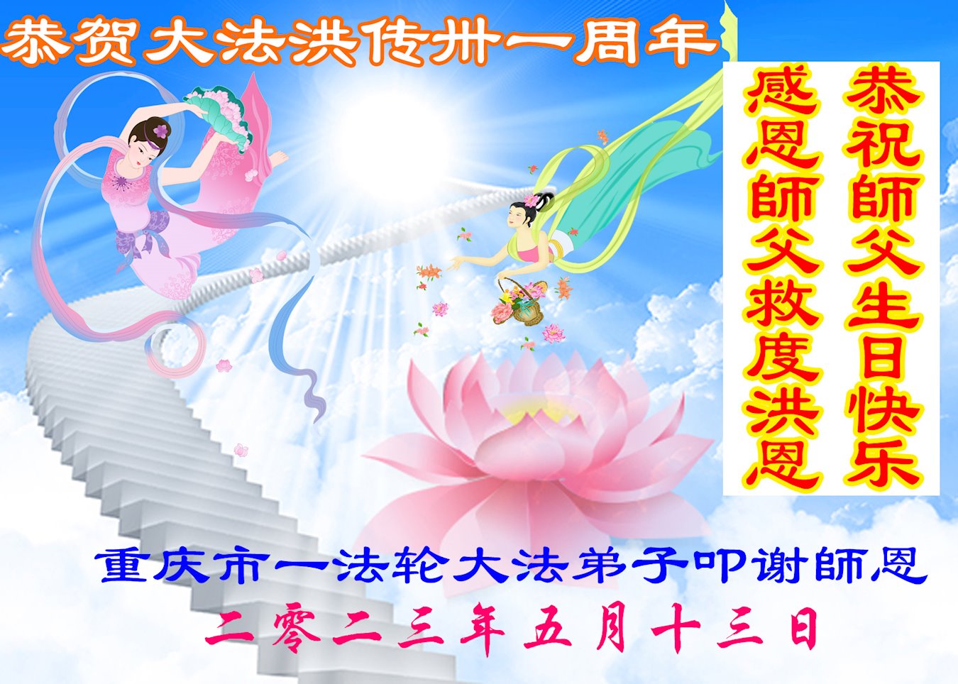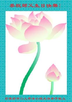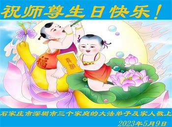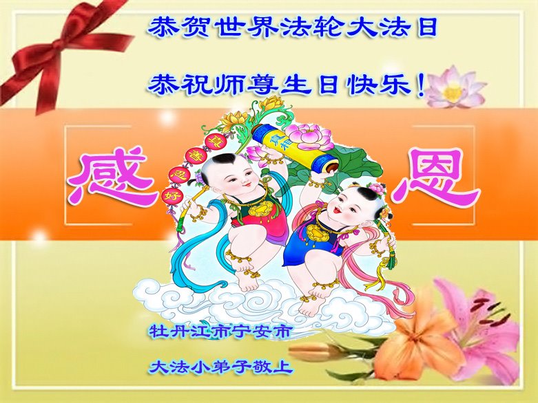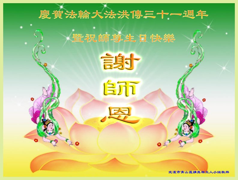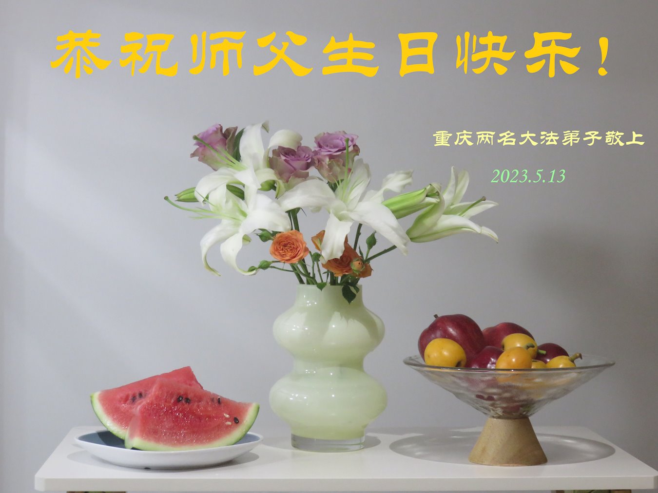 在我们恭祝师父生日和欢庆世界法轮大法日的喜庆时刻,我们心里充满了对师父的无限感恩!慈悲伟大的师父好!恭祝师父生日快乐!