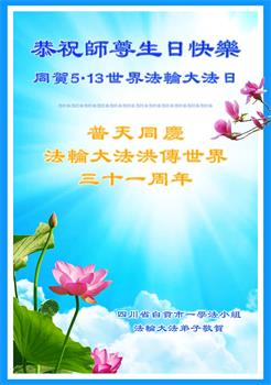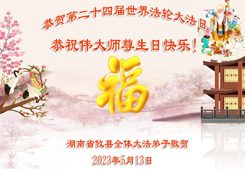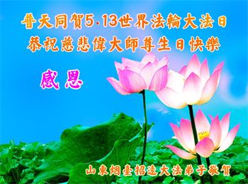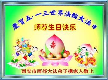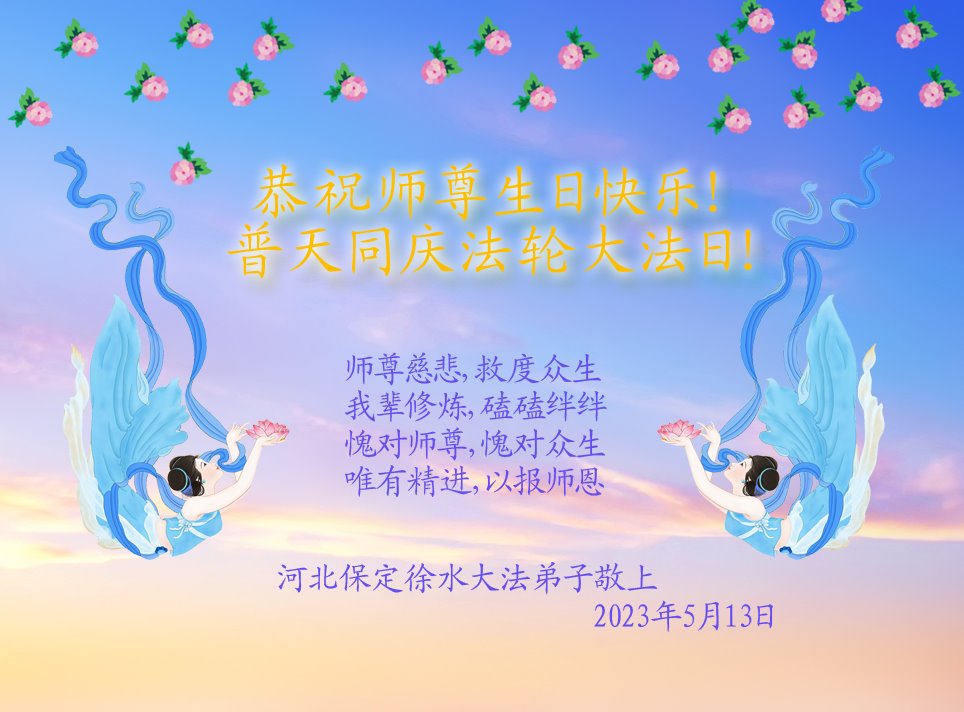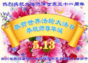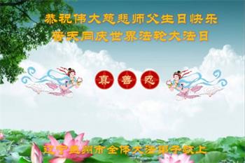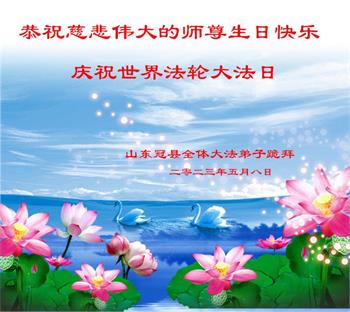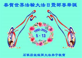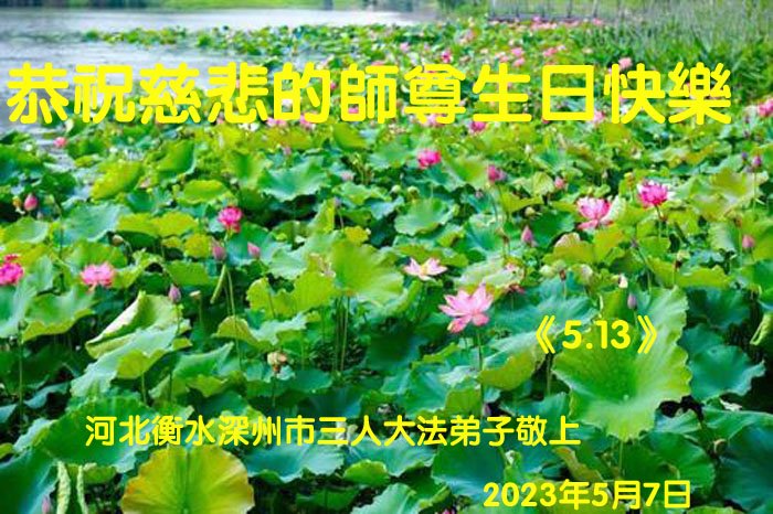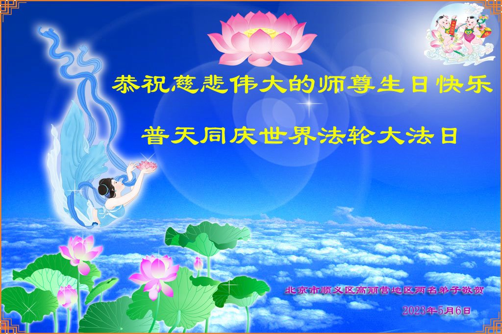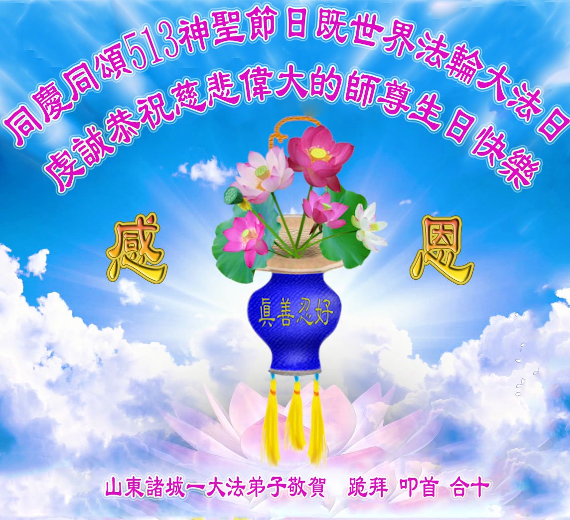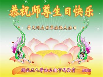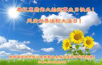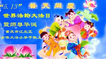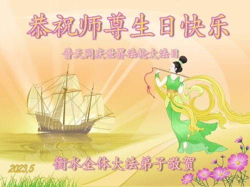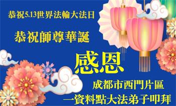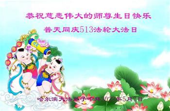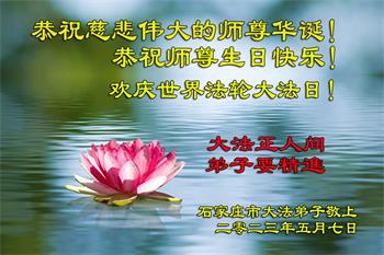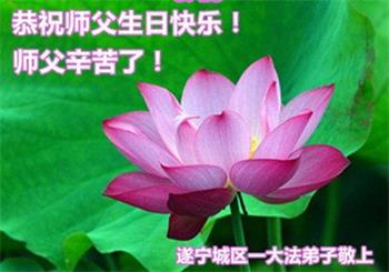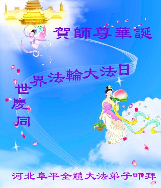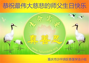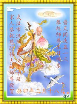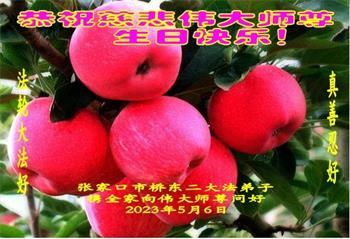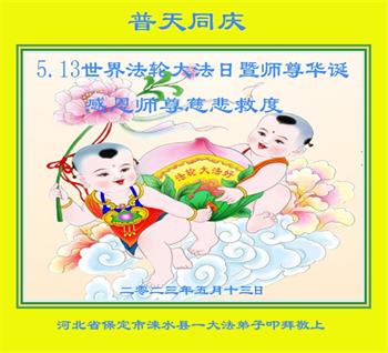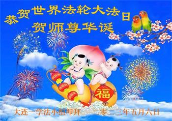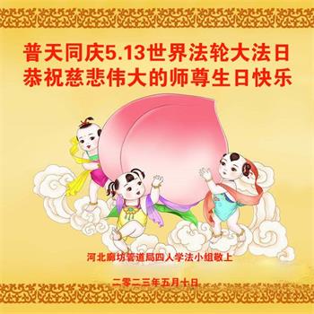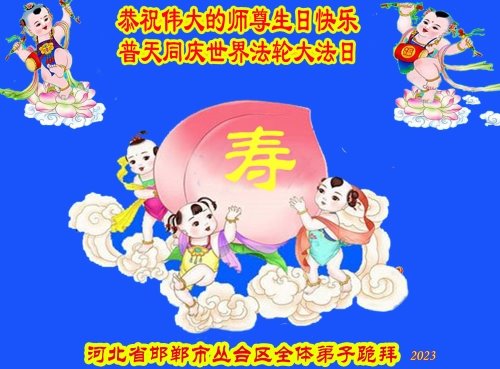 在我们恭祝师父生日和欢庆世界法轮大法日的喜庆时刻,我们心里充满了对师父的无限感恩!慈悲伟大的师父好!恭祝师父生日快乐!