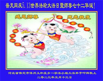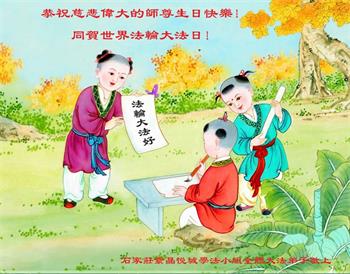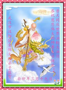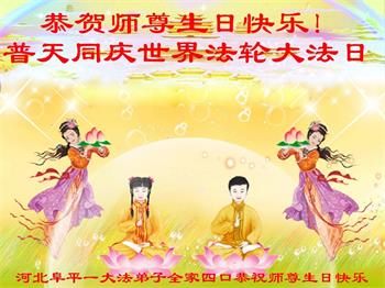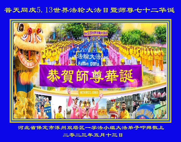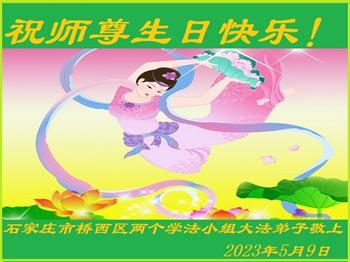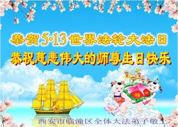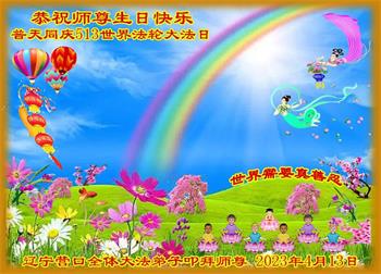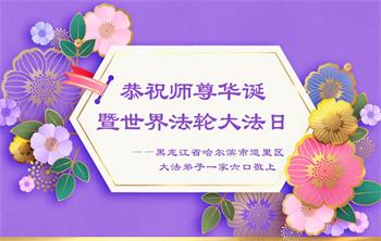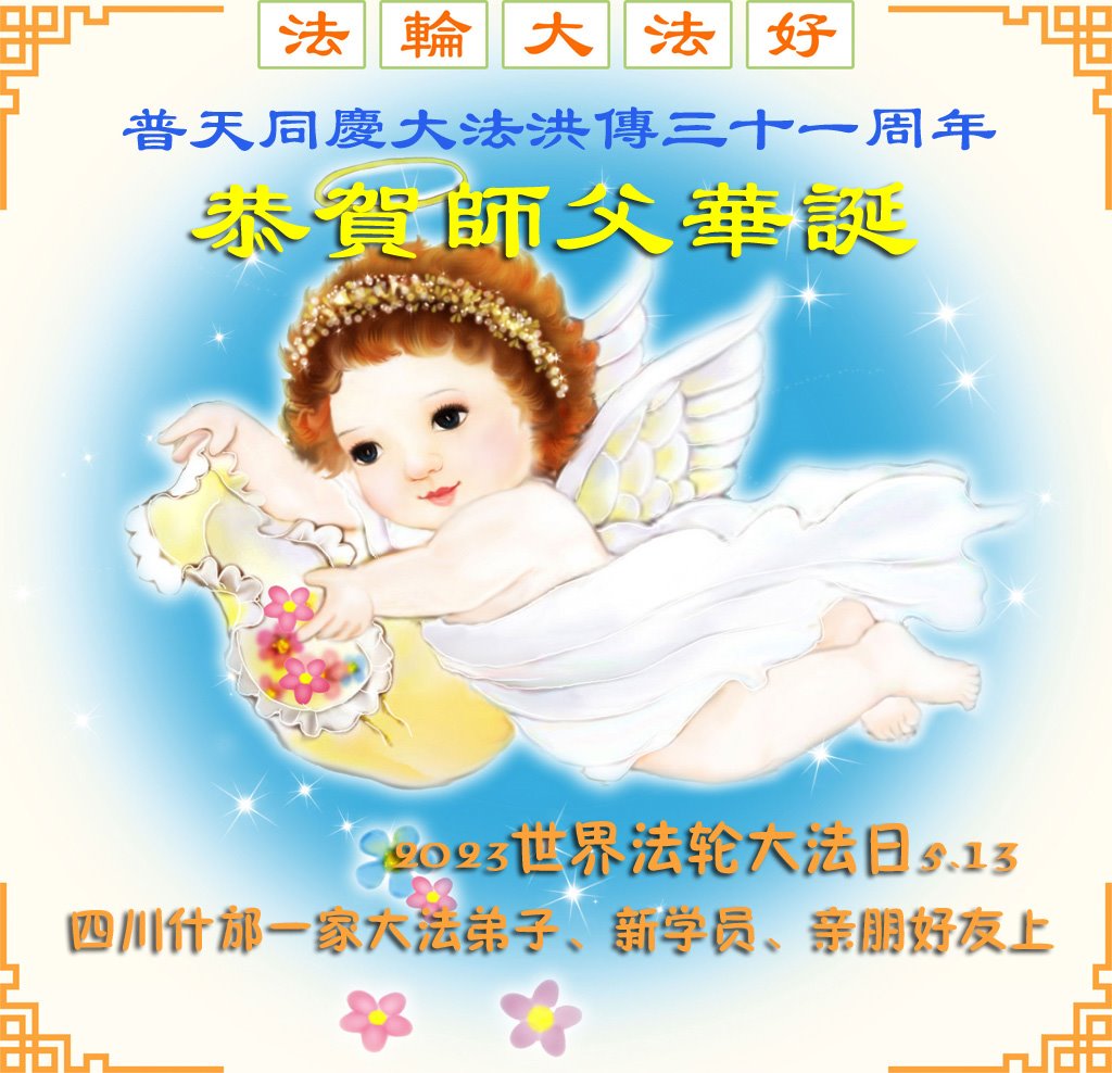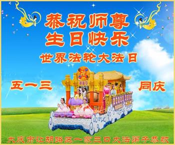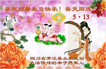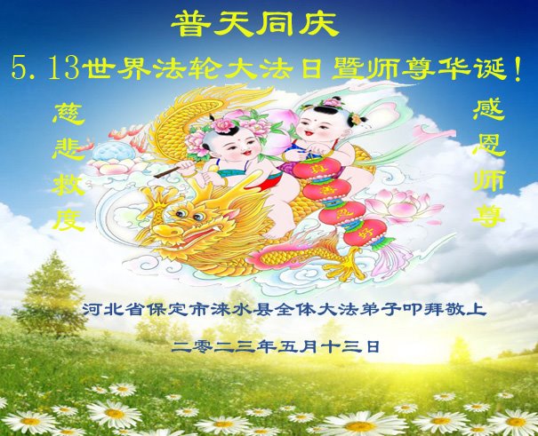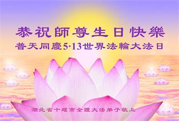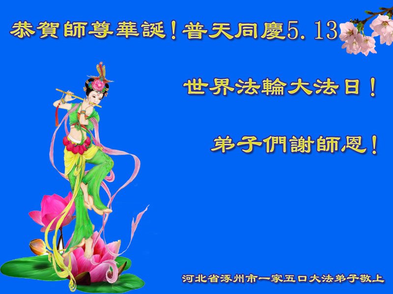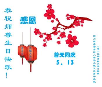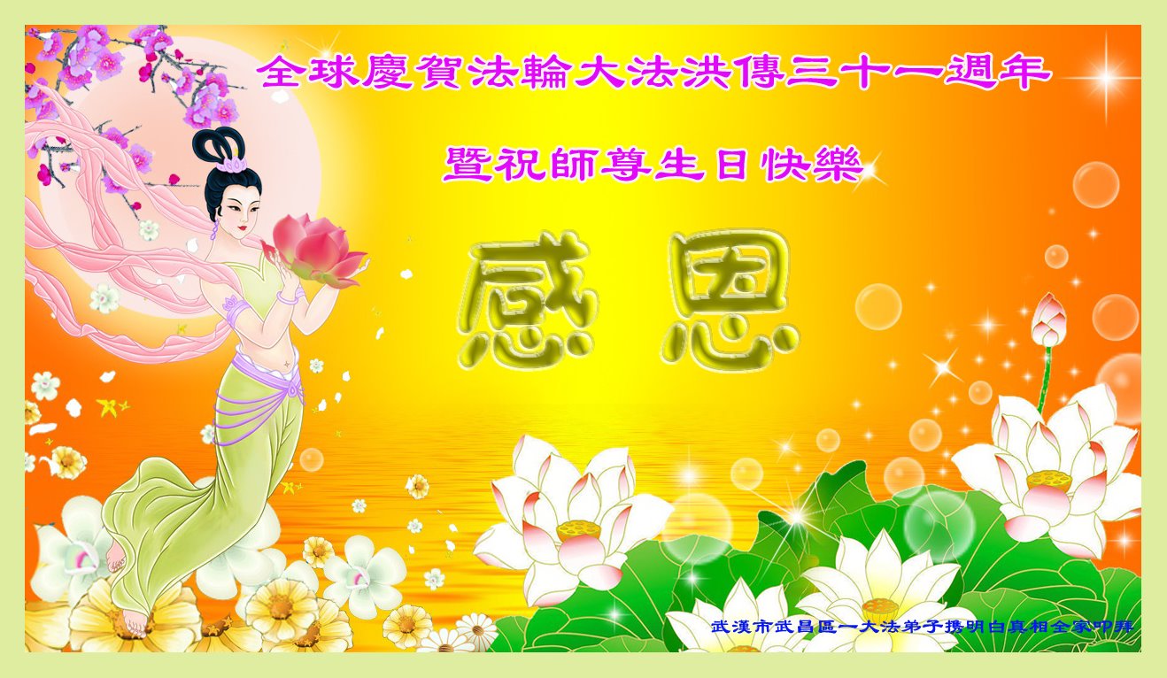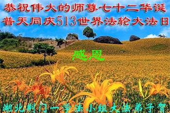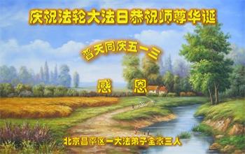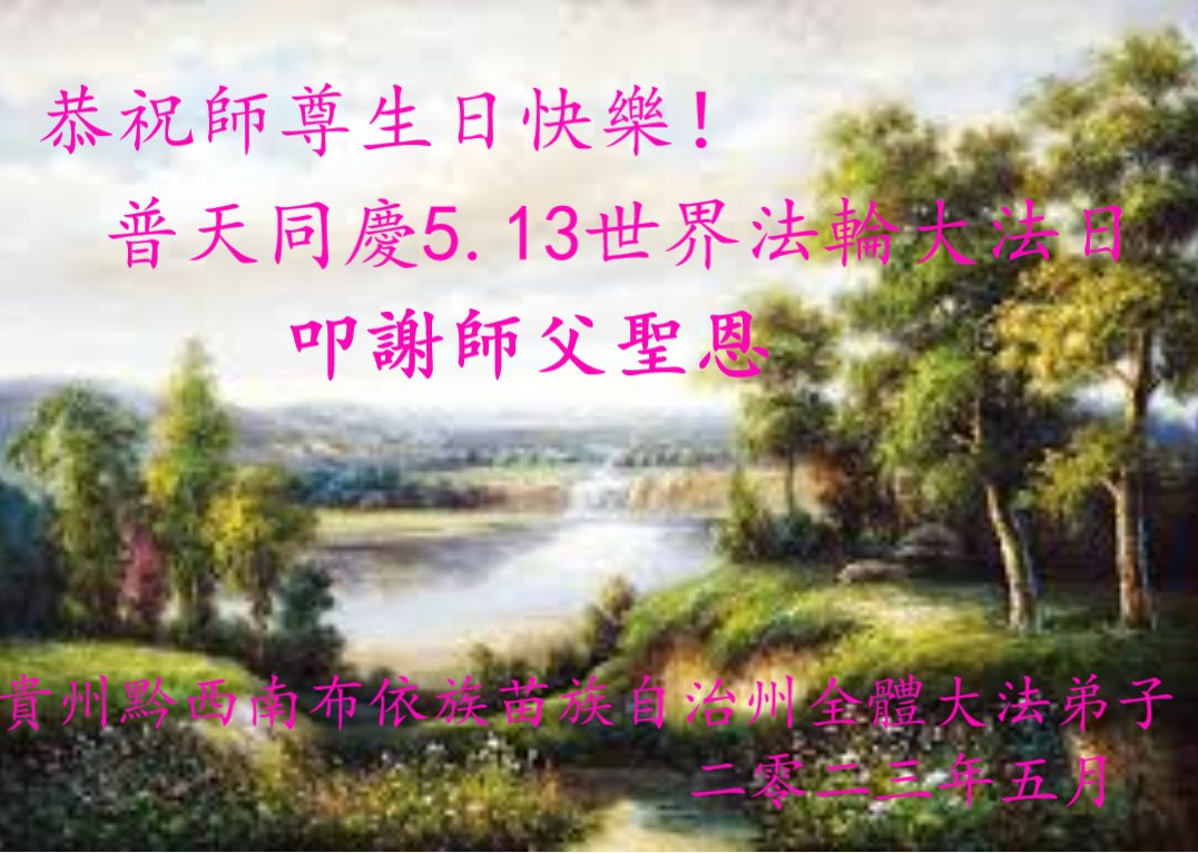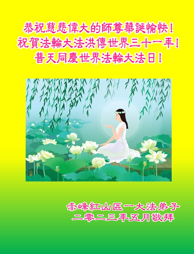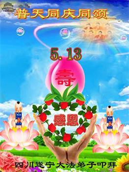 在我们恭祝师父生日和欢庆世界法轮大法日的喜庆时刻,我们心里充满了对师父的无限感恩!慈悲伟大的师父好!恭祝师父生日快乐!