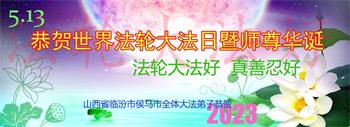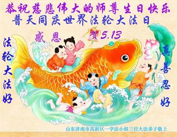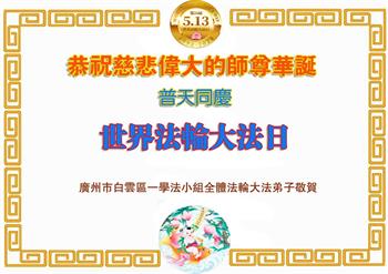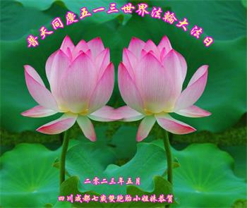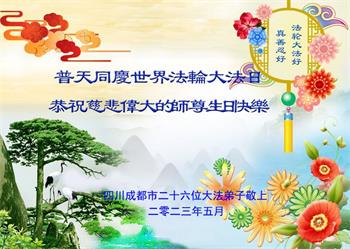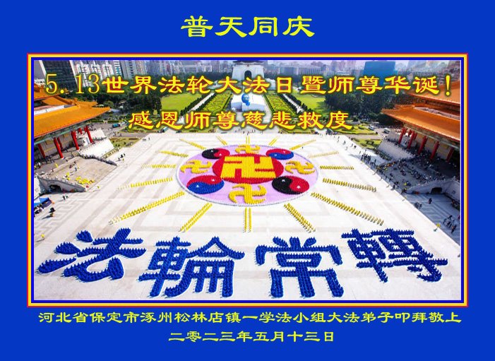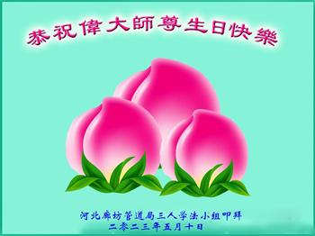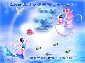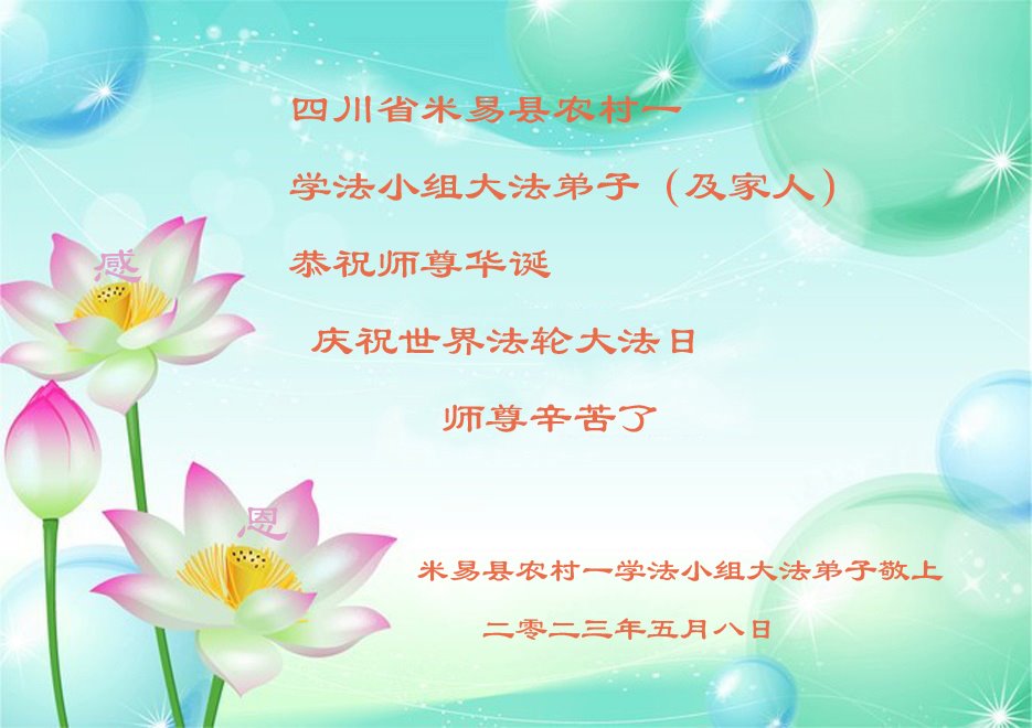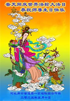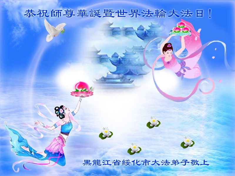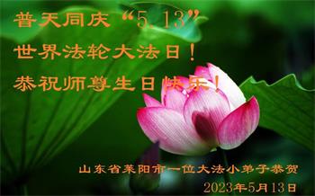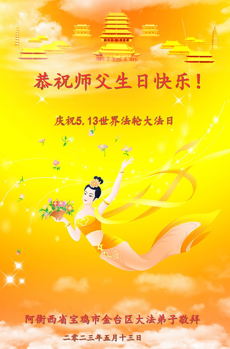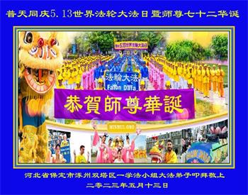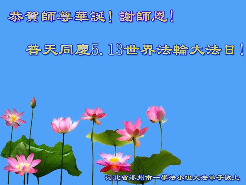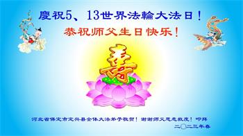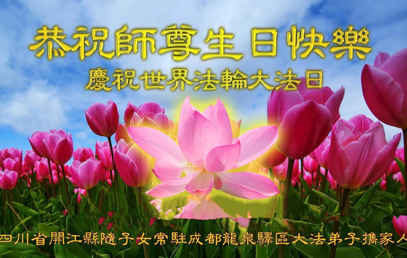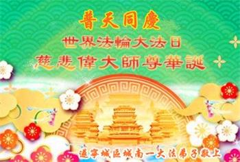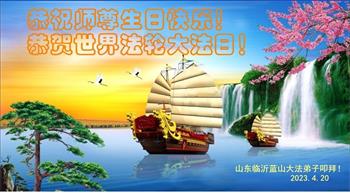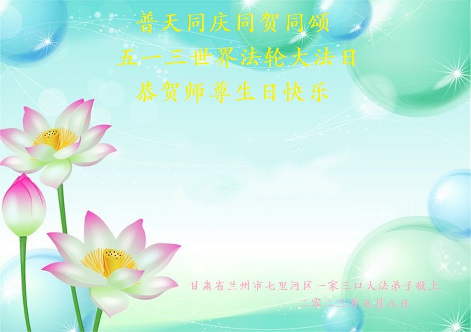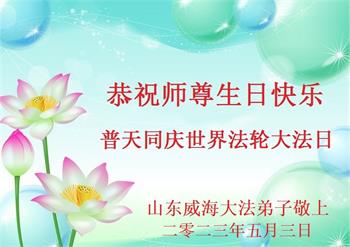 在我们恭祝师父生日和欢庆世界法轮大法日的喜庆时刻,我们心里充满了对师父的无限感恩!慈悲伟大的师父好!恭祝师父生日快乐!