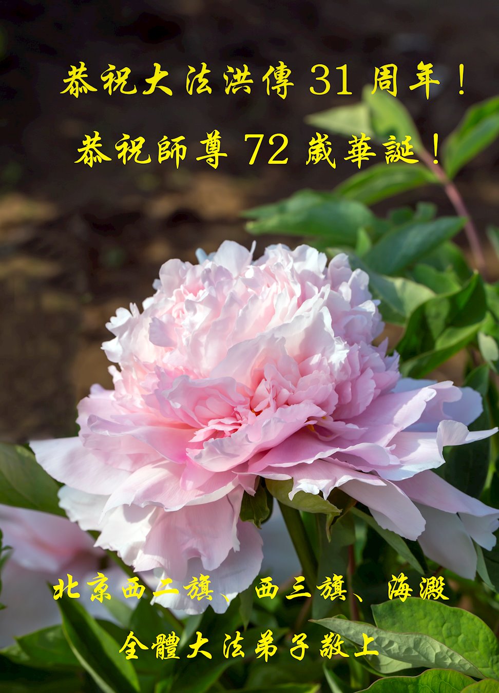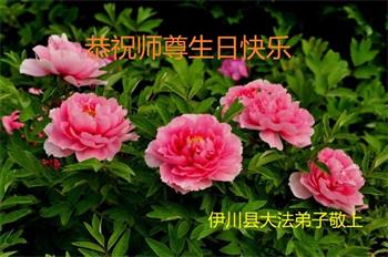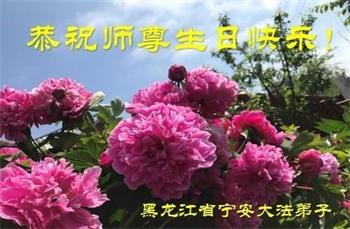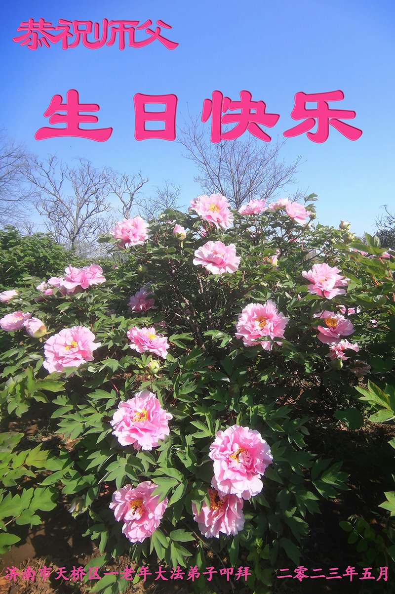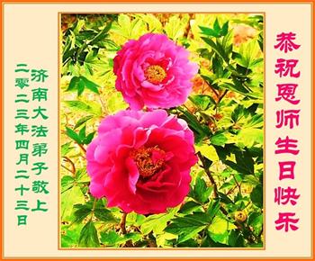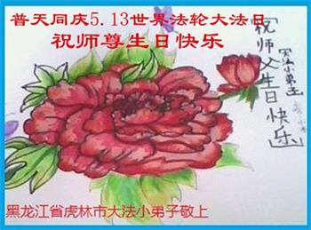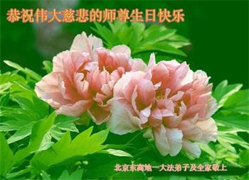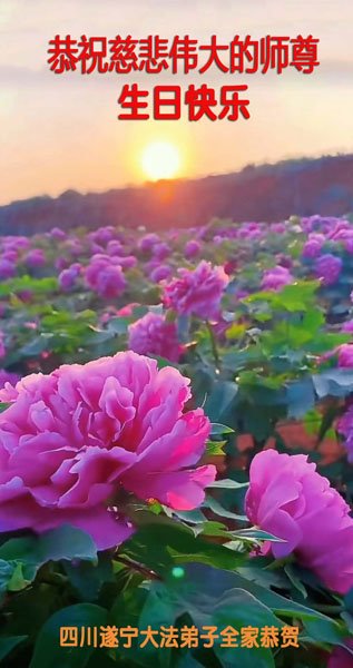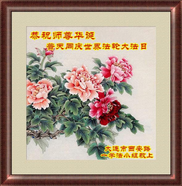 谨以盛开的数朵国色天香之牡丹表达弟子对师尊无限圣恩、无量慈悲的感恩!众大法弟子仰望师尊,恭祝师尊生日快乐!