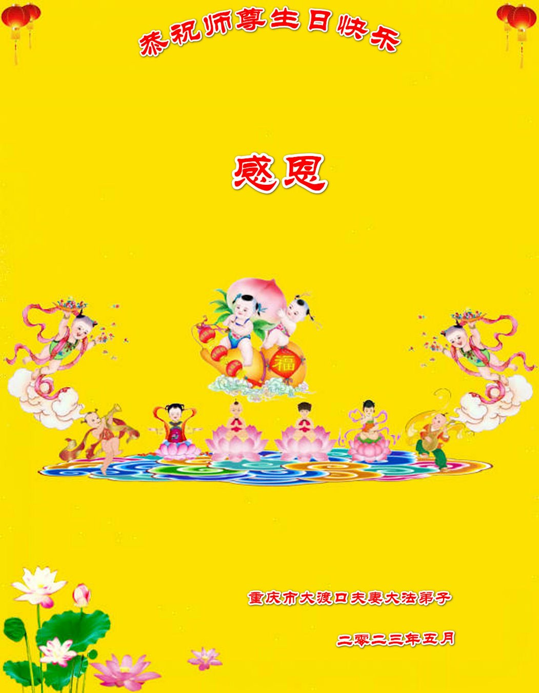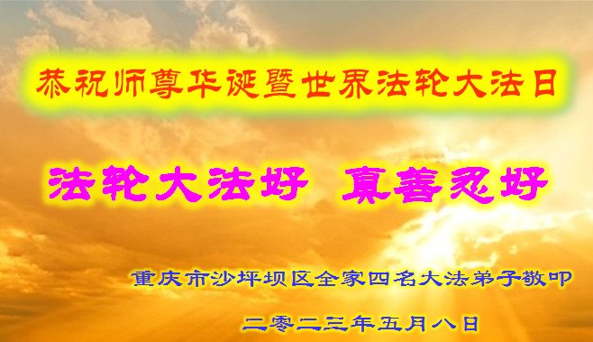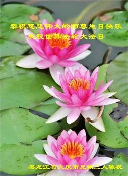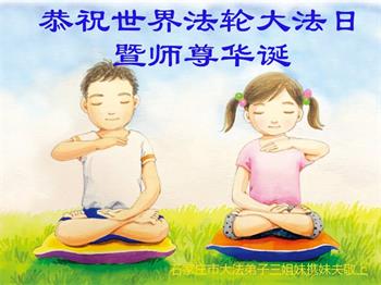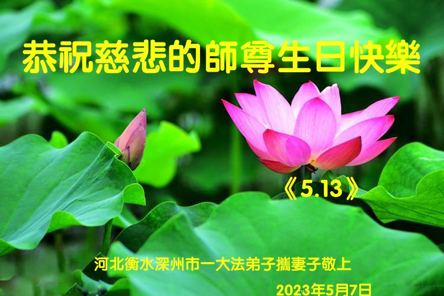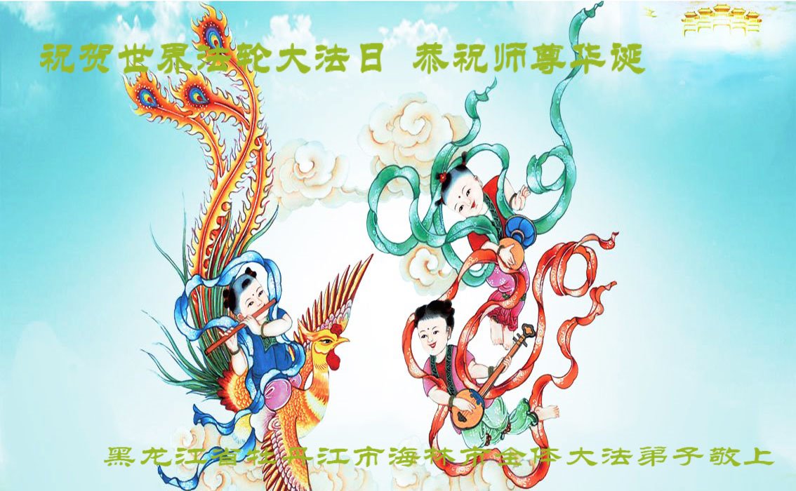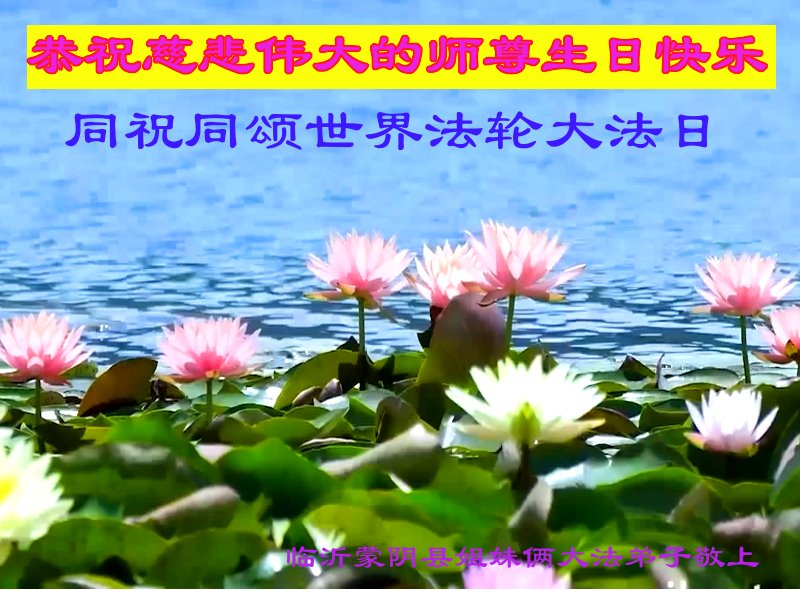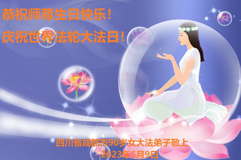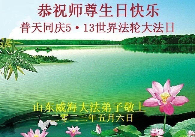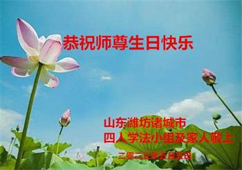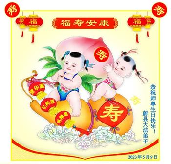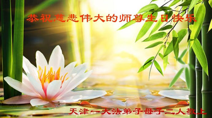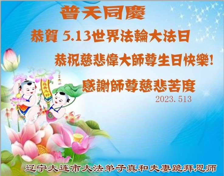 在普天同庆世界法轮大法日的殊胜日子里,我们俩老年大法弟子真诚的问声:师尊好!恭祝师尊生日快乐!感恩师尊慈悲救度!