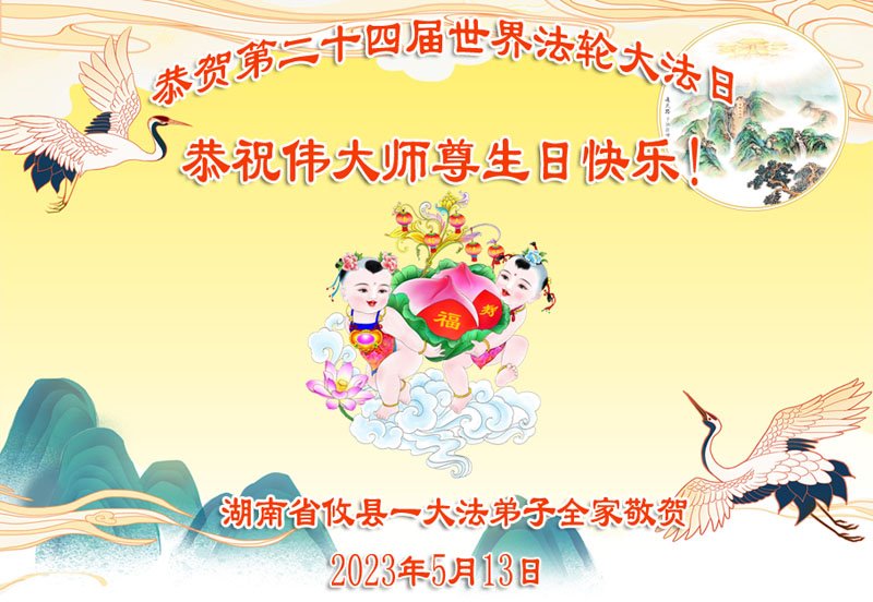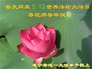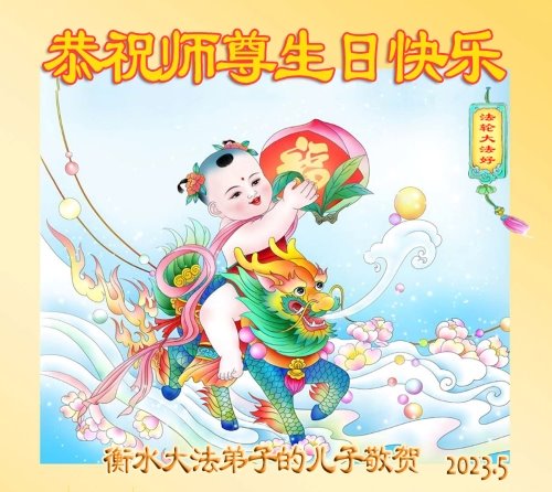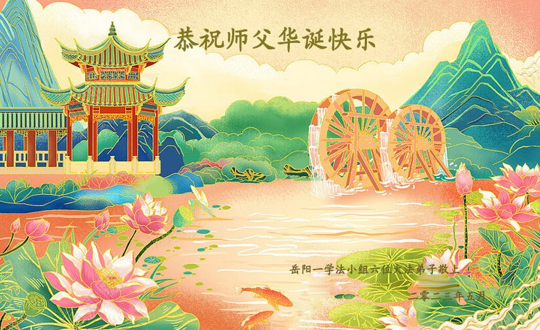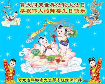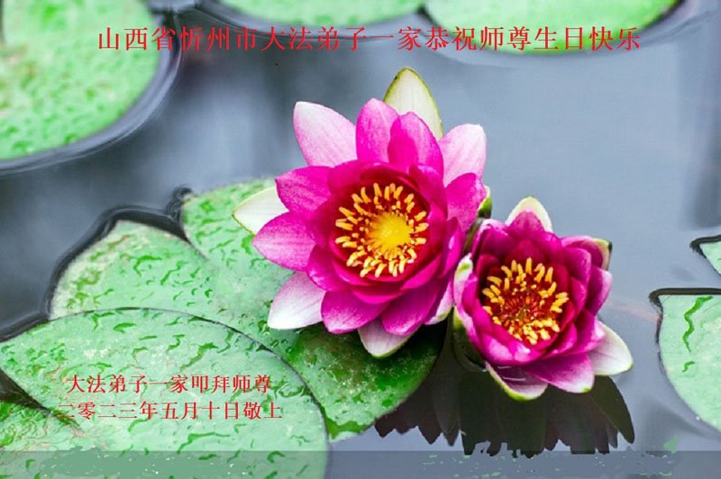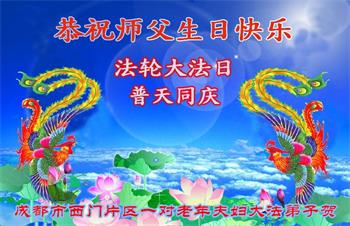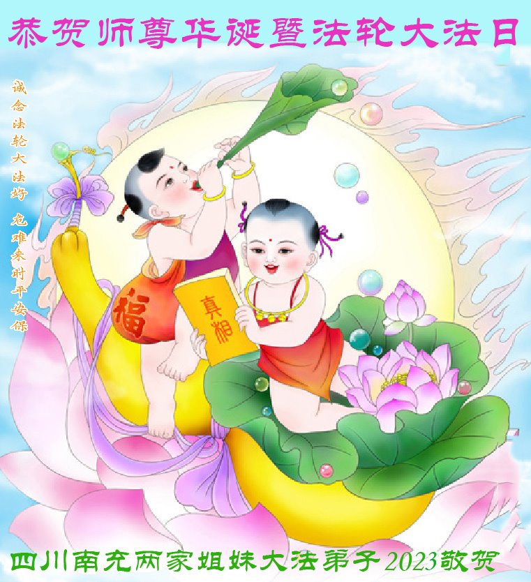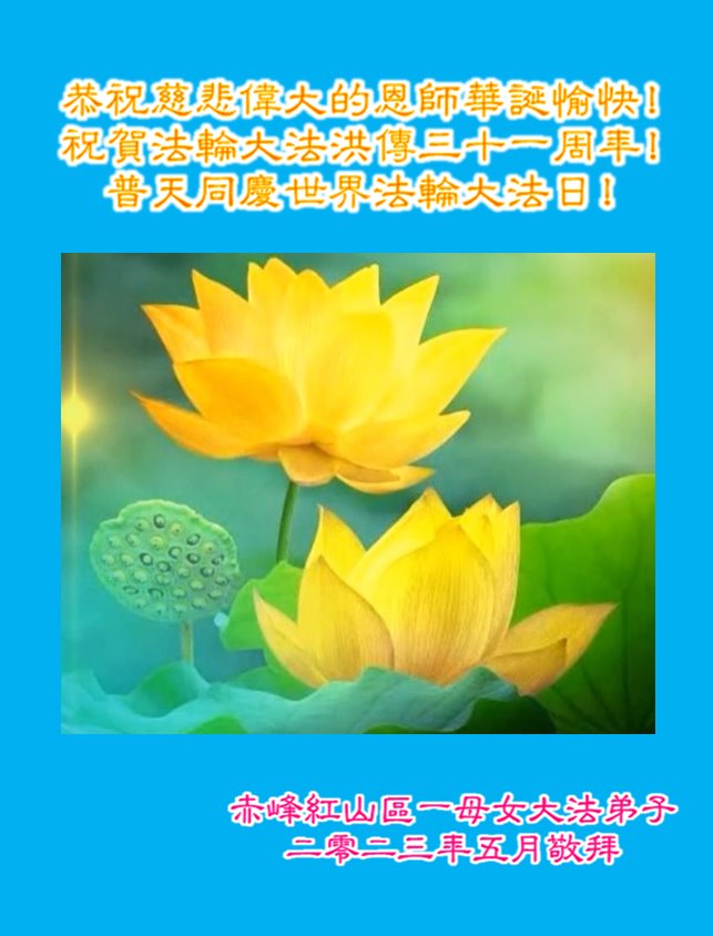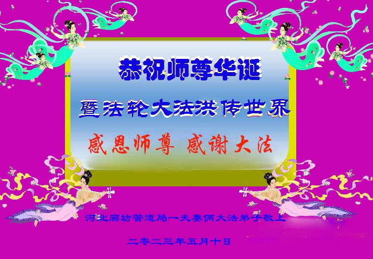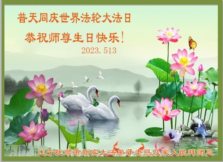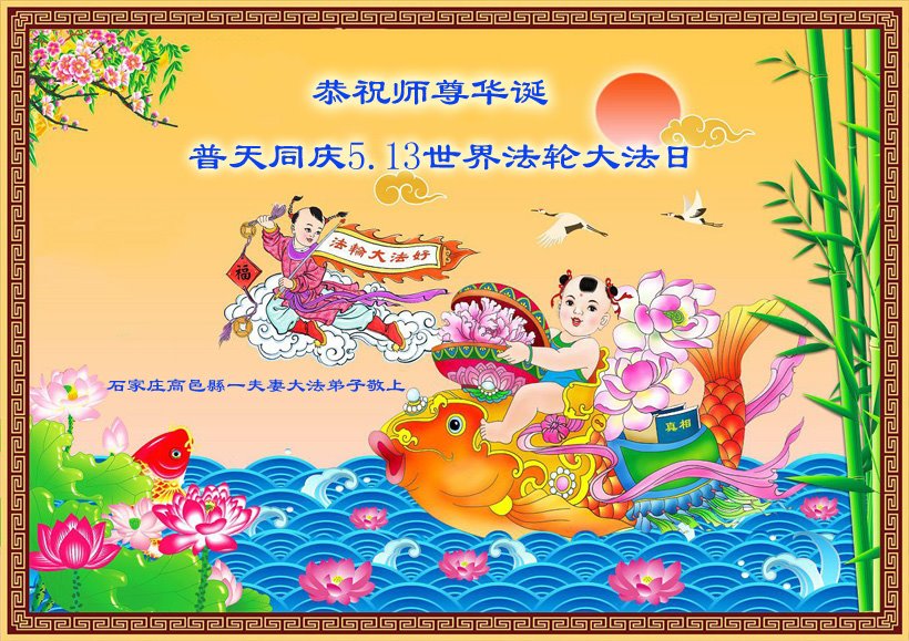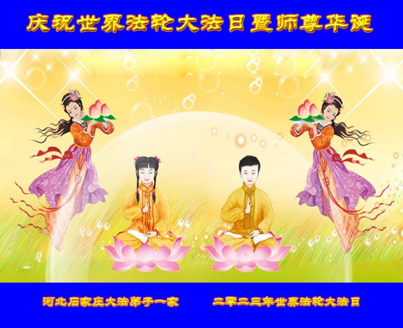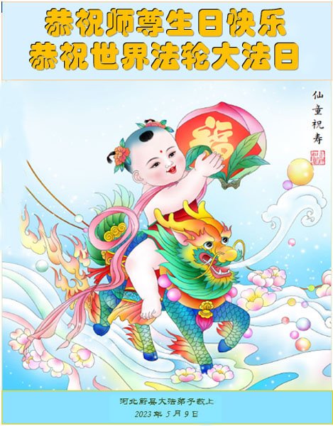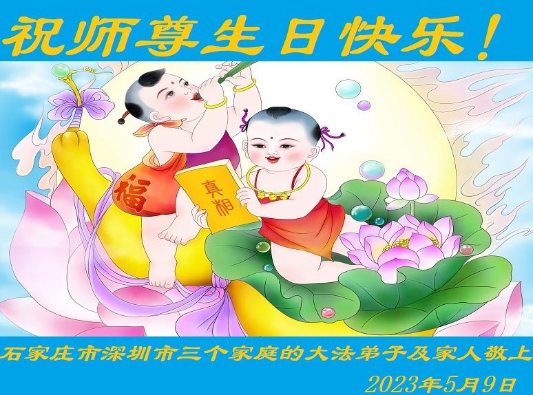 在普天同庆世界法轮大法日的殊胜日子里,我们俩老年大法弟子真诚的问声:师尊好!恭祝师尊生日快乐!感恩师尊慈悲救度!